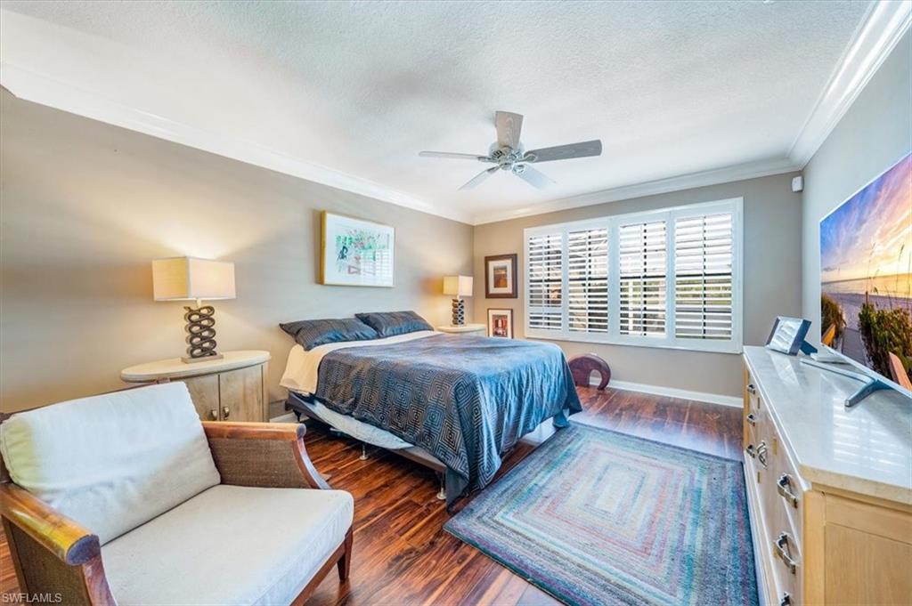 Nestled at the end of a peaceful cul-de-sac, this unique Capri III model with a private, screened-in pool offers San Remo’s best long lake view. Enjoy serene sunrises from your patio, overlooking an uninterrupted 600+ feet of lake and landscape with no neighboring homes in sight. It’s the perfect spot to relax with a morning coffee or an evening glass of wine. Inside, this bright and airy villa features plantation shutters, vaulted ceilings, and elegant wood flooring with crown molding in the primary and second bedrooms. The spacious primary suite includes a custom walk-in closet, dual-sink vanity with ambient toe-kick lighting, and a step-down shower. Storage is ample throughout with two hall closets, two linen closets, a guest room with a custom walk-in closet, large closets in each bathroom, and a full-size pantry in the laundry room. The kitchen is designed with functionality and style in mind, featuring new stainless steel appliances, a white tile backsplash, granite countertops. The two-car garage includes a large window for natural light and built-in storage cabinets along one wall. THIS PROPERTY INCLUDES a 1 year Home-Tech HOME WARANTEE. The home has e-z lock accordion storm shutters on all windows and 2 large push button roll-down storm doors to enclose the patio. Lovingly maintained by the original owners, this move-in-ready villa is part of the highly desirable San Remo community, known for its LOW HOA and NO CDD. Insurance isn’t an issue as this property is Flood Zone X. Residents enjoy amenities such as a community pool, lighted tennis courts, and pickleball courts. Conveniently located near I-75, shopping, dining, and only a short 10-minute drive to the beach, this home combines tranquility, luxury, and accessibility in one stunning package.