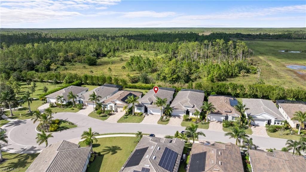 Experience modern luxury in this stunning 4-bedroom, 3.5-bathroom single-family home, newly built in 2022 and ideally situated in the heart of Bonita Springs. This property is a true masterpiece, seamlessly blending indoor elegance with outdoor relaxation. Step outside to discover an entertainer's paradise, complete with a sparkling pool and spa equipped with a new filtration system and remote controls for the spa, heater, and lights. The plumbing is prepped for an outdoor kitchen, and a dedicated pool bathroom is conveniently accessible from the patio. Enjoy total privacy surrounded by lush Clusia trees, expertly maintained by the HOA, complemented by privacy screens, all while unwinding under the ceiling fan on the patio. Inside, the home boasts soaring high ceilings and exquisite tray ceilings in the master bedroom, bathroom, living room, hallway, and den. The gourmet kitchen is a chef’s dream, featuring soft-close cabinets, drawers, and pull-out bins for effortless organization. The master closet is a standout, equipped with custom built-ins for ample storage. For your peace of mind, all windows and doors are fitted with hurricane-impact glass, and the sliding glass doors to the patio open both ways, inviting you to enjoy a seamless indoor-outdoor living experience. The den, adorned with double French doors, offers a flexible space perfect for work or leisure. The garage features stylish epoxy flooring, providing both durability and a polished appearance. This community offers a wealth of amenities, including a clubhouse with a kitchen and hosting area, fitness center, beach-entry pool, spa, bocce court, tennis and pickleball courts, dog park, and a vibrant social club. Enjoy leisurely strolls along the walking trail that winds around the clubhouse, perfect for catching a sunset. This beautifully appointed home is competitively priced and eagerly awaiting its new owner. Don’t miss out on this exceptional opportunity—call today to schedule your private showing!