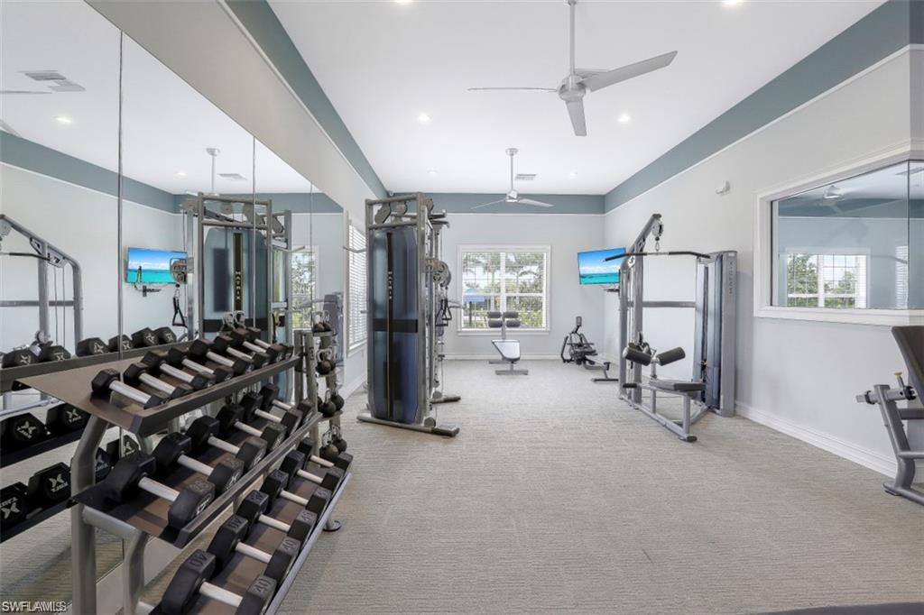 A MUST SEE!! This desirable Ashbury model, with 4 bedrooms, den, 3 and a half bath is everything you are looking for when you want to live or season in Florida. With this southern facing lanai you can wake up with coffee and the sunrise, spend all day in the custom salt water pool, cooking on the outdoor kitchen and watch the sunset from the spa. This home offers ample space for guests and/or family. This kitchen boasts all updated lighting and cabinet hardware. The countertops are quarts, and there are stainless steel appliances. All of the upgrades made to this home include landscape edging, rocks and lighting, light fixtures in the home, LVFlooring in all of the bedrooms, bump out wall with electric fireplace in living room, marble pool deck, colored pool and spa lighting, and epoxy flooring in 3 car garage. This home is newer and has a newer roof (2022), hurricane windows & sliders and freshly painted. The gated community has a beautiful community pool, bocce ball, pickleball courts, tennis courts, dog park and a club house with a fitness center and community room for gatherings. All of this located just a short drive from the beaches and shopping.