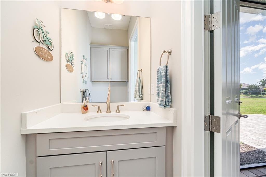 BETTER THAN NEW! You'll be wowed by this meticulously cared for, and obviously substantially upgraded pool home. Upon entry, you’re immediately greeted by durable upgraded tile that just flows beautifully throughout the entire home. Custom wainscoting on several walls adorn the foyer, living area, and kitchen. Custom millwork is also present throughout this beautiful residence. The kitchen is spacious, bright and loaded with upgrades and improvements. The outdoor covered living space is large enough to accommodate both sitting and dining areas under roof. The custom outdoor kitchen is remarkable. The inviting pool, spa and pool deck areas are where you’ll be spending much time enjoying the in demand southern exposure along with peaceful lake views. There is storage galore in the extra deep 2+ tandem garage. All of the windows, and slider panels are hurricane rated for peace of mind during storms. Seasons at Bonita is a newer, cheery, pet friendly community featuring two dog parks, a large and glamourous resort style pool with lap lanes, and even a charming man-made sandy beach with hammocks to relax on. There are tennis courts, pickleball courts, bocce, and a fitness room with state of the art equipment. They are all just waiting to be enjoyed by you. There is a new mixed use complex under construction called Mid-Town Bonita which will be offering additional, and exciting commercial support just a short drive west of Seasons At Bonita. Bonita Beach has been recognized as one of Florida’s most enjoyable beaches, and it's all just a straight shot westbound down Bonita Beach Road.