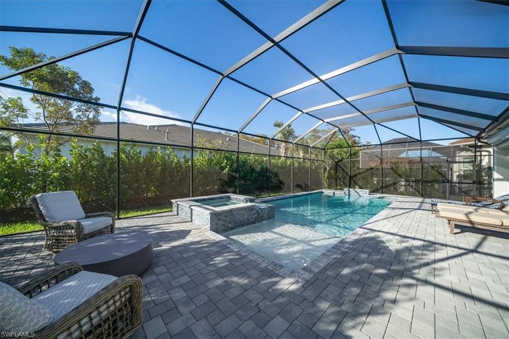 This Charleston Grande Floor plan boasts 3354 SF under air and has a grand total of 5785 SF of living space. Enjoy 3 Bedrooms, A Club/Den Room and 4 FULL BATHROOMS! The pool was put in after market and is one of the largest pools if not THE largest pool in the entire community. Completed in 2022 and heated by Natural Gas and/or electric and offers a Saltwater experience which is premium and highly desired. Attached to the MLS is a long list of extras and upgrades done while constructing the home and after closing. Some of the key elements are a full outdoor Kitchen completed in 2024, with a 30" gas grill with Rotisserie, Luxury Tile throughout, 24K Whole house Generac Generator system, Tankless HW system, Solid Wood doors, Custom Closet Units, Garage has a built in work bench and custom cabinets along with added shelving, A unique storage room with a 20amp circuit for an additional refrigerator, UV Air Sanitizer and Air Purifier on the high efficiency AC units, Culligan whole home water treatment system, Plantation Shutters, Upgraded Cabinets, faucets, shelving, Fans, lighting and much more too numerous to mention. Enjoy the active adult lifestyle in Valencia Bonita with tons of amenities, Restaurant, spa, Fitness, several pools and more! This is a 55 and older gated community in the fast-growing section of Bonita Springs on Bonita Beach Road. Literally a short jaunt to Coconut Point, Mercato and just down the street from the latest and greatest Midtown Bonita currently in construction. Use the Logan Road extension to gain easy access to Immokalee Road and everything Naples has to offer. Make your appointment now to see this one-of-a-kind property and you will not be disappointed. This home is being offered partly furnished. AGENTS...see the attachments....