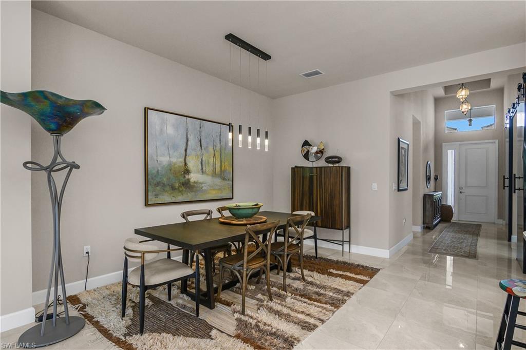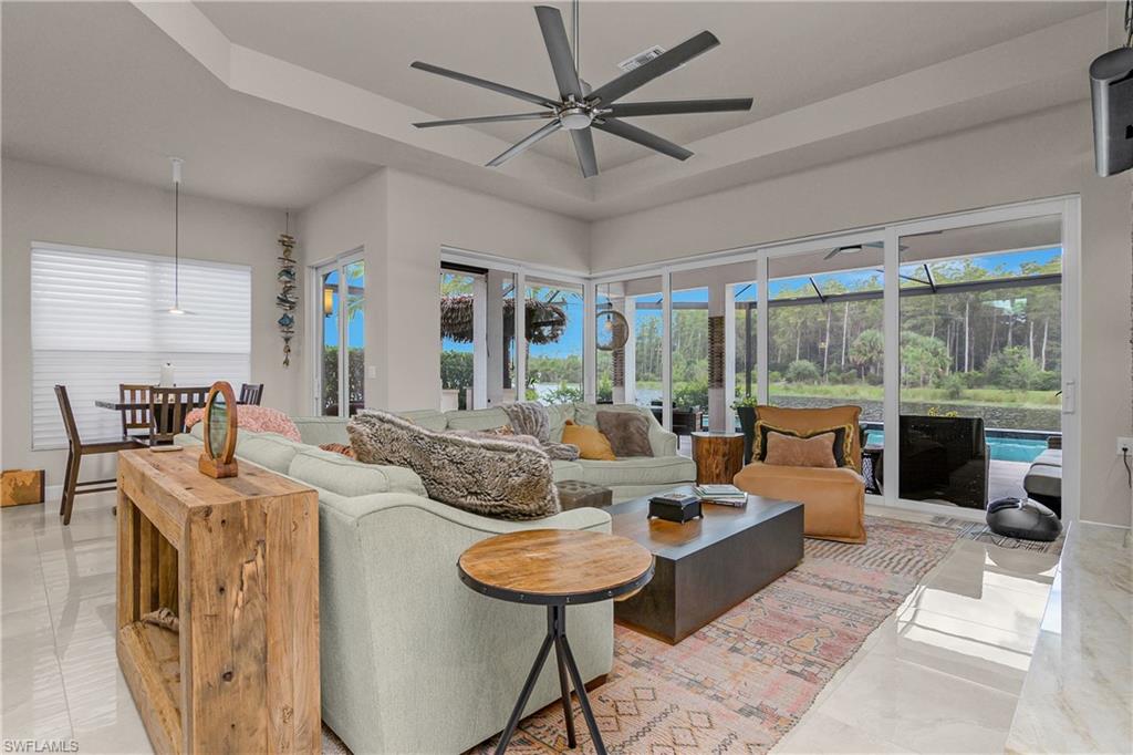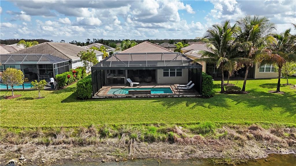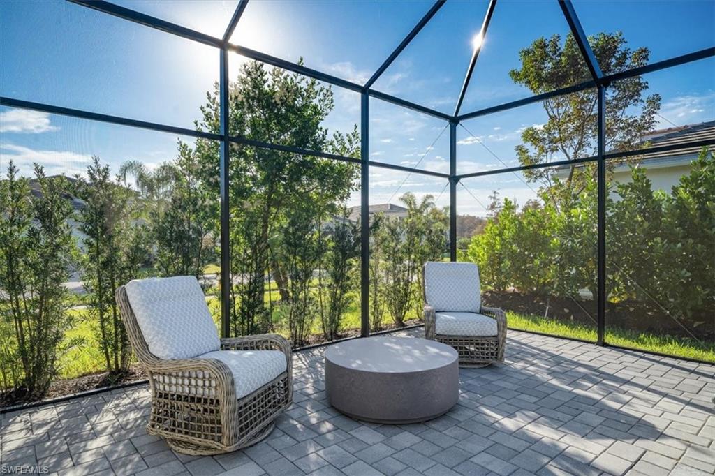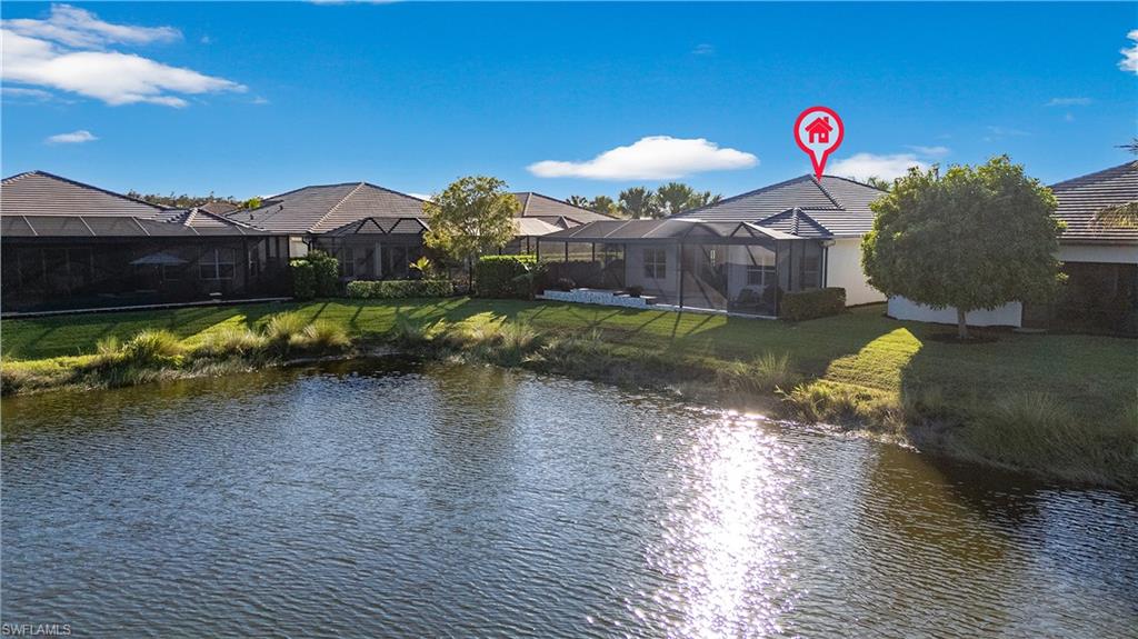 Welcome to your Florida dream home in the vibrant 55+ community of Valencia Bonita. This stunning pool home, enhanced with smart Wi-Fi hub integration, combines elegant design with modern convenience—offering the perfect blend of comfort, luxury, & peace of mind. The home has been beautifully furnished with custom-selected pieces designed to complement each space. The seller is highly flexible & open to including some or all furnishings! This home is set on a premium east-facing lakefront lot, & offers stunning sunrise views, a gas-heated saltwater pool and spa, picture-frame screen enclosure, and a summer kitchen with motorized rotisserie—perfect for morning coffee & evening entertaining. Inside, this Lydia floor plan offers 3 spacious bedrooms plus a den, arranged in a well-flowing split layout. Every detail has been thoughtfully upgraded—from tile & luxury vinyl plank flooring, to $10,000 in designer lighting, to remote-controlled window treatments that make daily living effortless. The gourmet kitchen has newer LG stainless appliances, large island, huge pantry, cabinet pull-outs, & an adjacent dry bar. The den features a full wall of custom built-ins for display, storage, or a home office. The laundry room offers custom cabinetry, LG washer/dryer, a wine cooler, utility sink, & a second refrigerator. Owned solar panels (with the current solar loan to be paid off by the sellers at closing) keep electric bills at just $26/month. Additional energy-efficient & high-tech upgrades include a tankless water heater, Sonos sound system, integrated TVs, & an Asus mesh Wi-Fi system for seamless whole-home connectivity. And when it comes to peace of mind, you’re covered with impact glass windows & doors, a whole-house Generac generator, & a remote-controlled hurricane screen to protect lanai furniture. The garage is insulated, climate-controlled with a mini-split A/C, & includes finished floors & generous storage—ideal for your tools, hobbies, or home gym. As a resident of Valencia Bonita, you’ll enjoy a lifestyle like no other. The gorgeous 45,000 sq ft clubhouse offers dining, a spa & nail salon, fitness center, Broadway-style entertainment, & a full social calendar. Outside, lounge by the sparkling resort-style pool, or enjoy a refreshing workout in the comfort of the shaded lap & resistance pools. There is also tennis, pickleball, bocce, sidewalks, & two dog parks—all just minutes from the Gulf beaches, fine dining, shopping, I-75, and RSW Airport. This is more than a home—it’s a lifestyle, & it’s waiting for you!