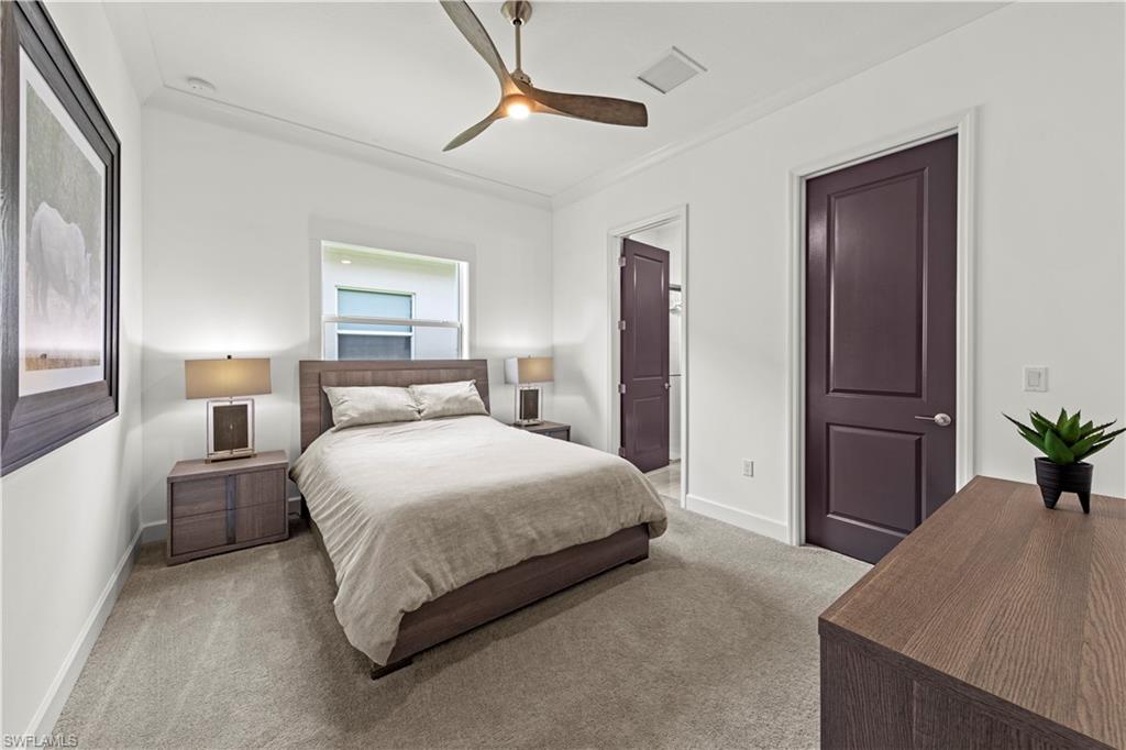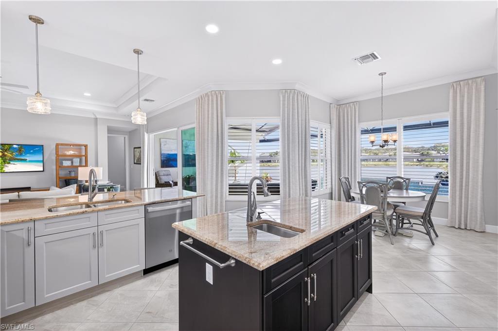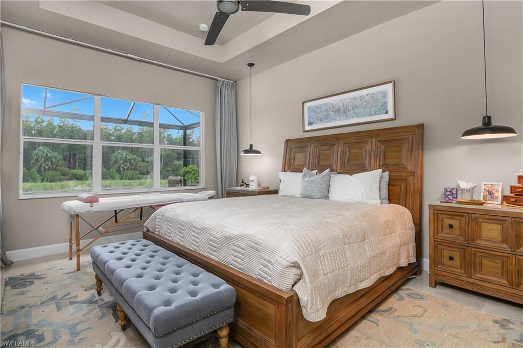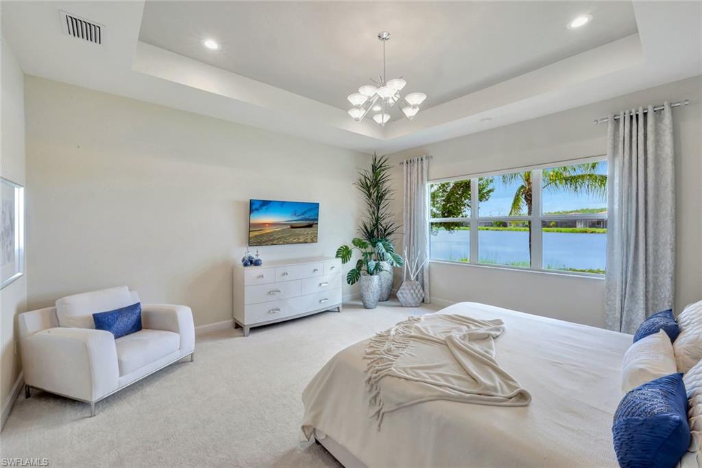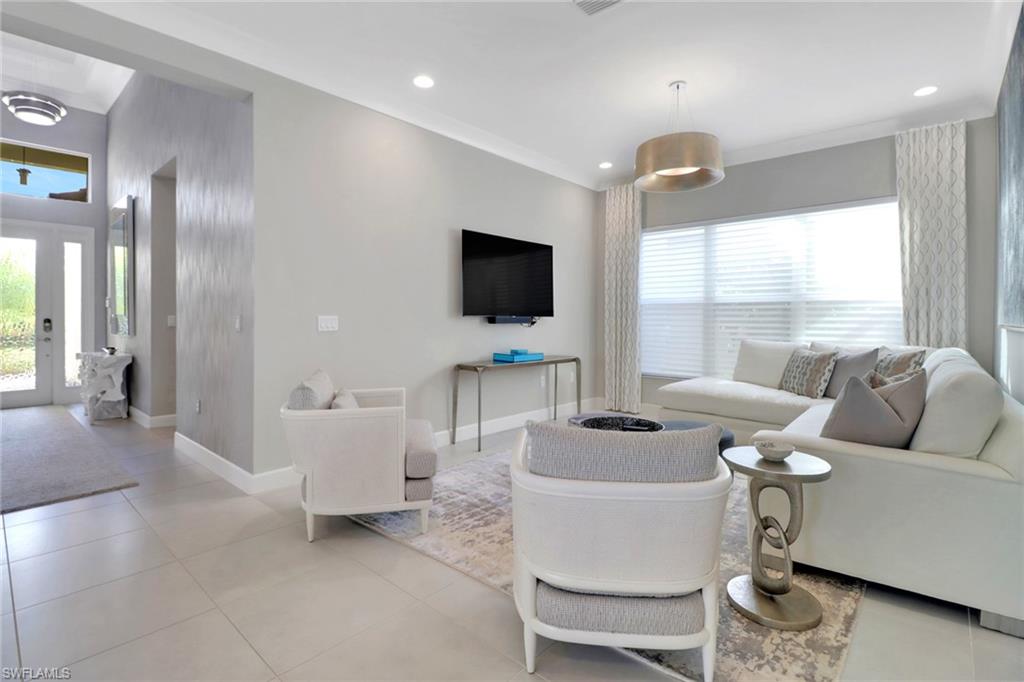 Welcome to your Florida dream home in the vibrant 55+ community of Valencia Bonita. This stunning pool home, enhanced with smart Wi-Fi hub integration, combines elegant design with modern convenience—offering the perfect blend of comfort, luxury, & peace of mind. The home has been beautifully furnished with custom-selected pieces designed to complement each space. The seller is highly flexible & open to including some or all furnishings! This home is set on a premium east-facing lakefront lot, & offers stunning sunrise views, a gas-heated saltwater pool and spa, picture-frame screen enclosure, and a summer kitchen with motorized rotisserie—perfect for morning coffee & evening entertaining. Inside, this Lydia floor plan offers 3 spacious bedrooms plus a den, arranged in a well-flowing split layout. Every detail has been thoughtfully upgraded—from tile & luxury vinyl plank flooring, to $10,000 in designer lighting, to remote-controlled window treatments that make daily living effortless. The gourmet kitchen has newer LG stainless appliances, large island, huge pantry, cabinet pull-outs, & an adjacent dry bar. The den features a full wall of custom built-ins for display, storage, or a home office. The laundry room offers custom cabinetry, LG washer/dryer, a wine cooler, utility sink, & a second refrigerator. Owned solar panels (with the current solar loan to be paid off by the sellers at closing) keep electric bills at just $26/month. Additional energy-efficient & high-tech upgrades include a tankless water heater, Sonos sound system, integrated TVs, & an Asus mesh Wi-Fi system for seamless whole-home connectivity. And when it comes to peace of mind, you’re covered with impact glass windows & doors, a whole-house Generac generator, & a remote-controlled hurricane screen to protect lanai furniture. The garage is insulated, climate-controlled with a mini-split A/C, & includes finished floors & generous storage—ideal for your tools, hobbies, or home gym. As a resident of Valencia Bonita, you’ll enjoy a lifestyle like no other. The gorgeous 45,000 sq ft clubhouse offers dining, a spa & nail salon, fitness center, Broadway-style entertainment, & a full social calendar. Outside, lounge by the sparkling resort-style pool, or enjoy a refreshing workout in the comfort of the shaded lap & resistance pools. There is also tennis, pickleball, bocce, sidewalks, & two dog parks—all just minutes from the Gulf beaches, fine dining, shopping, I-75, and RSW Airport. This is more than a home—it’s a lifestyle, & it’s waiting for you!