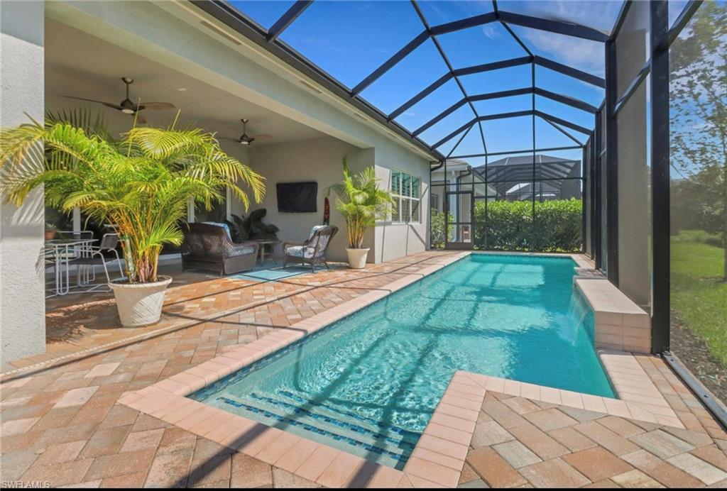 Welcome to Valencia Bonita, Southwest Florida’s best 55+ community. This exquisite Cabernet model showcases an open, light, and bright floorplan with custom pool and spa boasting southern vistas over an expansive preserve view. Custom landscaping greets you upon arrival and your extended lanai will comfort you with a quiet and peaceful preserve setting. Luxury living awaits in this upgraded 3 bedroom plus den home, featuring an indoor storage room and oversized 2.5-car garage. Offered furnished, this elegant home is move-in ready for your immediate enjoyment, boasting impressive finishes including impact windows and doors, custom built-ins, LED lighting, and tile throughout. Valencia Bonita boasts a 45,000 square foot clubhouse with fitness center, fitness classes, pickleball and tennis courts, full service spa and salon, onsite restaurant, multiple resort-style pools, game and card room, dog parks, a social hall that hosts events and live entertainment and so much more.