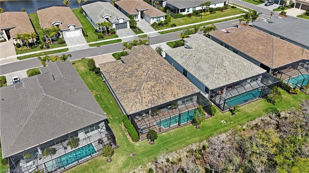 If you’ve been waiting for a lakefront Chandon with a pool, spa, and every imaginable upgrade — this is the one. Designed by an experienced homebuilder, this residence showcases exceptional finishes throughout. The great room features a Venetian-finish accent wall with lighted floating shelves, and zero-corner sliders that open the entire space to the lanai for seamless indoor–outdoor living. Outside, enjoy a heated saltwater pool with sun shelf, in-ground spa, extensive landscaping, and a curated butterfly garden that creates your own private retreat. Roll-down hurricane screens add convenience and protection. The designer kitchen offers a double wall convection oven and microwave, induction cooktop with chimney hood, pull-out pantry drawers, and an island that seats seven. The primary suite includes a custom closet with locking drawers, upgraded post-closing carpet and padding, custom sheer blackout shades, floor-to-ceiling shower tile, ceiling-height mirrors, and a heated towel rack. A second ensuite bedroom includes a walk-in closet, tile flooring, and plantation shutters. The third bedroom enjoys a semi-private bath via an added hallway door plus upgraded post-closing carpet and padding, and plantation shutters. The home office features a contemporary inside-mounted barn door, walk-in closet, built-ins with lighted shelving, and lockable storage. The laundry room includes upgraded LG appliances, abundant cabinetry, and a utility sink. The garage impresses with epoxy flooring, a side door, storage cabinets, and a wall-mounted organizing system. Additional upgrades include a whole-house generator and water filtration system, crown molding, 24" porcelain tile, a 75-gallon gas water heater, inside the home walk-in storage room with electricity, and a hurricane screen at the front door. This exceptional home offers unmatched quality and comfort, plus all the amenities of Valencia Bonita: HOA fees now including Xfinity cable/internet, no CDD, natural gas, and a 45,000 sq. ft. Clubhouse + Lifestyle Complex with 10 acres of amenities. Enjoy tennis, pickleball, bocce, multiple pools (lap/resistance/kids/resort), fitness center, indoor/outdoor dining, fire pits, cabanas, full-service spa, nail salon, pottery studio, and over 50+ social clubs. A full-time Lifestyle Director and top-notch fitness program offer activities for every interest. Move in and live the ultimate Florida dream — just 20 minutes to the beach and less than 30 minutes to RSW!