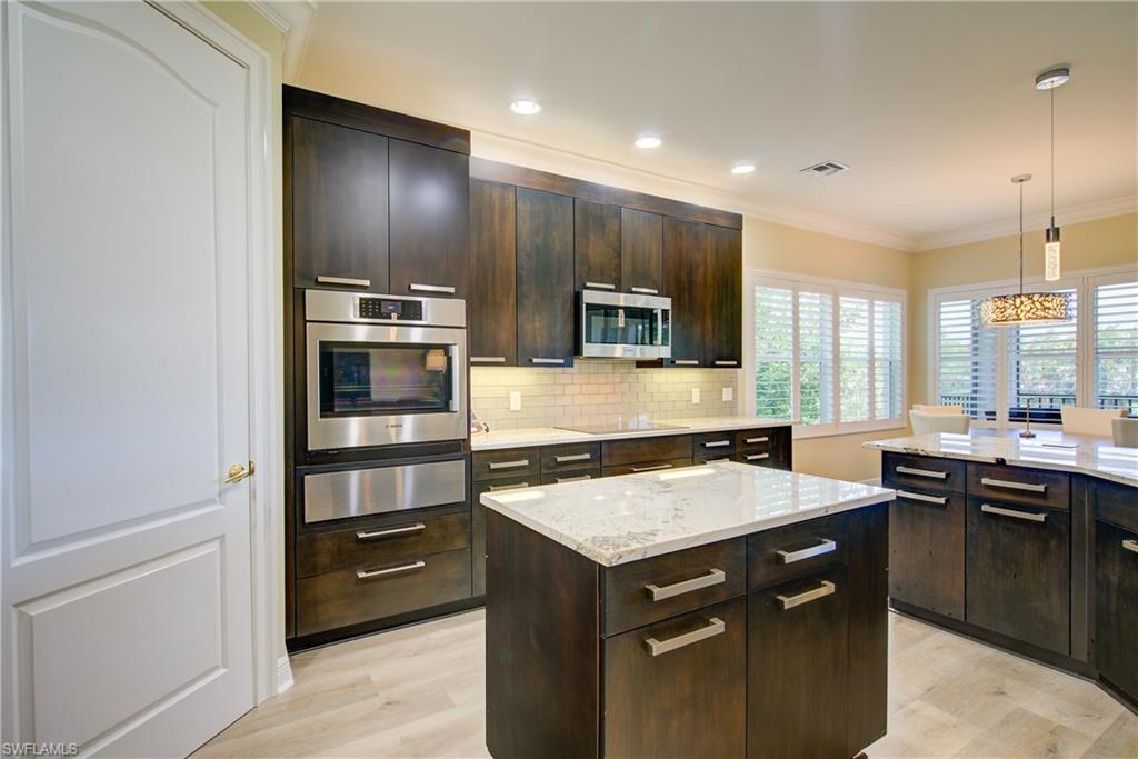 Golf membership included! Enjoy immediate access to Vasari Country Club with no waitlist. Beautifully maintained and thoughtfully updated, this residence offers 2,544 sq. ft. of comfortable living with 3 bedrooms, 2 baths, a den, a formal dining room, and a 2-car garage. One of Vasari’s most desirable floor plans, the home has a simple, fresh, Florida-elegant feel with an open layout and split bedrooms for guest privacy. The updated kitchen features quartz countertops, all-new appliances including a double oven, induction cooktop, dishwasher, refrigerator, and microwave, plus a new sink and faucet, designer backsplash, and recessed and under-cabinet lighting. A new washer and dryer complete the laundry room upgrades. The primary suite includes two walk-in closets and a spa-inspired bath with dual vanities, a soaking tub, and a frameless glass shower. Direct access to the lanai brings the home’s tropical, peaceful outdoor oasis feel right into the suite. Outside, enjoy a private salt water pool and spa area enhanced with a new pool heater, new pool pump, and color-changing LED lighting, positioned with western exposure for warm afternoon light. The lanai provides generous seating and dining space, along with new fans and lighting, smart hurricane shutters, and refreshed privacy landscaping. Additional updates include new interior and exterior paint, new ceiling fans in the family room and office, professionally cleaned tile and grout, and newer A/C (2024). Residents of Vasari enjoy an amenity-rich bundled golf lifestyle: an 18-hole championship course, golf practice facility, lighted Har-Tru tennis courts, pro shop, bocce, resort-style pool and spa, clubhouse with dining and social spaces, and a full calendar of events. Vasari is also celebrated for its beautifully maintained landscaping and a neighborly, welcoming community spirit. Centrally located near pristine Gulf beaches, downtown Naples, RSW and Naples airports, as well as exceptional shopping, dining, arts, and nature trails, this home truly offers the best of Southwest Florida living.