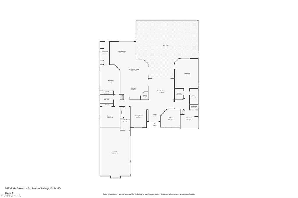 Introducing an exceptional luxury residence at 28585 Via D Arezzo within the esteemed Vasari Country Club in Bonita Springs. This spectacular one-story home offers 3 bedrooms + den, 3.5 bathrooms, an expansive open floor plan, and a full suite of resort-style indoor-outdoor amenities including a private pool and spa and three-car garage. Step inside to soaring ceilings and sun-filled living spaces designed for both entertaining and relaxed everyday living. The well-appointed open and updated kitchen features a breakfast bar/island plus pantry and flows seamlessly into the family room and dining areas. A separate den offers flexibility for a home office, media room, or library. The split-bedroom layout offers prime privacy: the luxurious primary suite features dual walk-in closets, dual vanities, a soaking tub and separate shower—plus direct access to the pool terrace. Two additional guest bedrooms each enjoy their own bathrooms (and there is an additional half bath for visitors), ensuring comfort and separation for residents and guests alike.Outside, the screened lanai opens to a shimmering pool and spa set against lush tropical landscaping and tranquil preserve views—an ideal Florida retreat. The oversized three-car garage adds true luxury convenience, and the home has been thoughtfully updated with modern finishes and attention to detail.You are within a premier gated community offering championship golf, tennis, Clubhouse, Dining—all minutes to the white-sand beaches of Southwest Florida, vibrant dining and shopping, and easy access to the airport and major roadways. This home blends sophisticated style, functional layout, and a true resort-feeling lifestyle. For the buyer looking for the ultimate in Bonita Springs luxury living—this is a must-see.