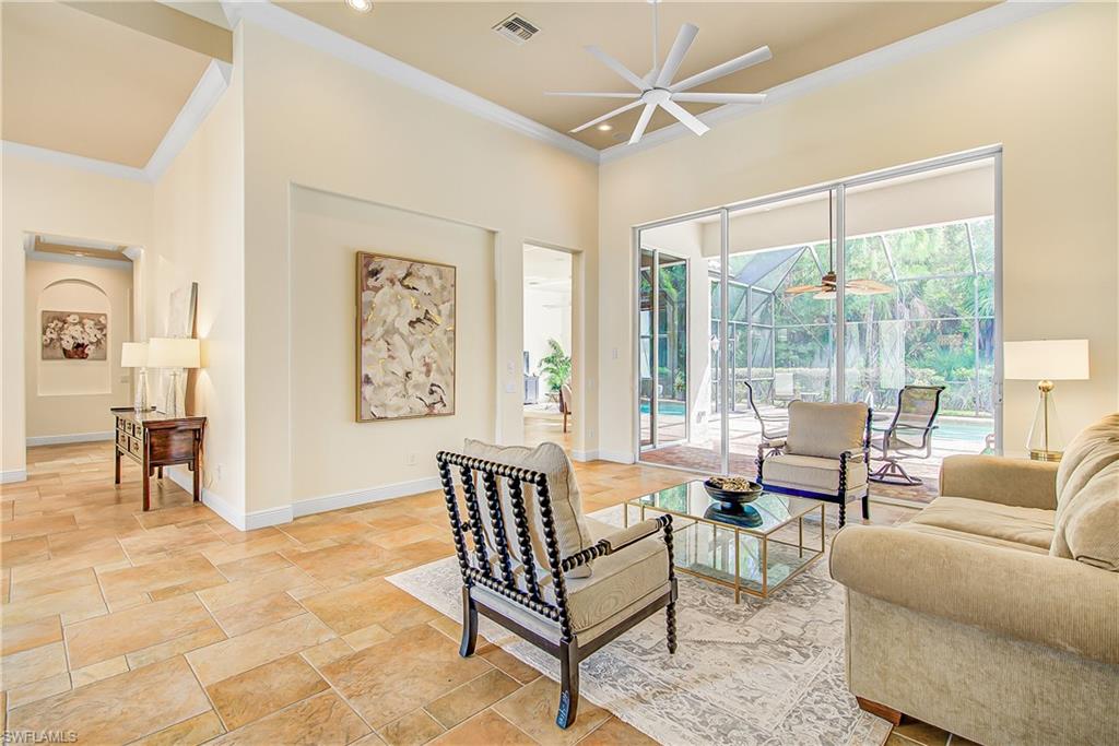 Location, Luxury, Lifestyle – Just Steps from the Clubhouse! Welcome to this beautifully designed 3-bedroom, 2-bathroom home offering 2,543 sq.ft. of spacious, light-filled living in one of the most desirable locations in Vasari Country Club. Just a short stroll to the clubhouse and all the amenities, this property combines elegance, comfort, and unmatched convenience. Inside, soaring ceilings and an open floor plan create a bright, airy ambiance perfect for both relaxing and entertaining. The generously sized great room flows seamlessly into the kitchen and dining areas, while the private master suite offers serene views of the pool, lake, and golf course—a true retreat. Two additional bedrooms are thoughtfully placed on the opposite side of the home, ensuring privacy for guests. Step outside and you’ll find your own private oasis: a sparkling pool with panoramic lake and golf course views—perfect for quiet mornings or evening gatherings. Additional highlights include a new roof (2019), a 2-car garage, and the peace of mind that comes with low-maintenance living. Even better? This home includes an immediate golf membership and the vibrant social lifestyle that Vasari is known for. Enjoy tennis, bocce, fitness center, and new pickleball courts coming soon! The clubhouse features both casual and formal dining, a pool/spa, game/card rooms, and much more. Centrally located near RSW Airport, Gulf beaches, and the world-class shopping and dining of Naples’ 5th Avenue, this home is the perfect blend of elegance and easy living. Virtually staged photos showcase the full potential of this exceptional property.