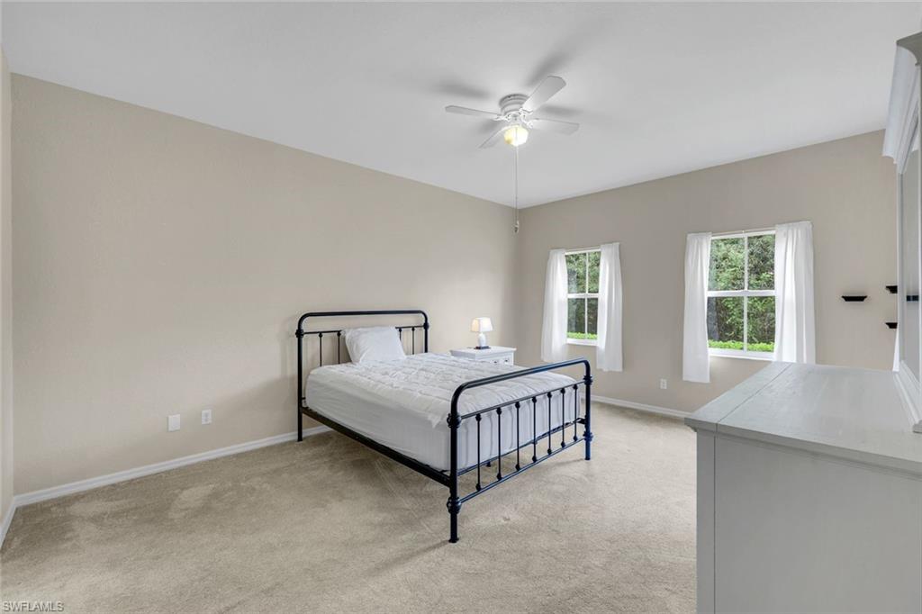 Surpass your expectations, not your budget! It is an ideal location just south of Bonita Beach Road, convenient to Bonita, Naples, airports and beaches. A three-bedroom first-floor condominium with a screened lanai and an additional open patio with private garage entry. This gated community offers a sparkling heated pool, spa, bocce and community pavilion for activities. Financially sound with lower fees, high elevation and no storm impact throughout the years. A new roof in 2022, a newer air conditioner, a newer tankless water heater, and electric storm shutters. Neutral tile throughout. Offered as turnkey. There is no snow here!