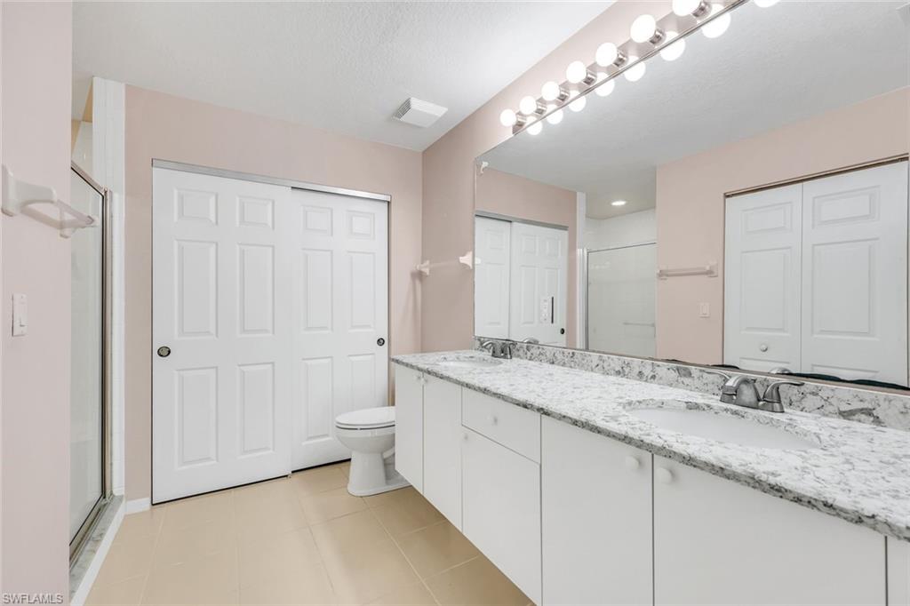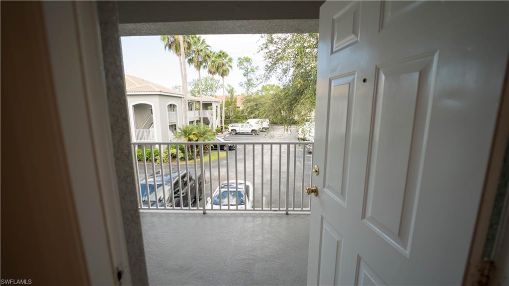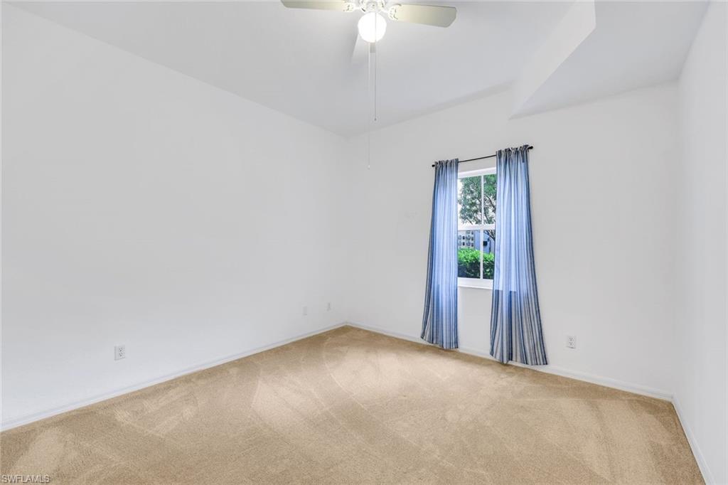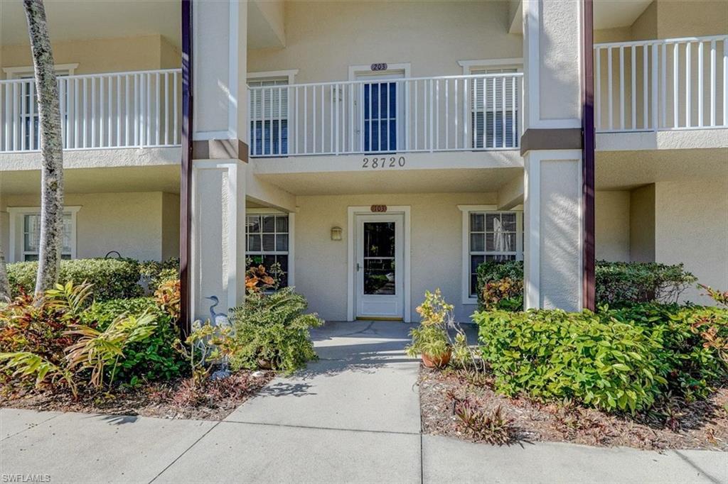 Light, Bright End- Unit Residence on the Sunny South Side. Move-in Ready! This beautifully updated 3-bedroom, 2-bath condo with a 1-car garage is a must-see in the desirable Carriage Homes at Woods Edge community. Nearly 2,000 sf of living space! Located on the second floor, this residence boasts cathedral ceilings and an abundance of natural light from numerous impact rated windows. The spacious eat-in kitchen offers ample counter space, perfect for cooking and entertaining. Enjoy breezy afternoons on the screened lanai, also protected by roll down shutters, making it a protected seasonal residence. The split-bedroom floor plan provides privacy, with generously sized bedrooms, one with a private balcony. Thoughtful updates include: New A/C (6/24) & New Water Heater (9/24), New Flooring – Porcelain tile & carpet (9/22), New GE Profile Kitchen Appliances – Refrigerator, range, dishwasher & microwave (3/23), Freshly painted interior & garage (1/23), New front door (8/23) & New lanai screens (10/23), New kitchen pantry shelving (6/24) & New kitchen faucet (4/24), New Nest Smart Smoke Detectors (6) & Sensi Smart Thermostat, A/C ducts cleaned (4/24). Perfectly located just minutes from Gulf beaches, with great lakefront walking paths and wide, paved bike paths leading to multiple beaches including Bonita Beach, Barefoot Beach and Wiggins Pass State Park. Enjoy a peaceful, gated community close to shopping, dining, and all that Southwest Florida has to offer. Move-in ready with modern updates—schedule your showing today!