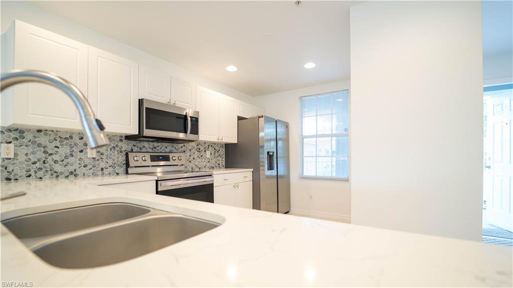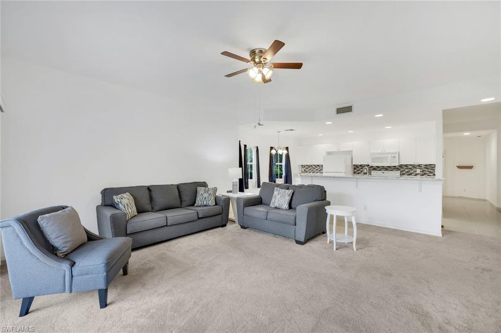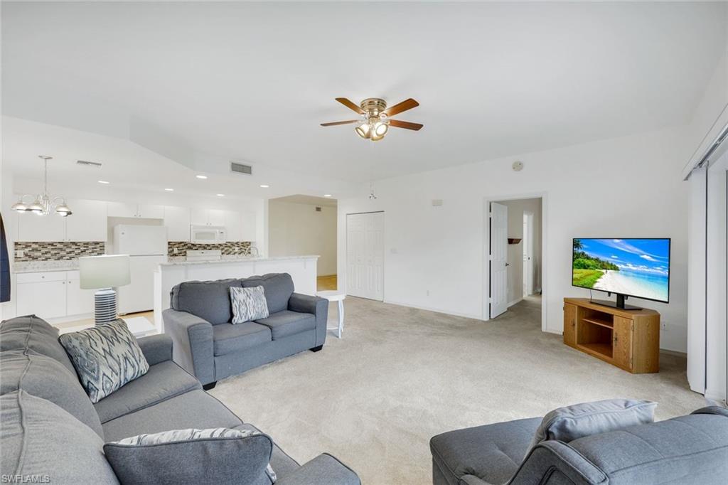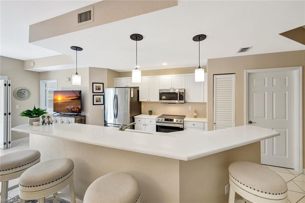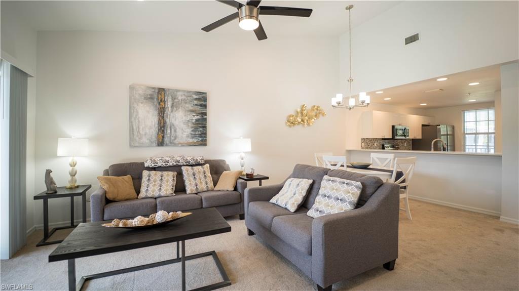 Turnkey and ready—just bring your suitcase. This bright, move-in-ready condo at 3479 Lake Shore Dr #222 delivers easy Gulf-coast living with a peaceful lake view from the screened lanai. A vaulted great room plan creates airy volume for the living and dining areas, while the updated kitchen features white cabinetry, quartz-look counters, a stylish hex-tile backsplash, stainless appliances, and a pass-through breakfast bar. Neutral finishes, recessed lighting, and a modern ceiling fan keep the space fresh and comfortable. The community offers well-kept grounds and a relaxing pool, and you’re moments from beaches, shopping, dining, and nightlife in Bonita Springs and Naples. Sold furnished/turnkey for immediate enjoyment, a seasonal escape, or a simple lock-and-leave. Weekly rentals are permitted, making this an attractive option for investors seeking strong occupancy potential given the prime location.
