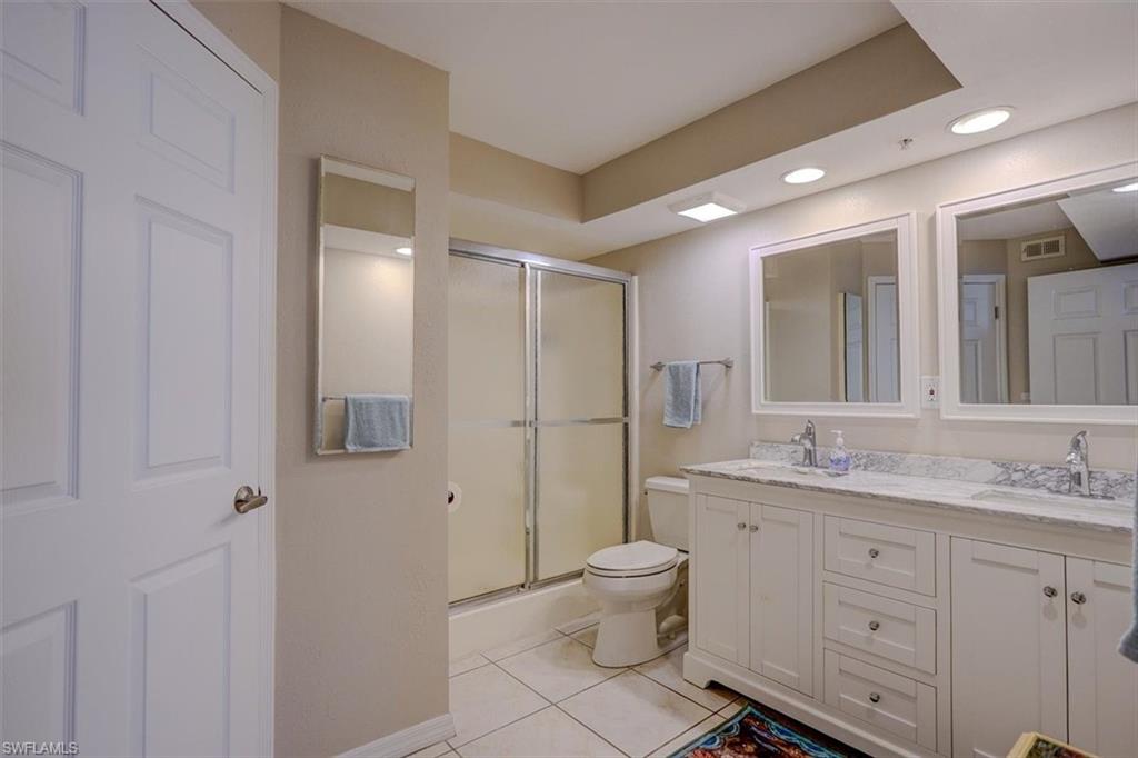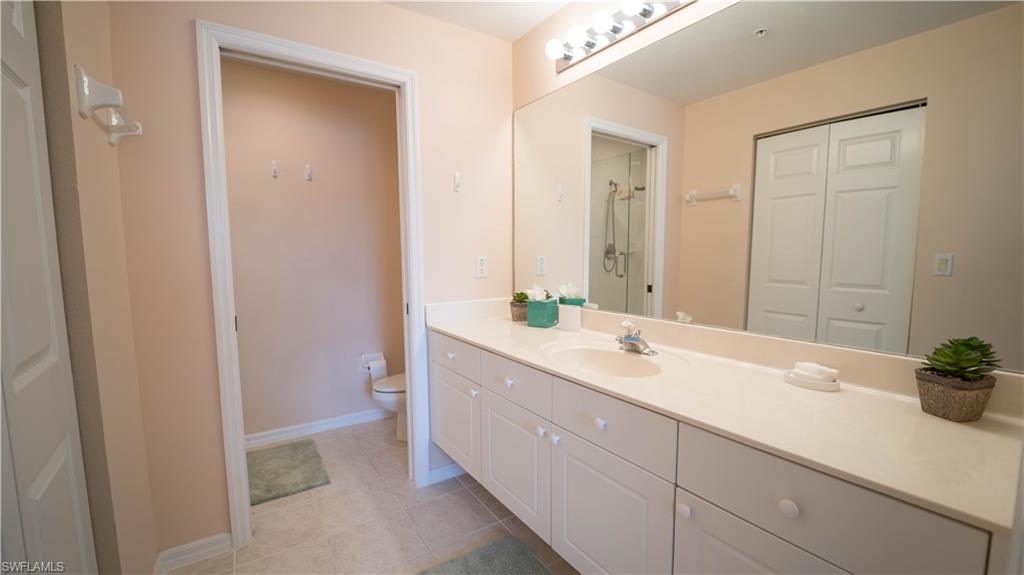 West of 41, located South of Bonita Beach Road and North of Wiggens Pass Road. This 5th floor end unit has been recently painted, new tile on lanai, new toilets. Centrally located between Naples and Bonita Springs, Florida. Close to beaches, shops, restaurants, RSW Airport is close. Parking beneath the building is for 1 assigned parking spot. The master bedroom has 2 walk-in closets. Split bedrooms with the 2 guest at the front of the unit and the master bedroomi in the back, 3rd bedroom could work as an office or den. This unit is close to all your needs to reside in Beautiful Bonita Springs Florida.