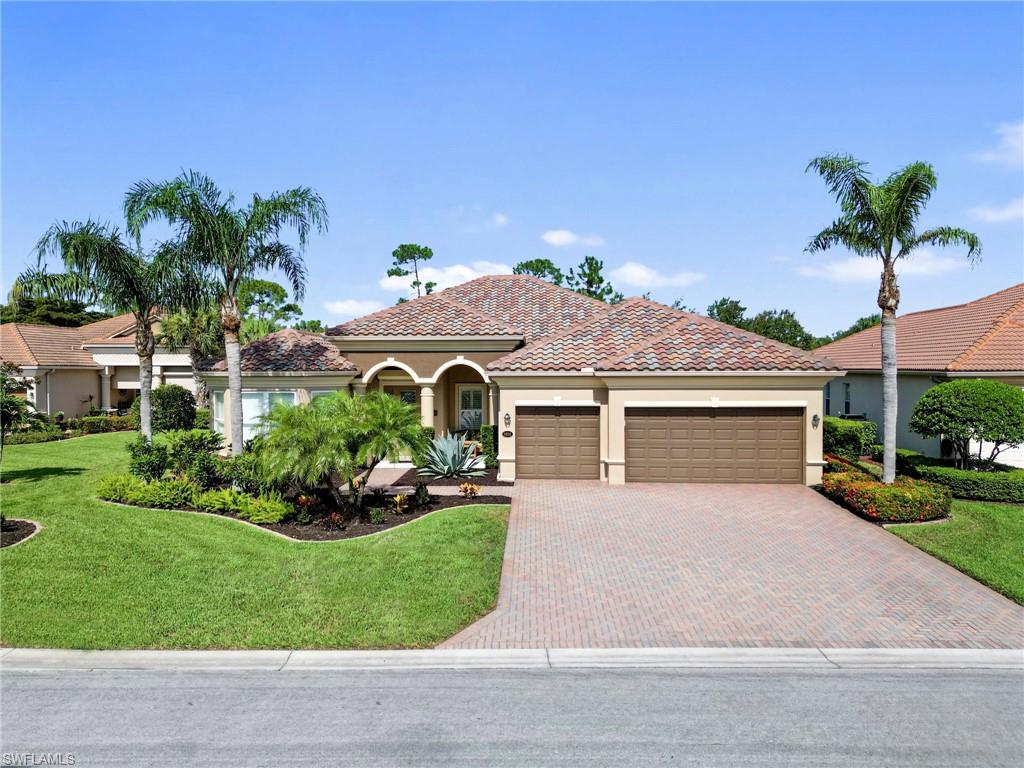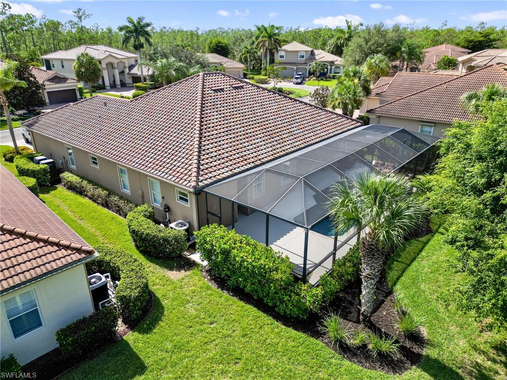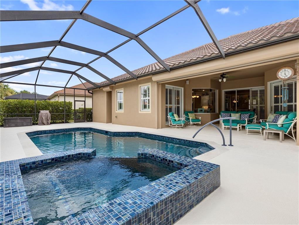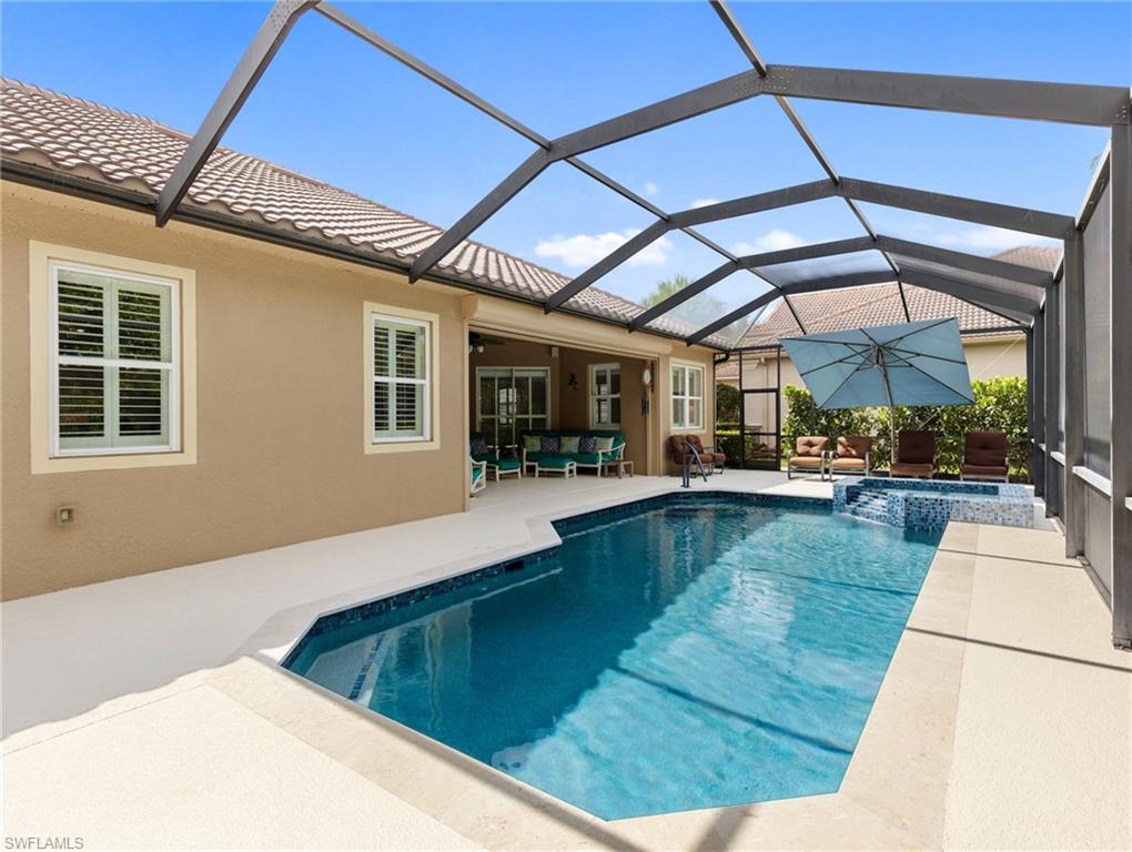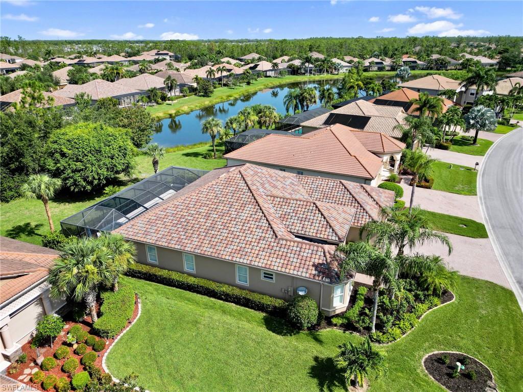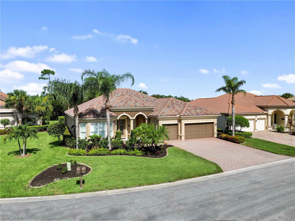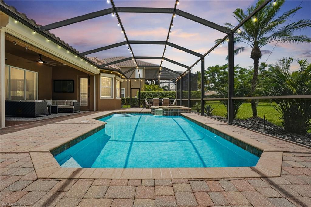 COME HOME FOR THE HOLIDAYS AND VISIT SUNDAYS OPEN HOUSE...Tucked into one of Estero’s most beloved, tree-lined neighborhoods, this Bayhill Estate home in Bella Terra feels like a true retreat. With 2,662 square feet, 4 bedrooms, 2.5 baths, and a 3-car garage, it combines space and style with serene lake views. Set on a rare double cul-de-sac street, the property offers privacy and charm, complete with a solar-heated pool and spa featuring fiber optic lighting and a sun shelf. Inside, the primary suite includes a thoughtful bump-out for added comfort. The open kitchen, designed for entertaining, flows into the family room and showcases 42-inch Maple cabinetry, granite counters, tile backsplash, and high-end appliances. Details like Venetian Bronze fixtures, recessed lighting, and 18-inch tile flooring elevate the home, while a paver driveway, upgraded elevation, and lush landscaping add to its curb appeal. Major updates include a new roof (2021), hurricane protection front and rear, and new A/C and water heater (2023). This home blends everyday convenience with resort-style living — ready to welcome its next owner. The beautiful community of Bella Terra has 999 acres, 400 of which are conservation preserves, 100 acres of lakes and some of the lowest fees around. Amenities include a Resort-style Clubhouse, 24-hour fitness center, bingo, boot camp, water aerobics, poker, cards, food truck nights and activities for all ages, resort style pool and spa, secured, shaded children's play area, sand volleyball, tennis, pickleball courts with in-ground nets, basketball, softball, kids soccer leagues, bocce ball, in-line skate rink, a peaceful butterfly garden and more! Bella Terra is centrally located with easy access to RSW, FGCU, I-75, Miromar Outlets, Gulf Coast Town Center and the Coconut Point Mall, Sanibel Island, Ft Myers Beach, Restaurants, Hiking, Entertainment, Boston Red Sox and Minnesota Twins Spring Training. Right home, right price, right neighborhood.