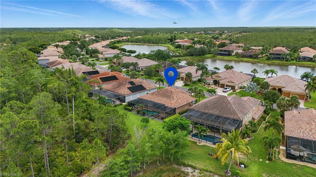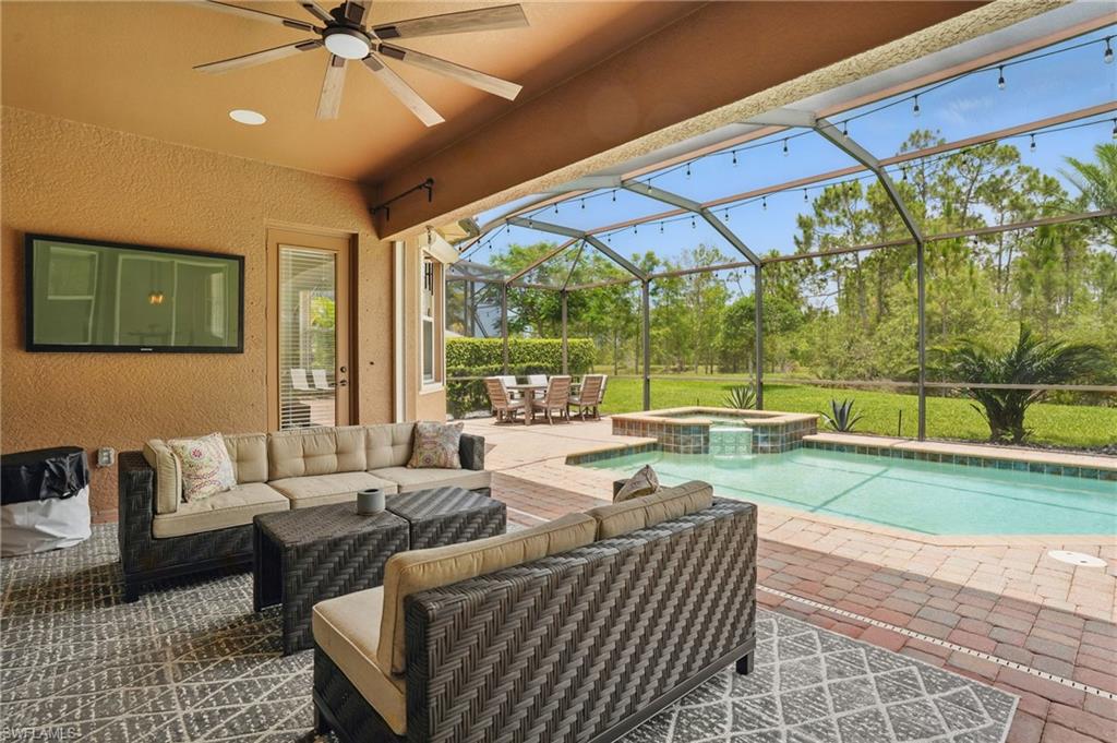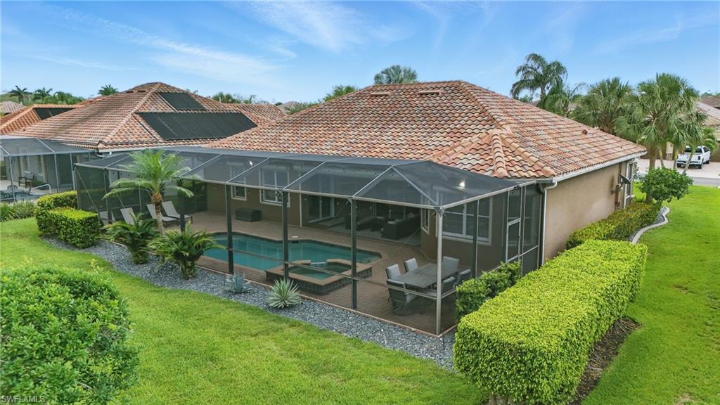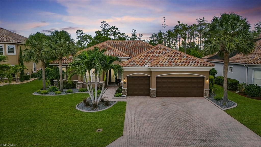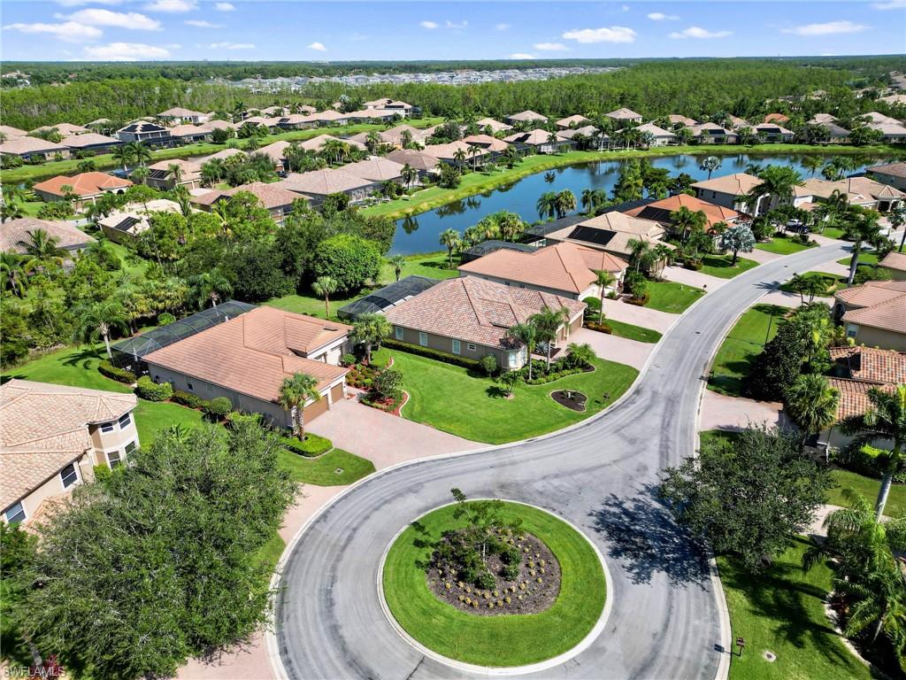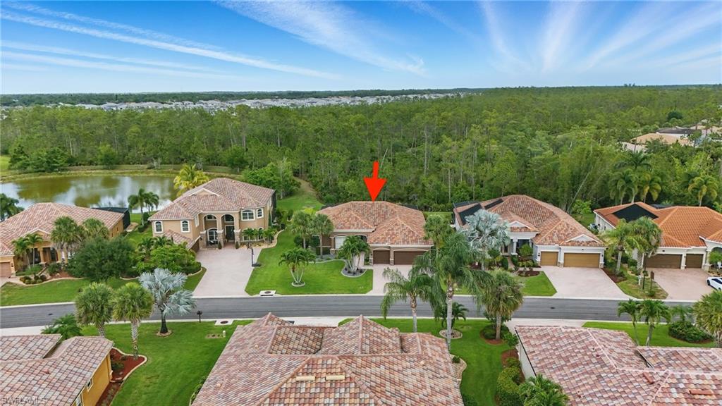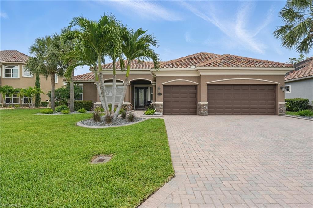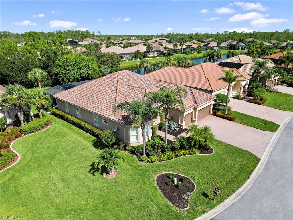 COME HOME FOR THE HOLIDAYS AND VISIT SUNDAYS OPEN HOUSE...Tucked into one of Estero’s most beloved, tree-lined neighborhoods, this Bayhill Estate home in Bella Terra feels like a true retreat. With 2,662 square feet, 4 bedrooms, 2.5 baths, and a 3-car garage, it combines space and style with serene lake views. Set on a rare double cul-de-sac street, the property offers privacy and charm, complete with a solar-heated pool and spa featuring fiber optic lighting and a sun shelf. Inside, the primary suite includes a thoughtful bump-out for added comfort. The open kitchen, designed for entertaining, flows into the family room and showcases 42-inch Maple cabinetry, granite counters, tile backsplash, and high-end appliances. Details like Venetian Bronze fixtures, recessed lighting, and 18-inch tile flooring elevate the home, while a paver driveway, upgraded elevation, and lush landscaping add to its curb appeal. Major updates include a new roof (2021), hurricane protection front and rear, and new A/C and water heater (2023). This home blends everyday convenience with resort-style living — ready to welcome its next owner. The beautiful community of Bella Terra has 999 acres, 400 of which are conservation preserves, 100 acres of lakes and some of the lowest fees around. Amenities include a Resort-style Clubhouse, 24-hour fitness center, bingo, boot camp, water aerobics, poker, cards, food truck nights and activities for all ages, resort style pool and spa, secured, shaded children's play area, sand volleyball, tennis, pickleball courts with in-ground nets, basketball, softball, kids soccer leagues, bocce ball, in-line skate rink, a peaceful butterfly garden and more! Bella Terra is centrally located with easy access to RSW, FGCU, I-75, Miromar Outlets, Gulf Coast Town Center and the Coconut Point Mall, Sanibel Island, Ft Myers Beach, Restaurants, Hiking, Entertainment, Boston Red Sox and Minnesota Twins Spring Training. Right home, right price, right neighborhood.