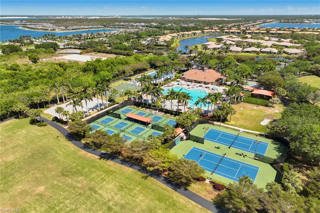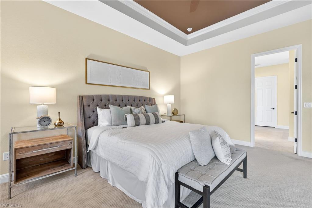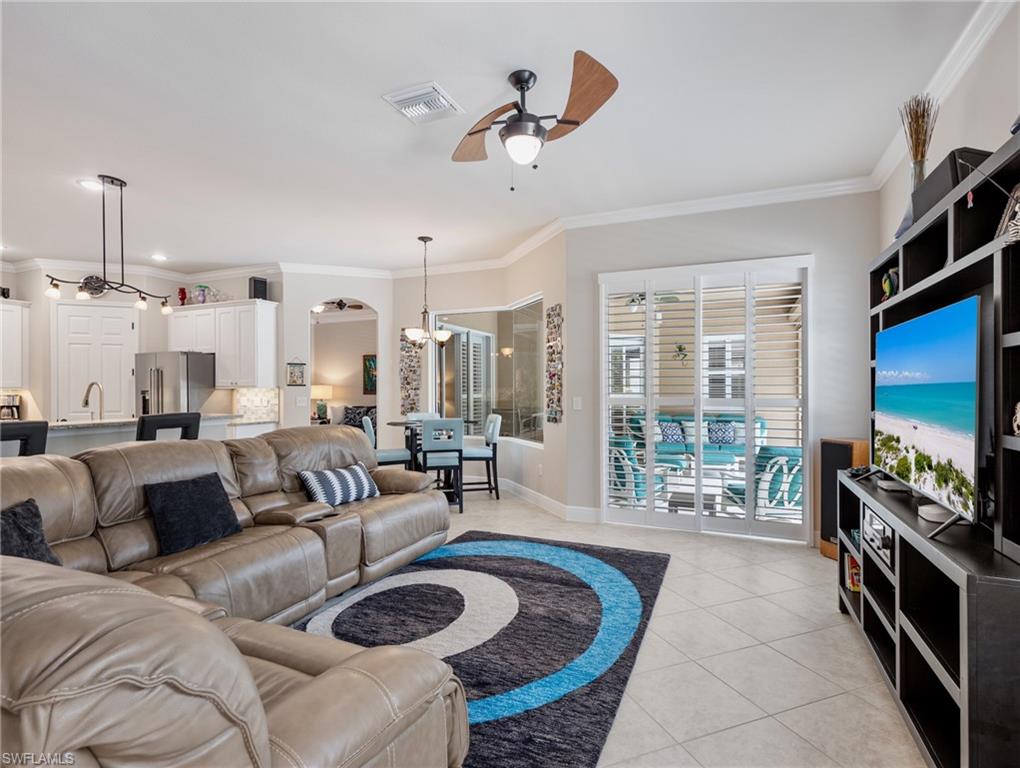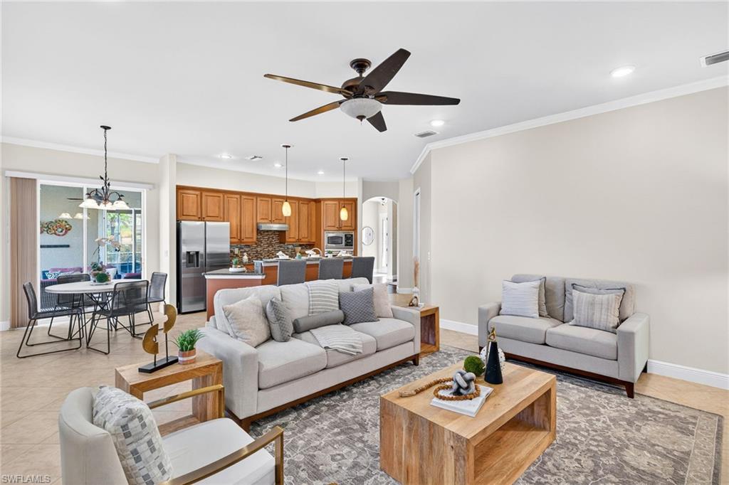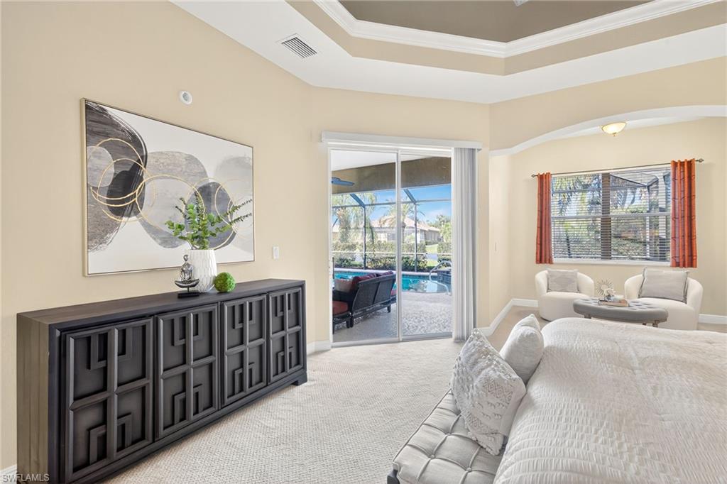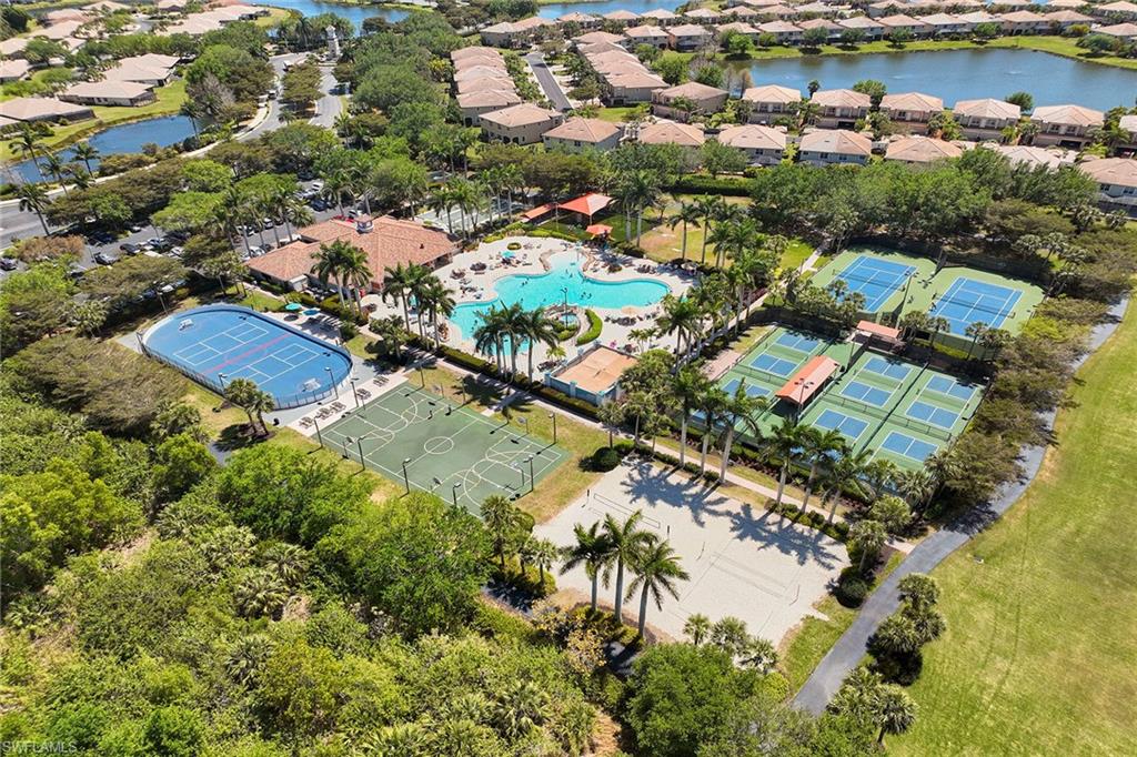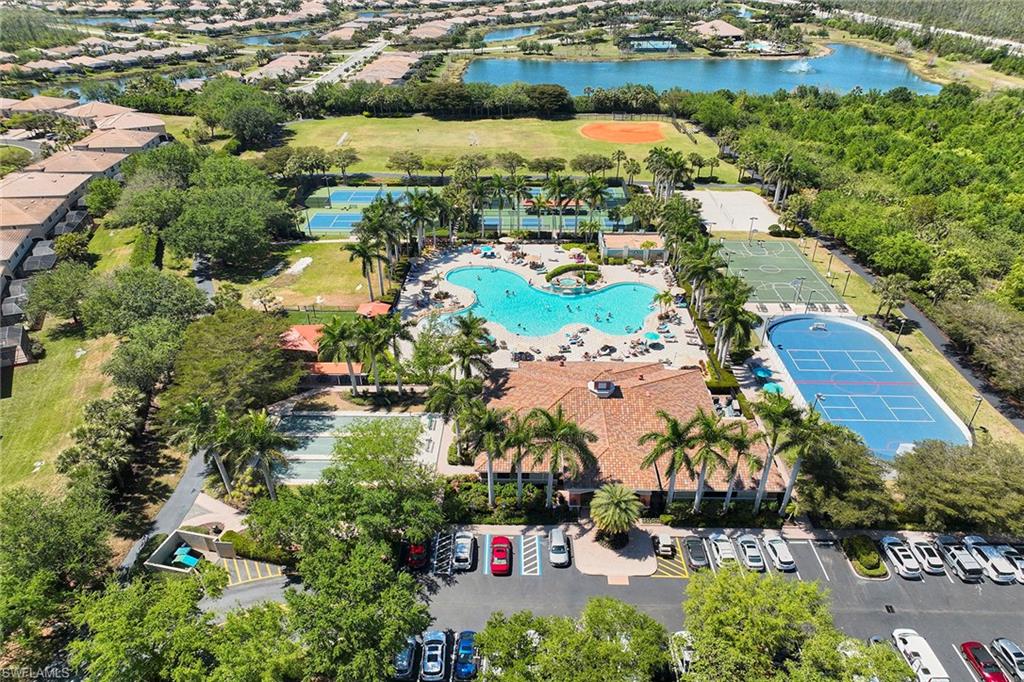 COME HOME FOR THE HOLIDAYS AND VISIT SUNDAYS OPEN HOUSE...Tucked into one of Estero’s most beloved, tree-lined neighborhoods, this Bayhill Estate home in Bella Terra feels like a true retreat. With 2,662 square feet, 4 bedrooms, 2.5 baths, and a 3-car garage, it combines space and style with serene lake views. Set on a rare double cul-de-sac street, the property offers privacy and charm, complete with a solar-heated pool and spa featuring fiber optic lighting and a sun shelf. Inside, the primary suite includes a thoughtful bump-out for added comfort. The open kitchen, designed for entertaining, flows into the family room and showcases 42-inch Maple cabinetry, granite counters, tile backsplash, and high-end appliances. Details like Venetian Bronze fixtures, recessed lighting, and 18-inch tile flooring elevate the home, while a paver driveway, upgraded elevation, and lush landscaping add to its curb appeal. Major updates include a new roof (2021), hurricane protection front and rear, and new A/C and water heater (2023). This home blends everyday convenience with resort-style living — ready to welcome its next owner. The beautiful community of Bella Terra has 999 acres, 400 of which are conservation preserves, 100 acres of lakes and some of the lowest fees around. Amenities include a Resort-style Clubhouse, 24-hour fitness center, bingo, boot camp, water aerobics, poker, cards, food truck nights and activities for all ages, resort style pool and spa, secured, shaded children's play area, sand volleyball, tennis, pickleball courts with in-ground nets, basketball, softball, kids soccer leagues, bocce ball, in-line skate rink, a peaceful butterfly garden and more! Bella Terra is centrally located with easy access to RSW, FGCU, I-75, Miromar Outlets, Gulf Coast Town Center and the Coconut Point Mall, Sanibel Island, Ft Myers Beach, Restaurants, Hiking, Entertainment, Boston Red Sox and Minnesota Twins Spring Training. Right home, right price, right neighborhood.