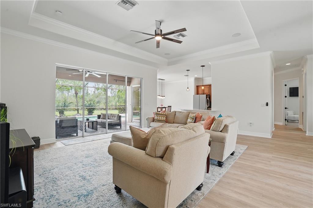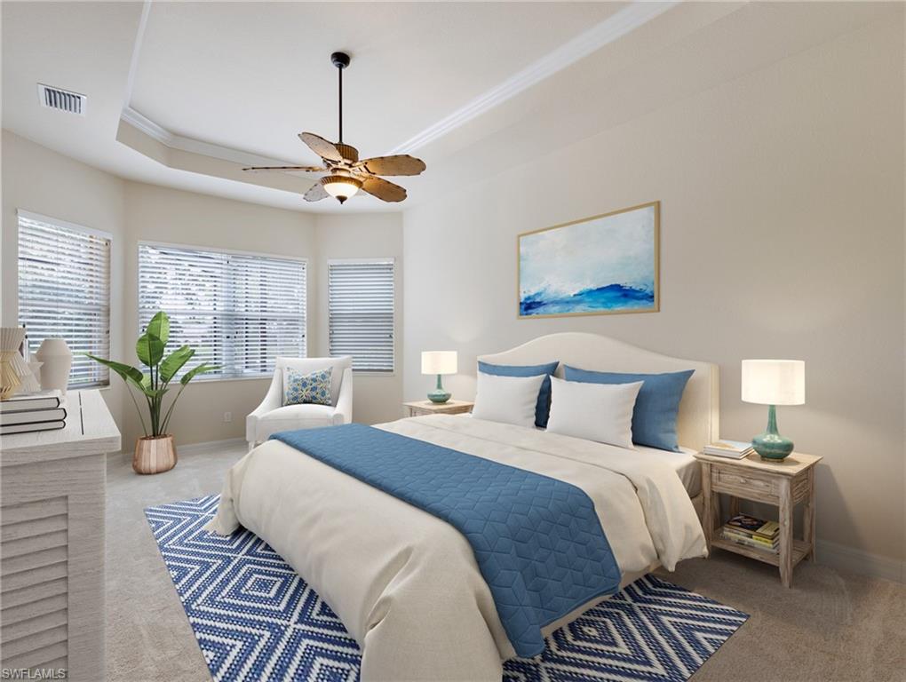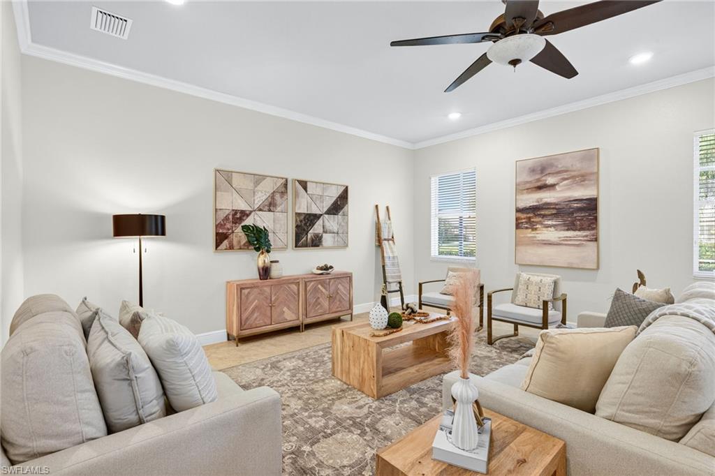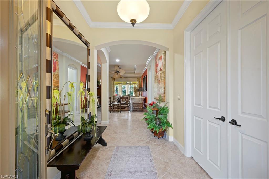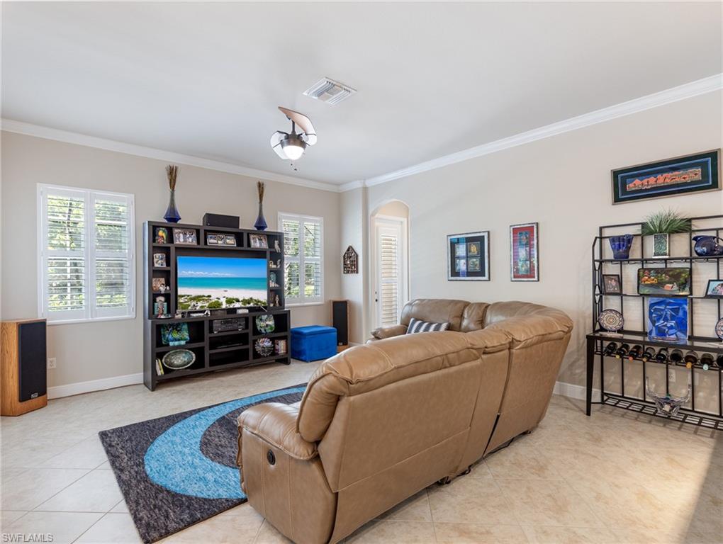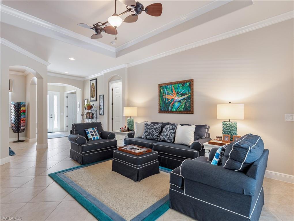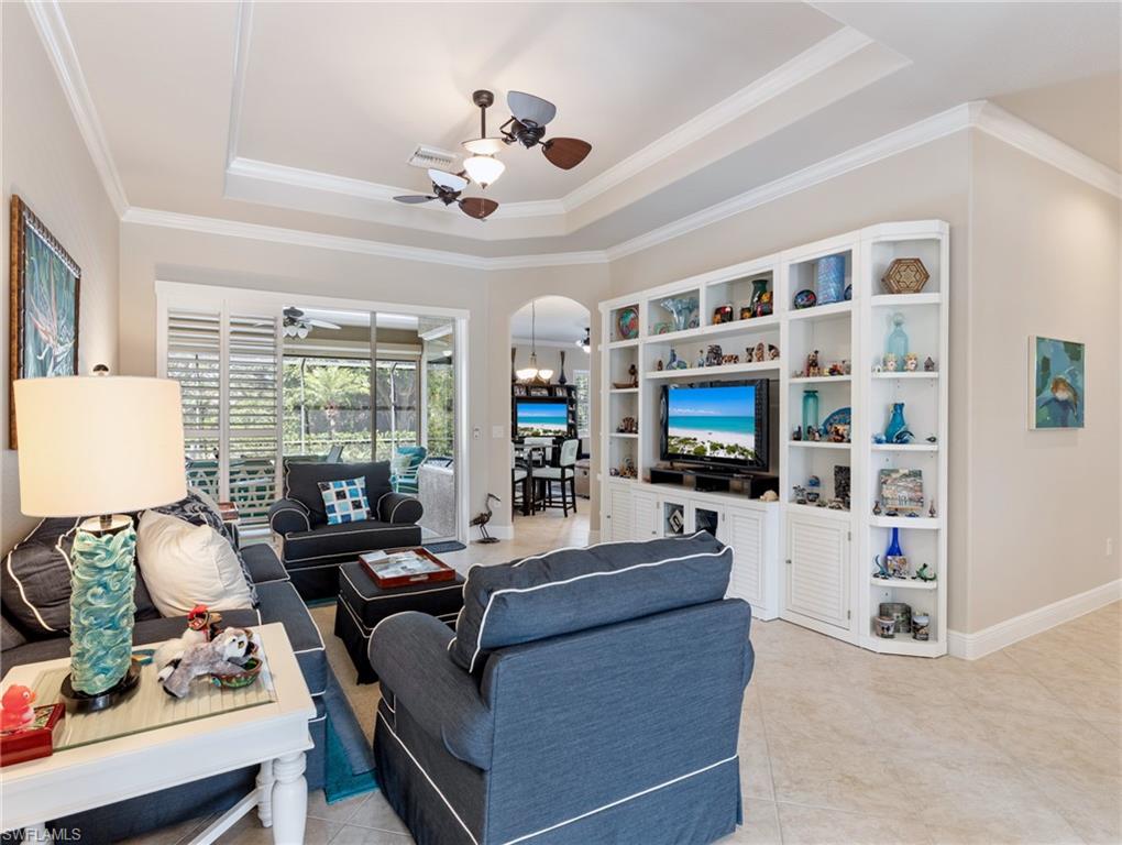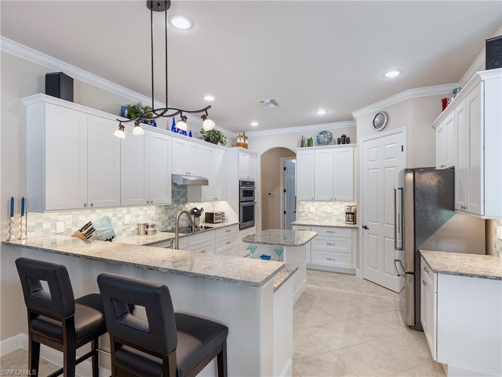 COME HOME FOR THE HOLIDAYS AND VISIT SUNDAYS OPEN HOUSE...Tucked into one of Estero’s most beloved, tree-lined neighborhoods, this Bayhill Estate home in Bella Terra feels like a true retreat. With 2,662 square feet, 4 bedrooms, 2.5 baths, and a 3-car garage, it combines space and style with serene lake views. Set on a rare double cul-de-sac street, the property offers privacy and charm, complete with a solar-heated pool and spa featuring fiber optic lighting and a sun shelf. Inside, the primary suite includes a thoughtful bump-out for added comfort. The open kitchen, designed for entertaining, flows into the family room and showcases 42-inch Maple cabinetry, granite counters, tile backsplash, and high-end appliances. Details like Venetian Bronze fixtures, recessed lighting, and 18-inch tile flooring elevate the home, while a paver driveway, upgraded elevation, and lush landscaping add to its curb appeal. Major updates include a new roof (2021), hurricane protection front and rear, and new A/C and water heater (2023). This home blends everyday convenience with resort-style living — ready to welcome its next owner. The beautiful community of Bella Terra has 999 acres, 400 of which are conservation preserves, 100 acres of lakes and some of the lowest fees around. Amenities include a Resort-style Clubhouse, 24-hour fitness center, bingo, boot camp, water aerobics, poker, cards, food truck nights and activities for all ages, resort style pool and spa, secured, shaded children's play area, sand volleyball, tennis, pickleball courts with in-ground nets, basketball, softball, kids soccer leagues, bocce ball, in-line skate rink, a peaceful butterfly garden and more! Bella Terra is centrally located with easy access to RSW, FGCU, I-75, Miromar Outlets, Gulf Coast Town Center and the Coconut Point Mall, Sanibel Island, Ft Myers Beach, Restaurants, Hiking, Entertainment, Boston Red Sox and Minnesota Twins Spring Training. Right home, right price, right neighborhood.