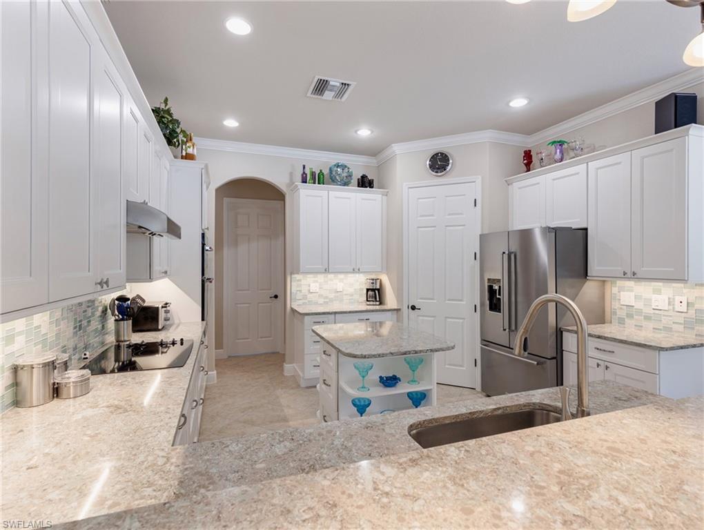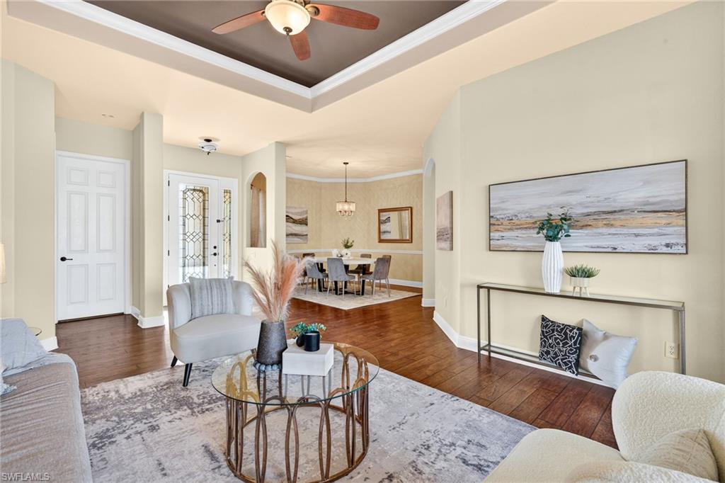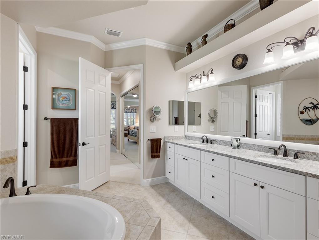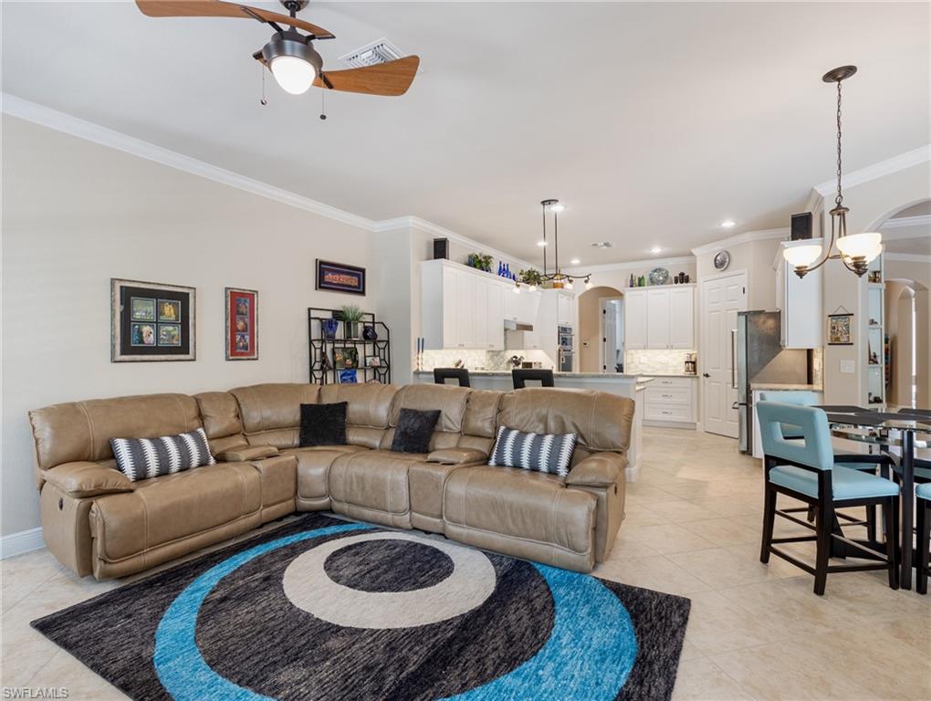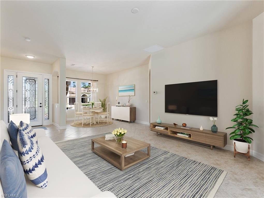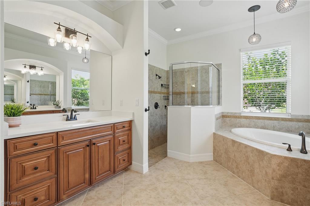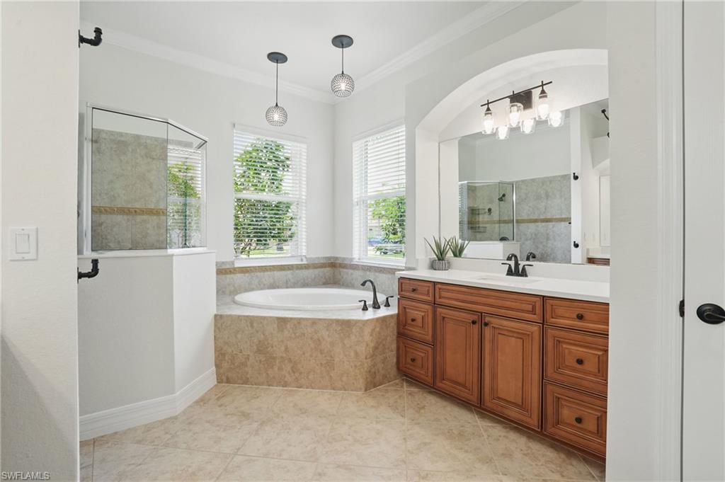 COME HOME FOR THE HOLIDAYS AND VISIT SUNDAYS OPEN HOUSE...Tucked into one of Estero’s most beloved, tree-lined neighborhoods, this Bayhill Estate home in Bella Terra feels like a true retreat. With 2,662 square feet, 4 bedrooms, 2.5 baths, and a 3-car garage, it combines space and style with serene lake views. Set on a rare double cul-de-sac street, the property offers privacy and charm, complete with a solar-heated pool and spa featuring fiber optic lighting and a sun shelf. Inside, the primary suite includes a thoughtful bump-out for added comfort. The open kitchen, designed for entertaining, flows into the family room and showcases 42-inch Maple cabinetry, granite counters, tile backsplash, and high-end appliances. Details like Venetian Bronze fixtures, recessed lighting, and 18-inch tile flooring elevate the home, while a paver driveway, upgraded elevation, and lush landscaping add to its curb appeal. Major updates include a new roof (2021), hurricane protection front and rear, and new A/C and water heater (2023). This home blends everyday convenience with resort-style living — ready to welcome its next owner. The beautiful community of Bella Terra has 999 acres, 400 of which are conservation preserves, 100 acres of lakes and some of the lowest fees around. Amenities include a Resort-style Clubhouse, 24-hour fitness center, bingo, boot camp, water aerobics, poker, cards, food truck nights and activities for all ages, resort style pool and spa, secured, shaded children's play area, sand volleyball, tennis, pickleball courts with in-ground nets, basketball, softball, kids soccer leagues, bocce ball, in-line skate rink, a peaceful butterfly garden and more! Bella Terra is centrally located with easy access to RSW, FGCU, I-75, Miromar Outlets, Gulf Coast Town Center and the Coconut Point Mall, Sanibel Island, Ft Myers Beach, Restaurants, Hiking, Entertainment, Boston Red Sox and Minnesota Twins Spring Training. Right home, right price, right neighborhood.