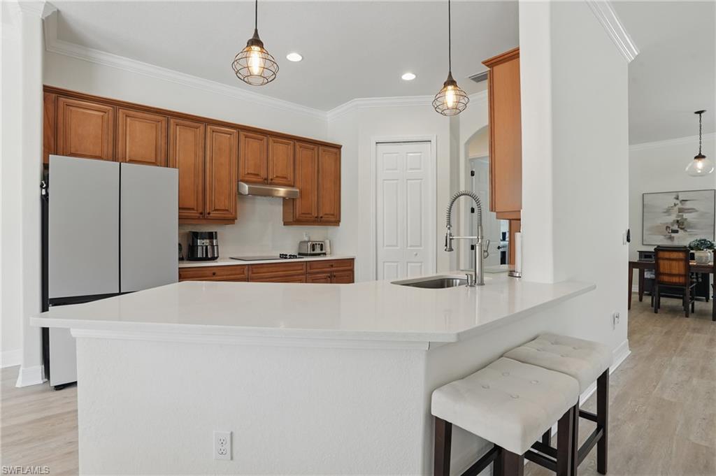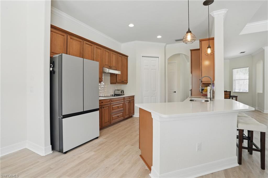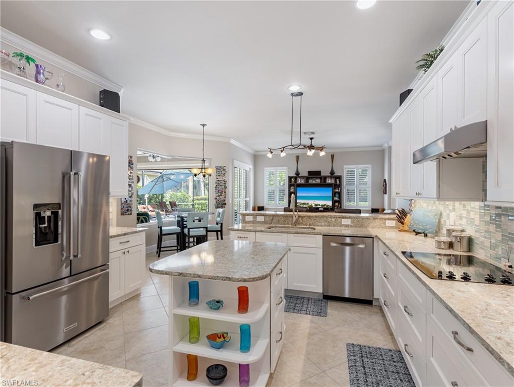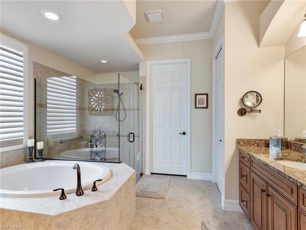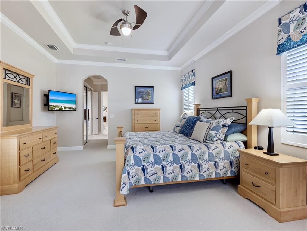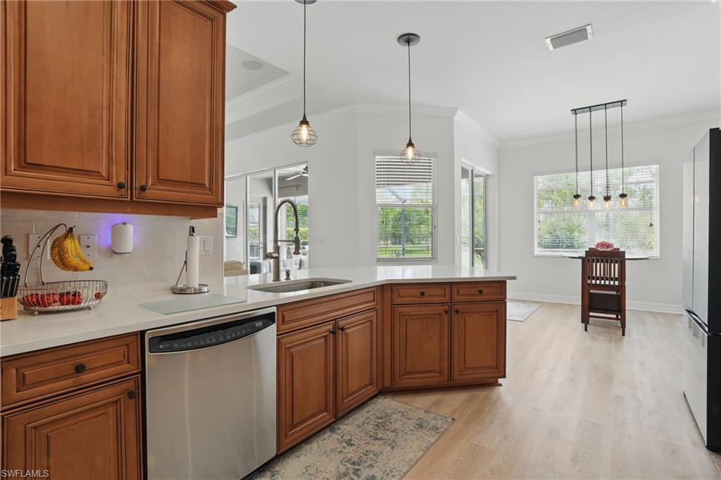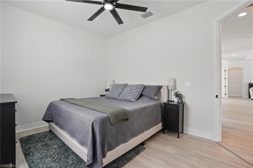 COME HOME FOR THE HOLIDAYS AND VISIT SUNDAYS OPEN HOUSE...Tucked into one of Estero’s most beloved, tree-lined neighborhoods, this Bayhill Estate home in Bella Terra feels like a true retreat. With 2,662 square feet, 4 bedrooms, 2.5 baths, and a 3-car garage, it combines space and style with serene lake views. Set on a rare double cul-de-sac street, the property offers privacy and charm, complete with a solar-heated pool and spa featuring fiber optic lighting and a sun shelf. Inside, the primary suite includes a thoughtful bump-out for added comfort. The open kitchen, designed for entertaining, flows into the family room and showcases 42-inch Maple cabinetry, granite counters, tile backsplash, and high-end appliances. Details like Venetian Bronze fixtures, recessed lighting, and 18-inch tile flooring elevate the home, while a paver driveway, upgraded elevation, and lush landscaping add to its curb appeal. Major updates include a new roof (2021), hurricane protection front and rear, and new A/C and water heater (2023). This home blends everyday convenience with resort-style living — ready to welcome its next owner. The beautiful community of Bella Terra has 999 acres, 400 of which are conservation preserves, 100 acres of lakes and some of the lowest fees around. Amenities include a Resort-style Clubhouse, 24-hour fitness center, bingo, boot camp, water aerobics, poker, cards, food truck nights and activities for all ages, resort style pool and spa, secured, shaded children's play area, sand volleyball, tennis, pickleball courts with in-ground nets, basketball, softball, kids soccer leagues, bocce ball, in-line skate rink, a peaceful butterfly garden and more! Bella Terra is centrally located with easy access to RSW, FGCU, I-75, Miromar Outlets, Gulf Coast Town Center and the Coconut Point Mall, Sanibel Island, Ft Myers Beach, Restaurants, Hiking, Entertainment, Boston Red Sox and Minnesota Twins Spring Training. Right home, right price, right neighborhood.