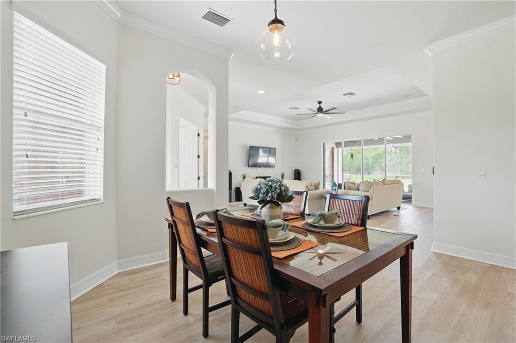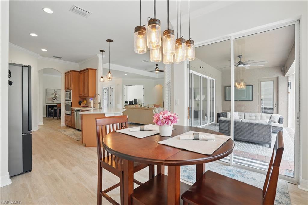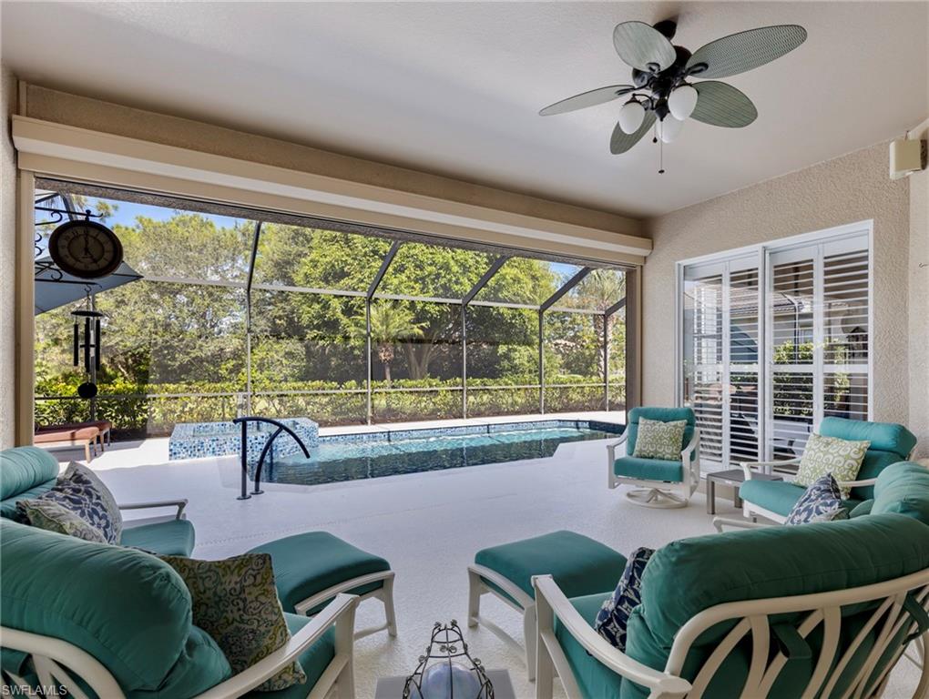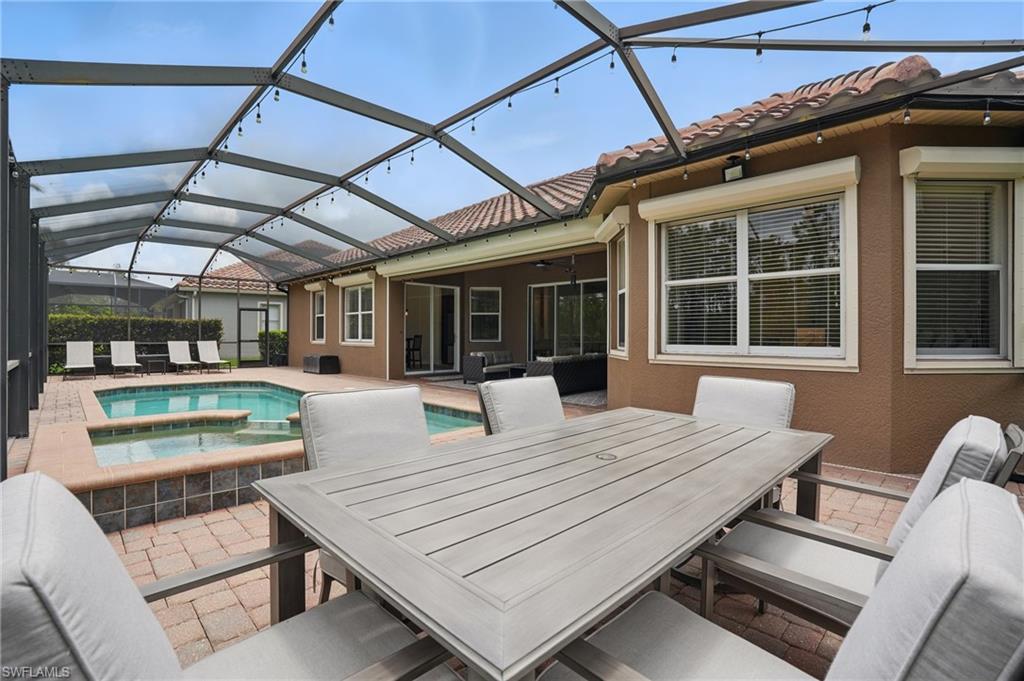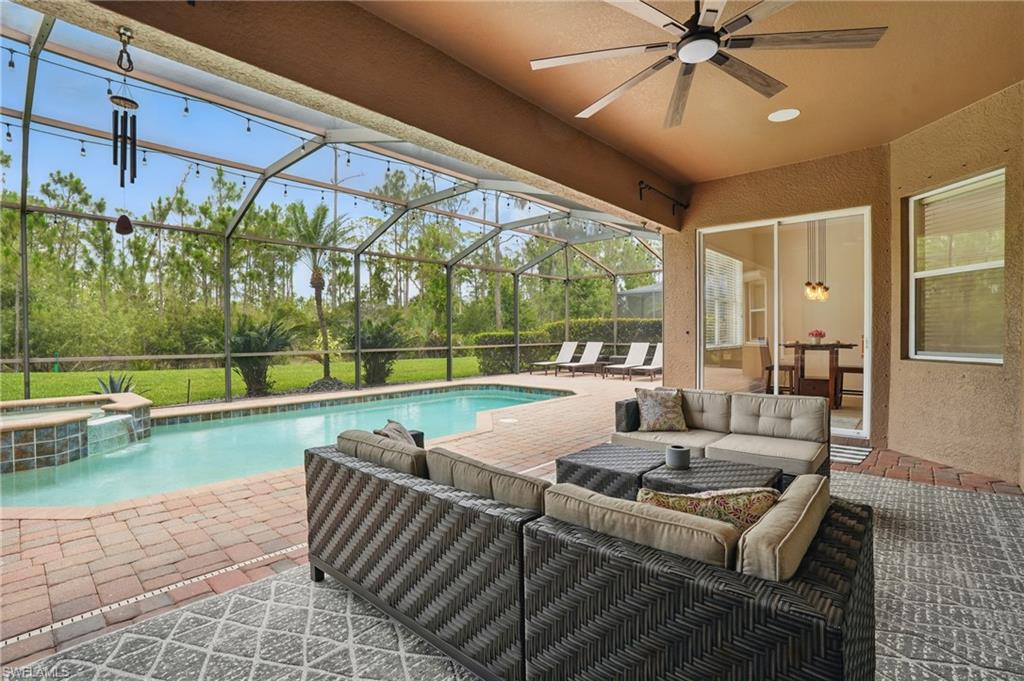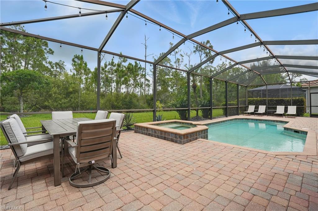 Imagine waking up to sunshine, palm trees, and your own private pool retreat. Tucked into one of Estero's most beloved, tree-lined neighborhoods, this spacious home feels like a hidden retreat. Discover this fantastic opportunity to own a spacious 4-bedroom, 3-bathroom home in Bella Terra's highly desirable Raphael floor plan, offering a generous 2,433 sq. ft. and a convenient split 3-car garage. Step out to your expansive screened lanai and enjoy the luxury of a heated pool and spa overlooking a private preserve. The extended lanai provides full coverage for the pool, perfect for year-round enjoyment, rain or shine! This well-maintained home boasts valuable peace-of-mind upgrades including full hurricane protection and a newer roof (replaced in 2019). Situated outside of a flood zone with desirable southern views, this property offers abundant natural light throughout the day. Inside, the thoughtful split bedroom layout features elegant formal living and dining rooms. The open kitchen flows seamlessly into the family room, creating an ideal space for entertaining. You'll appreciate the screened front porch, a beautiful leaded glass entry door, an upgraded kitchen, and a unique bar area complete with a wine cooler – perfect for your next gathering. Don't miss this exceptional Bella Terra home! The 999 acre Bella Terra community features 400 acres of conservation preserves and 100 acres of lake encompassing a resort-style clubhouse, a 24-hour fitness center, engaging activities like bingo and boot camp, water aerobics, poker, and food truck nights for a vibrant social life. Every member of the family will find something to enjoy, from the resort-style pool and spa to the secured, shaded children's play area. Sports enthusiasts can partake in sand volleyball, tennis, pickleball, basketball, softball, bocce ball, or even try out the in-line skate rink. Find solace in the peaceful butterfly garden. Bella Terra is a place you'll be proud to call home.