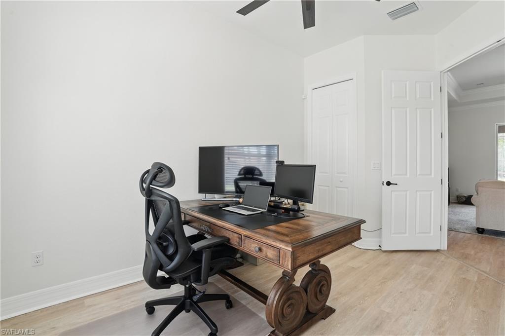 Welcome to one of the best finds in Bella Terra. This customized Sawgrass model offers nearly 3,000 square feet on a single level, with 5 bedrooms, 3 full baths, a 3-car garage, and a beautiful pool and spa with long lake views. If you’ve been waiting for the perfect home with space, style, and a true Florida lifestyle, this one checks every box. Inside, you’ll find a traditional floorplan with a separate formal living and dining room, a spacious family room, and a bedroom up front that works perfectly as a home office. There’s also a private guest suite in the back with direct pool access, which is ideal for overnight visitors. The kitchen is the heart of the home, featuring a large island-style layout with upgraded cabinetry, granite countertops, and quality appliances. Custom built-in cabinetry offers extra storage and two wine refrigerators — because one is never enough. Crown molding, tray ceilings, plantation shutters, window treatments, and neutral tile floors give this home a clean, finished look from room to room. The primary suite offers an additional bump-out sitting area, perfect for a reading nook, Peloton, or small workspace. All three bathrooms have upgraded finishes, including granite. The laundry room is oversized and well-organized. Step outside to a large, screened-in lanai built for entertaining. Enjoy the pool and spa, newer pool equipment, roll-down hurricane shutters, and picturesque western sunset views over the lake. Whether it’s morning coffee or an evening glass of wine, this is where you’ll want to be. Additional updates include: 3M sun protection film on the windows, a freshly painted exterior, and upgraded hurricane protection throughout. Meticulously maintained, move-in ready, and located in the Estates section of Bella Terra — this one is a rare find and incredibly hard to duplicate in this price range. Beyond the home, the 999-acre Bella Terra community is a lifestyle in itself. With 400 acres of conservation preserves and 100 acres of lakes, residents enjoy a resort-style clubhouse featuring a 24-hour fitness center, a vibrant social calendar (including bingo, boot camp, water aerobics, poker, yoga and food truck events), and endless recreation. The expansive resort-style pool and spa, along with a secured, shaded children's play area, ensure fun for all ages. Sports enthusiasts will appreciate the tennis, pickleball, basketball, softball, soccer field, bocce ball courts, sand volleyball and even an in-line skate rink. Discover tranquility in the peaceful butterfly garden. Bella Terra isn't just a community; it's a place where every day feels like a vacation – a place you'll be proud to call home.