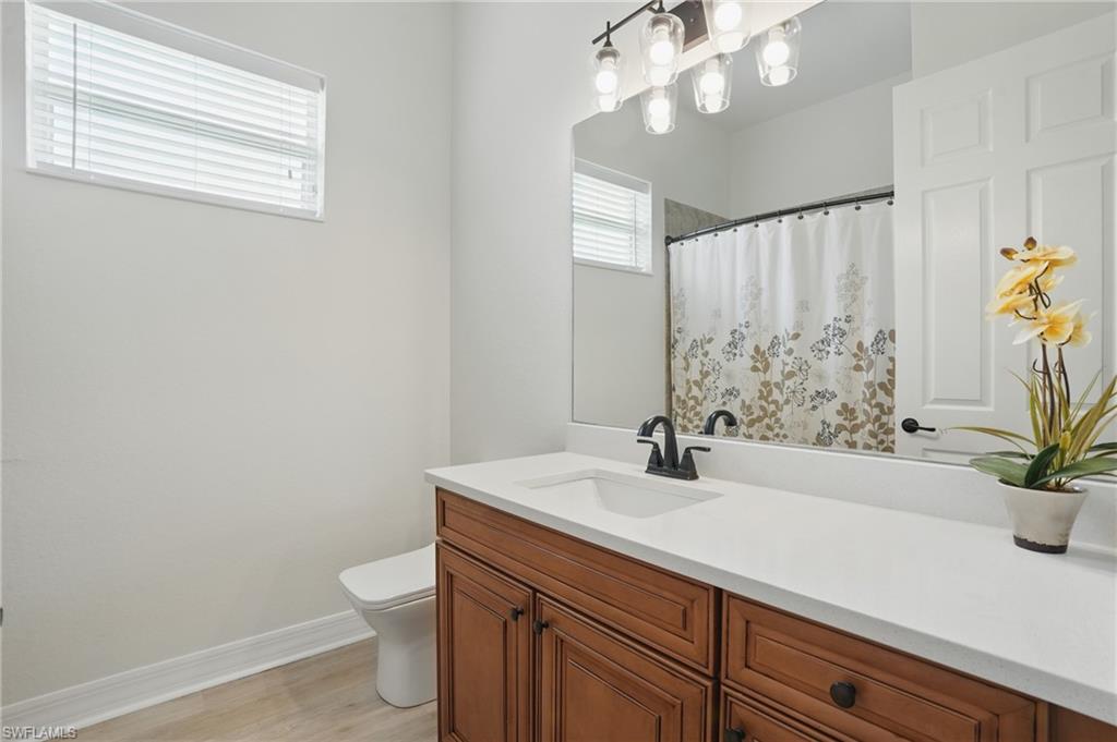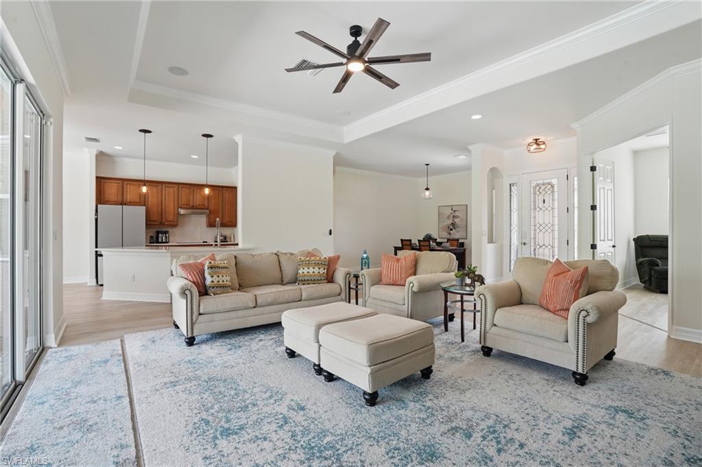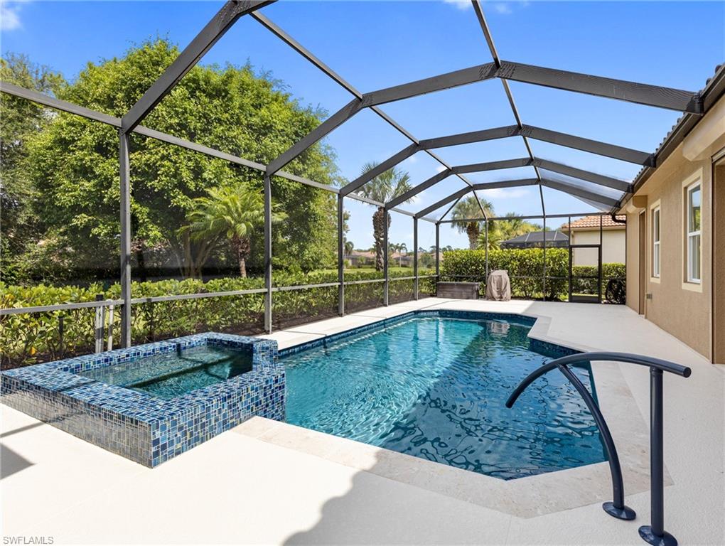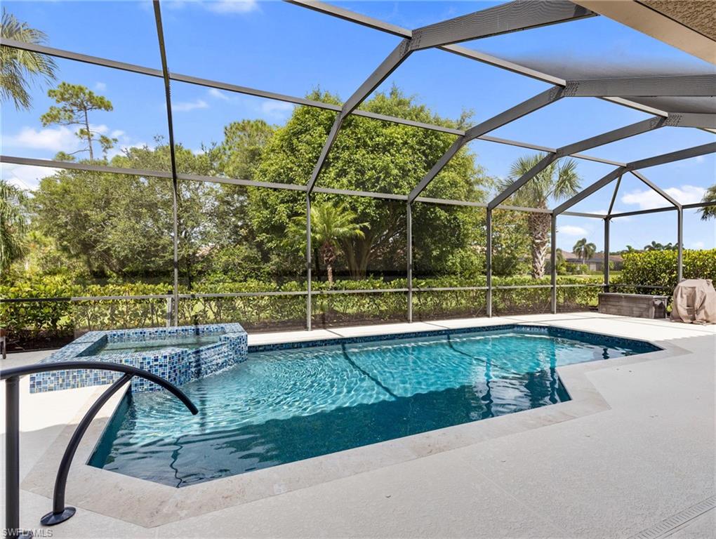 Must-See Sawgrass Model in Bella Terra’s Desirable Estate Section! This meticulously maintained and updated 5-bedroom, 3-bathroom ranch-style pool home offers nearly 3,000 sq. ft. of thoughtfully designed living space and is truly move-in ready. Nestled on a private, cul-de-sac lot with peaceful preserve views and no rear neighbors, this property offers the perfect blend of privacy, comfort, and style. Step inside to a spacious floor plan featuring both a formal living room and a large family room—ideal for entertaining or relaxing. The kitchen was tastefully remodeled in 2021 with quartz countertops, upgraded cabinetry, and a walk-in pantry. All bathrooms were also updated, and the laundry room now boasts matching cabinetry and quartz counters for a cohesive, high-end feel. The entire back of the home opens up to a generously sized covered lanai, complete with a POWER SHADE SCREEN, and a stunningly remodeled pool and spa (2025) featuring a new variable speed pool pump and AquaLink automation system. Enjoy peace of mind with IMPACT GLASS THROUGHOUT and POWER STORM SHUTTERS on the lanai. Additional upgrades include a new roof in 2020, Trane A/C system in 2019, and a brand-new hot water heater. Inside, you’ll find plantation shutters, California Closets, and elegant crown molding throughout. The garage also offers extra functionality with ceiling-mounted storage racks and a pull-down attic ladder. This home offers a rare combination of style, function, and security in one of Estero’s most sought-after communities. Don’t miss your opportunity to own in Bella Terra’s estate section! Bella Terra is nestled on 999 acres with half the community dedicated to lakes/preserves and home to a variety of native Florida wildlife. Features a Resort-style Clubhouse, 24 hour fitness center, activities for all ages, resort-style pool and spa, shaded children's play area, tennis courts, pickle ball, bocce ball, sand volleyball, multi-use sports fields, tranquil butterfly garden, excercise trails and more. Call Today!!
