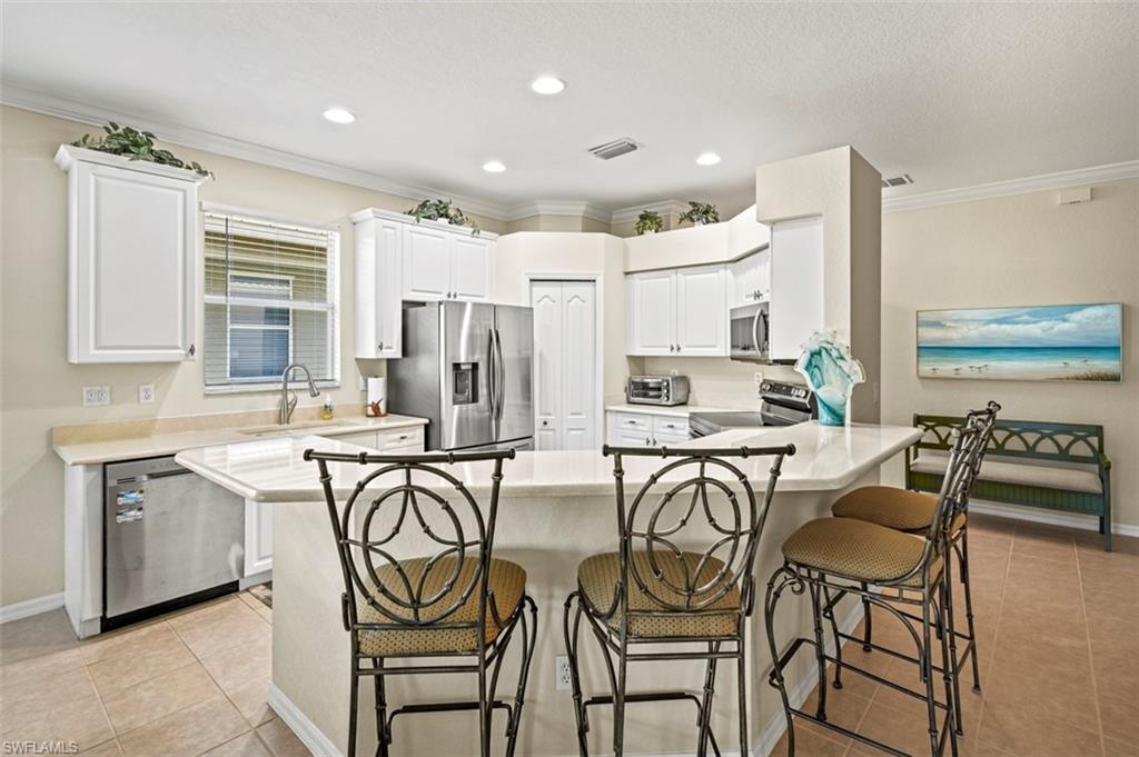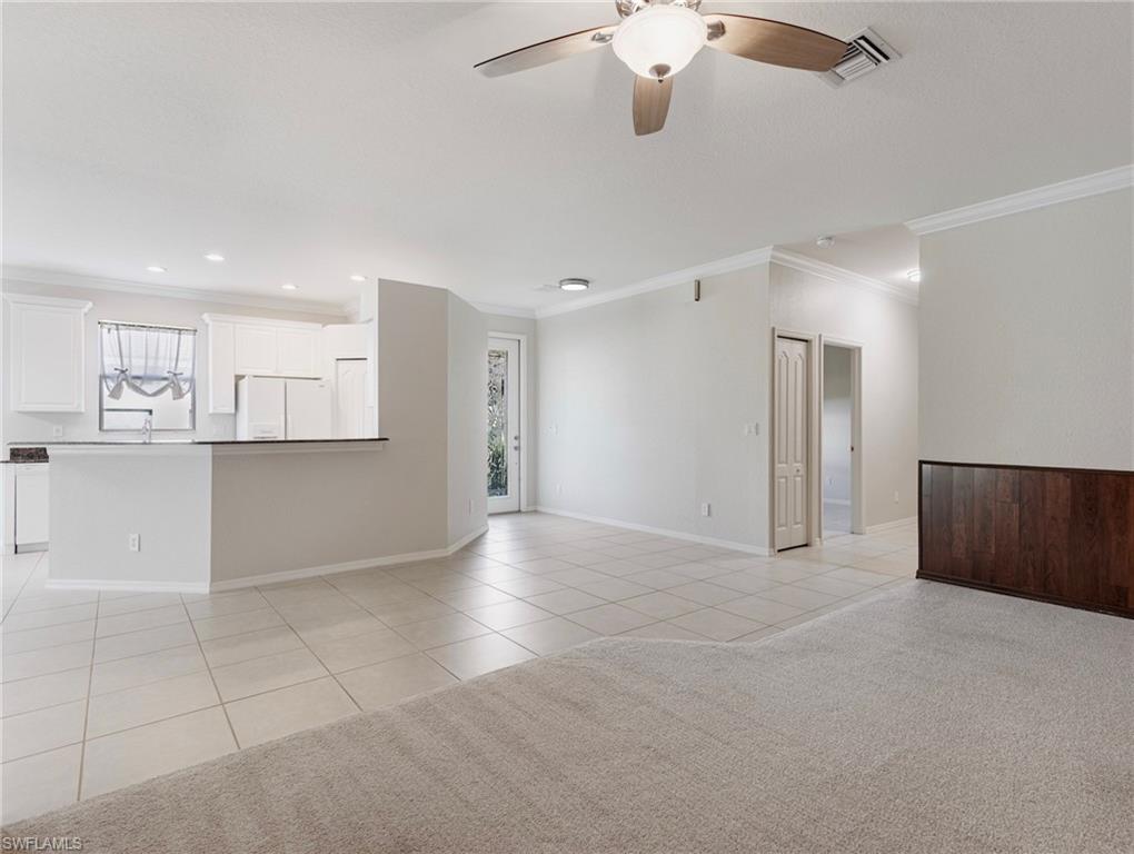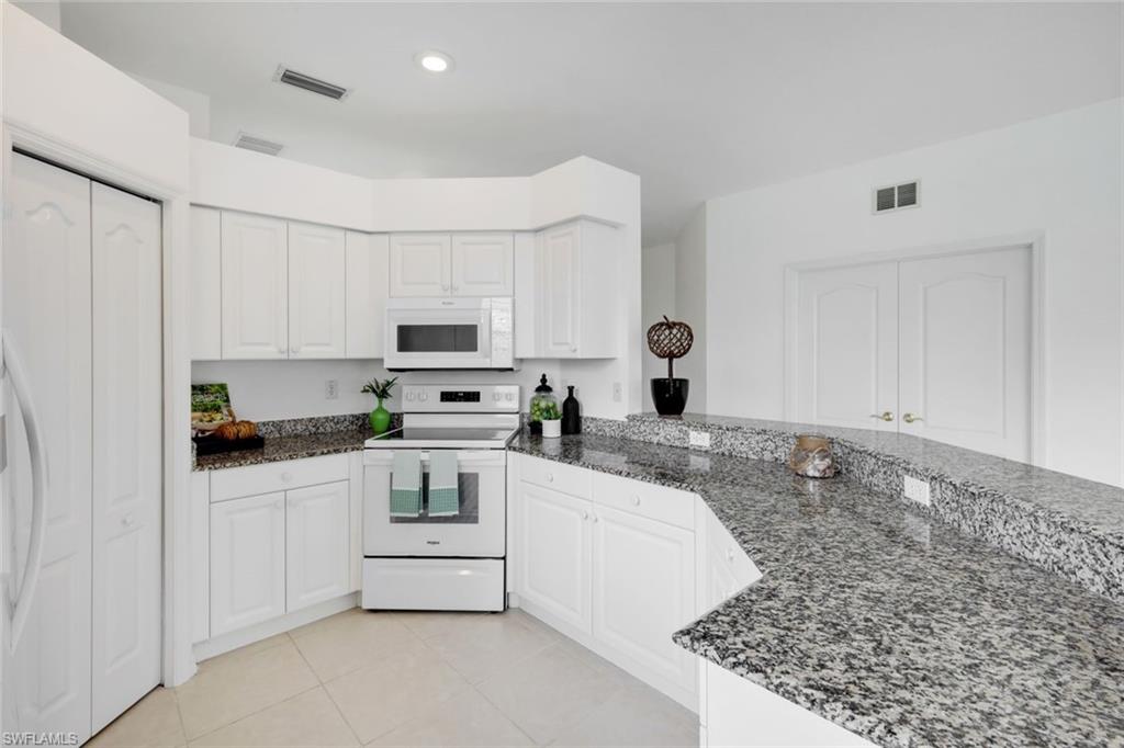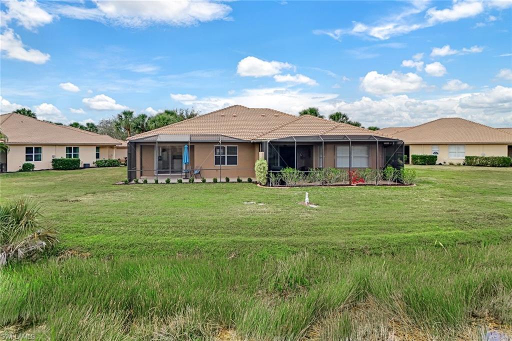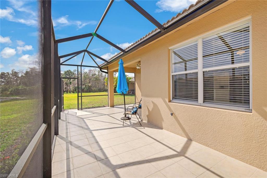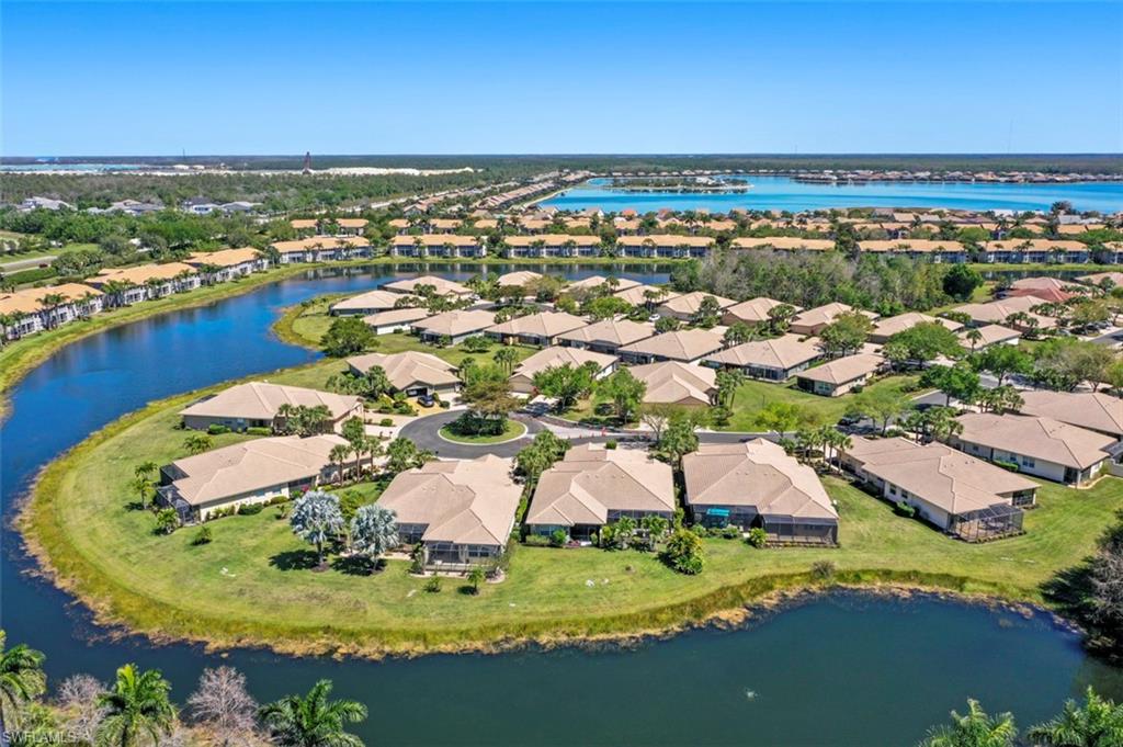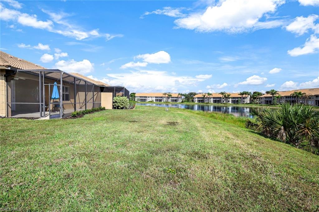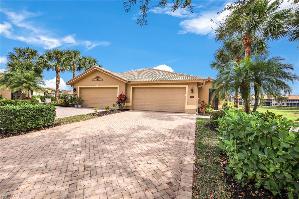 Gorgeous Villa on a PRIME Lake View homesite with oversized side yard! Come view this CHARMING and WELL-MAINTAINED 3BR and 2 bath home with a 2-car garage! The NATURAL SUNLIGHT you see off the water really sets the tone for this home! Tile flooring in the main, NEW Carpeting in the bedrooms, white cabinets with granite counters and NEW kitchen Appliances are just a few of the many upgrades this unit has to offer. The open floor plan is perfect for entertaining with a breakfast bar, eat-in kitchen, and a formal dining area. The master suite has 2 large closets and linen closet, a double vanity, and a large walk-in shower. The great room is spacious and opens to an EXTENDED TILED LANAI with panoramic lake views; perfect for gathering with friends and family. The clubhouse and Amenity Campus is just a short walk from your front door! Bella Terra offers spectacular amenities including a resort style pool with spa, community area, tennis and pickleball courts, fitness center, baseball, basketball, and bocce courts, playground area, soccer field, and volleyball. The community is conveniently located close to the airport, I-75, FGCU, dining, shopping and all that Stunning ESTERO has to offer!