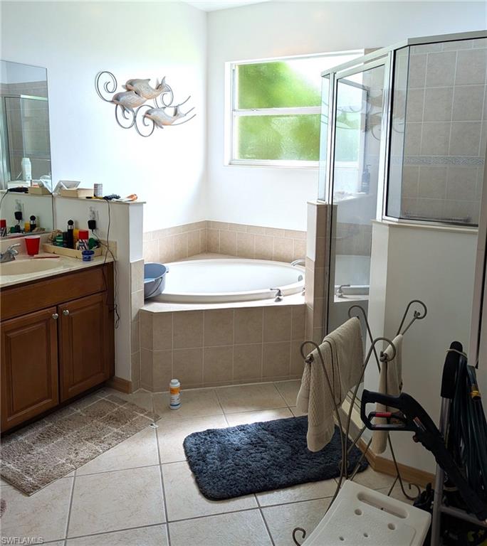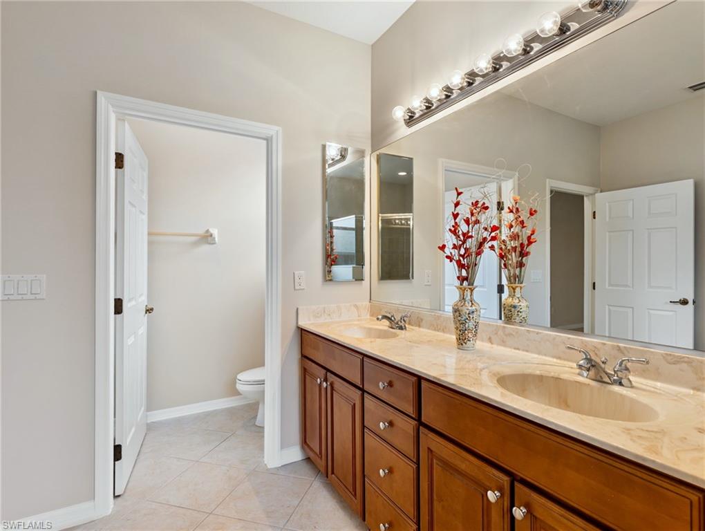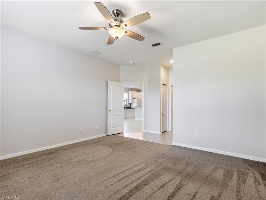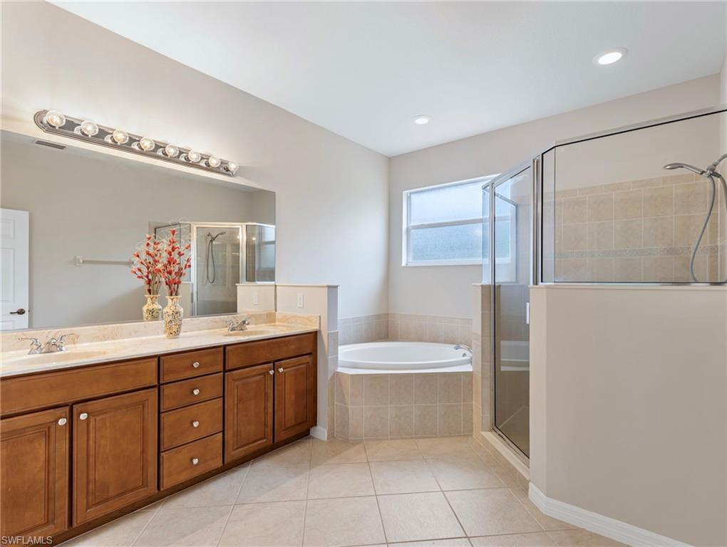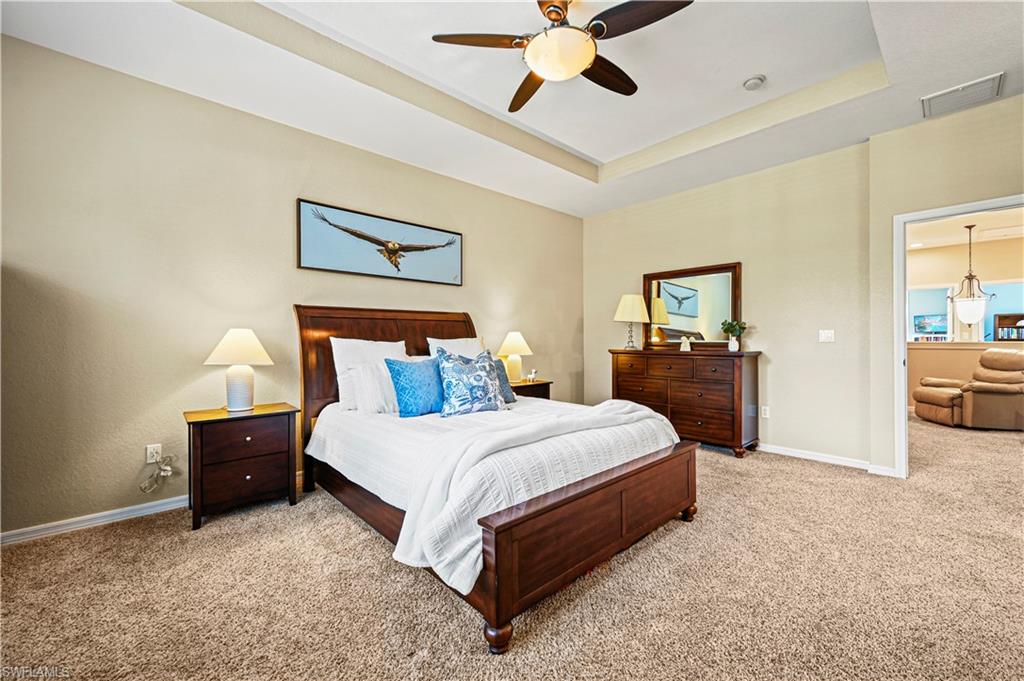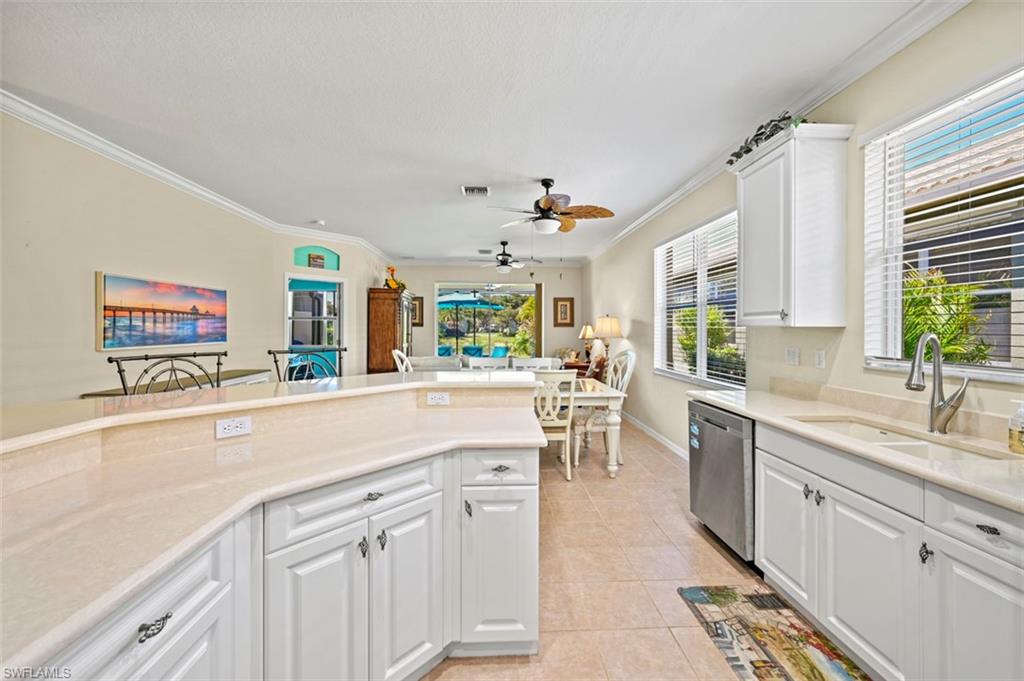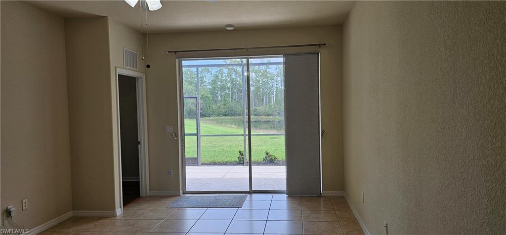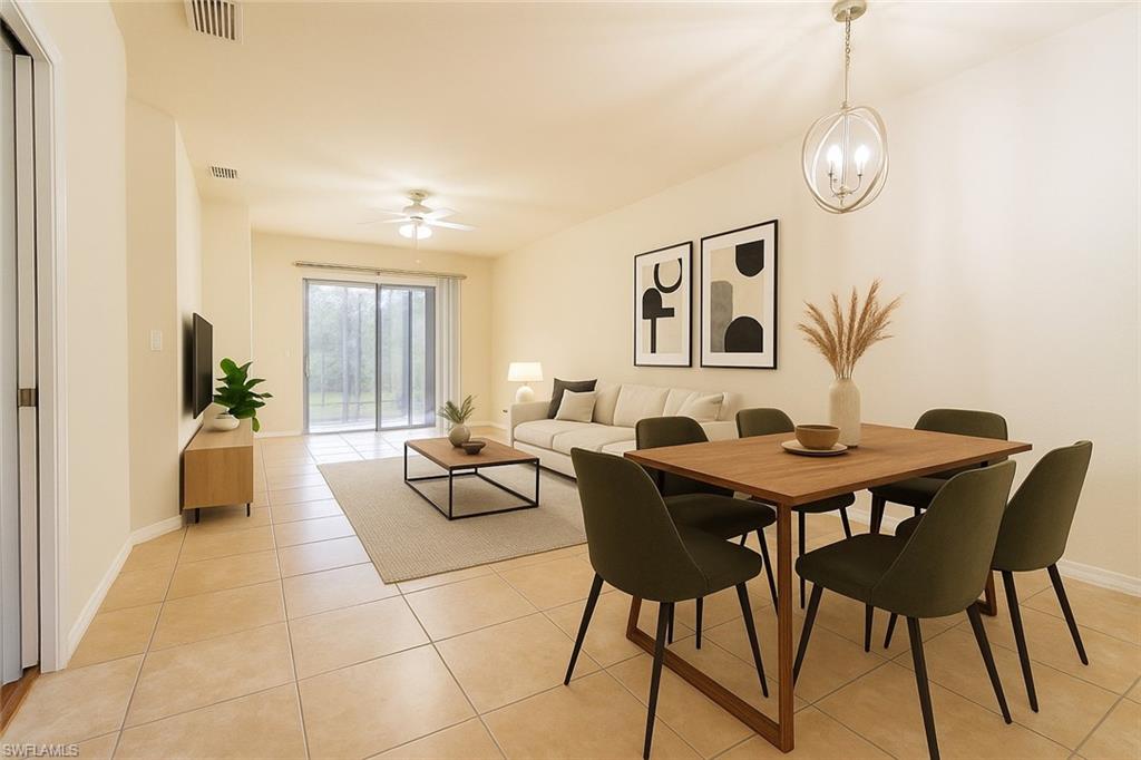 Gorgeous Villa on a PRIME Lake View homesite with oversized side yard! Come view this CHARMING and WELL-MAINTAINED 3BR and 2 bath home with a 2-car garage! The NATURAL SUNLIGHT you see off the water really sets the tone for this home! Tile flooring in the main, NEW Carpeting in the bedrooms, white cabinets with granite counters and NEW kitchen Appliances are just a few of the many upgrades this unit has to offer. The open floor plan is perfect for entertaining with a breakfast bar, eat-in kitchen, and a formal dining area. The master suite has 2 large closets and linen closet, a double vanity, and a large walk-in shower. The great room is spacious and opens to an EXTENDED TILED LANAI with panoramic lake views; perfect for gathering with friends and family. The clubhouse and Amenity Campus is just a short walk from your front door! Bella Terra offers spectacular amenities including a resort style pool with spa, community area, tennis and pickleball courts, fitness center, baseball, basketball, and bocce courts, playground area, soccer field, and volleyball. The community is conveniently located close to the airport, I-75, FGCU, dining, shopping and all that Stunning ESTERO has to offer!