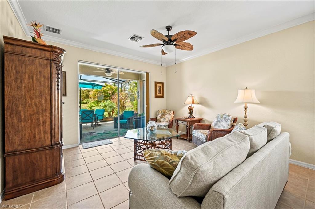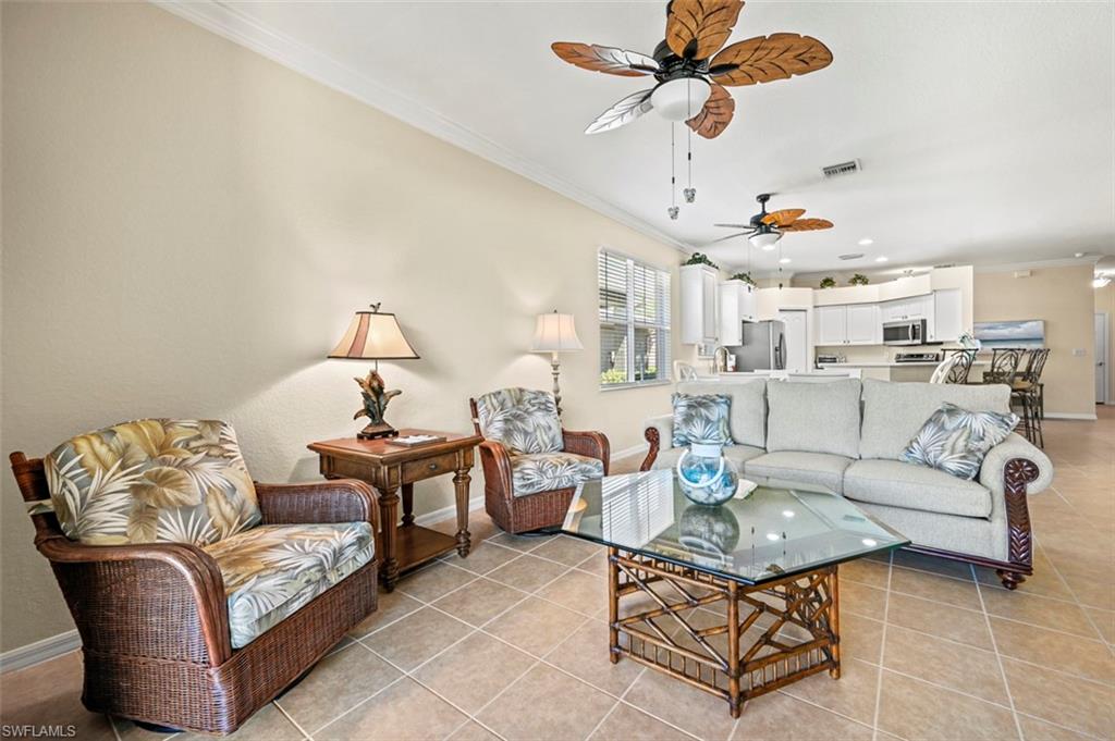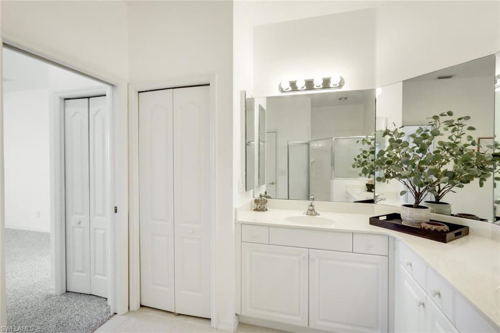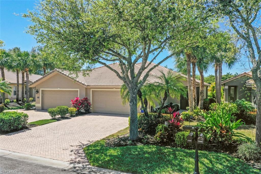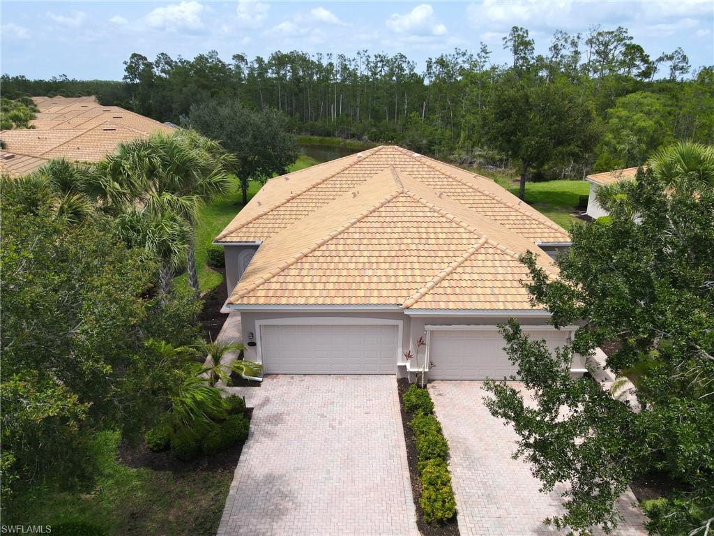 This beautifully maintained villa offers gorgeous lake views and is just steps from the resort-style amenities. Featuring 2 bedrooms, 2 bathrooms, a Flex room and a 2-car garage... this home combines comfort and charm and has been impeccably kept with a freshly painted interior. Features an open concept design with lots of natural light and versatility for furniture setup, including a casual dining nook, possibilities for a formal dining area, family room, open Den concept etc. Also has an extended lanai overlooking beautiful trees and long lake views to enjoy. The primary suite is very spacious and provides dual closets, a linen closet, dual vanities and a walk-in shower. Immaculate, move in ready condition and priced to sell! Low density, low traffic street with cul de sac right in the front of the community with quick convenient access to the gates and resort amenities. Have a look at the HOA fees and what they include, you can't beat the value Bella Terra offers. Nestled on 999 acres with half the community dedicated to lakes and preserves. Features a Resort-style Clubhouse, 24 hr fitness center, activities for all ages, resort pool and spa, shaded children's play area, tennis courts, pickle ball, bocce ball, sand volleyball, multi-use sports fields, tranquil butterfly garden, exercise trails and more. You won’t find a better value in Estero at this price. Don’t miss this incredible opportunity.