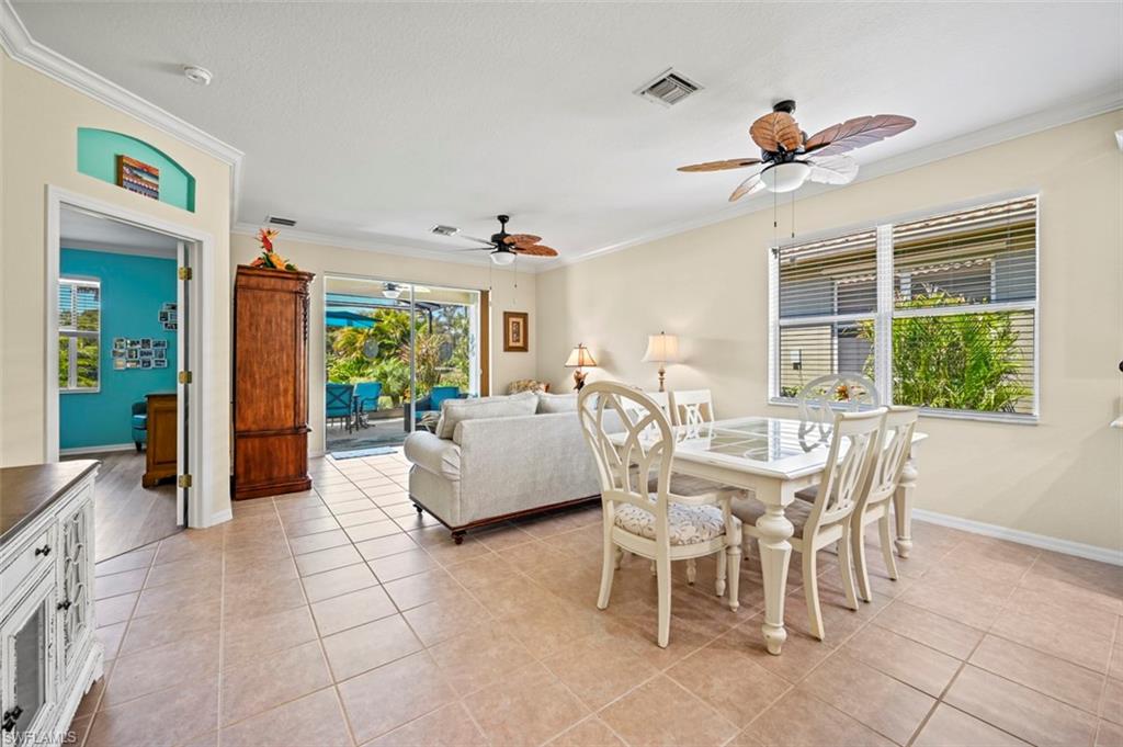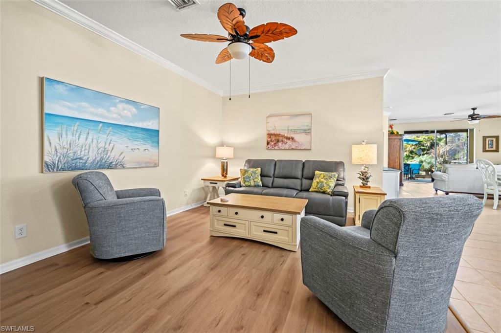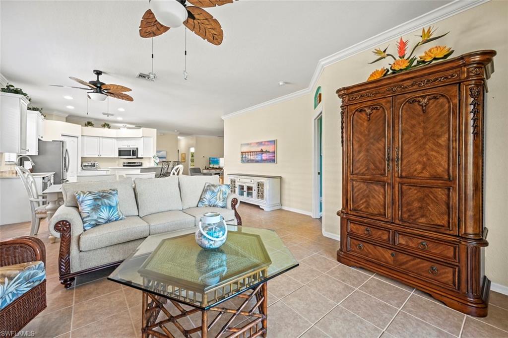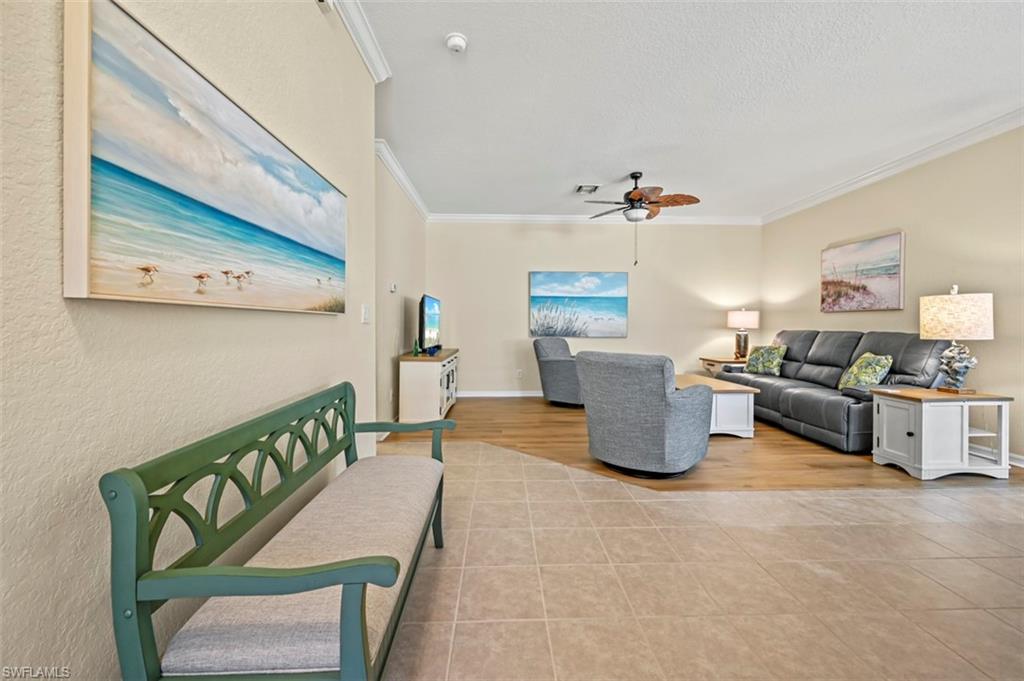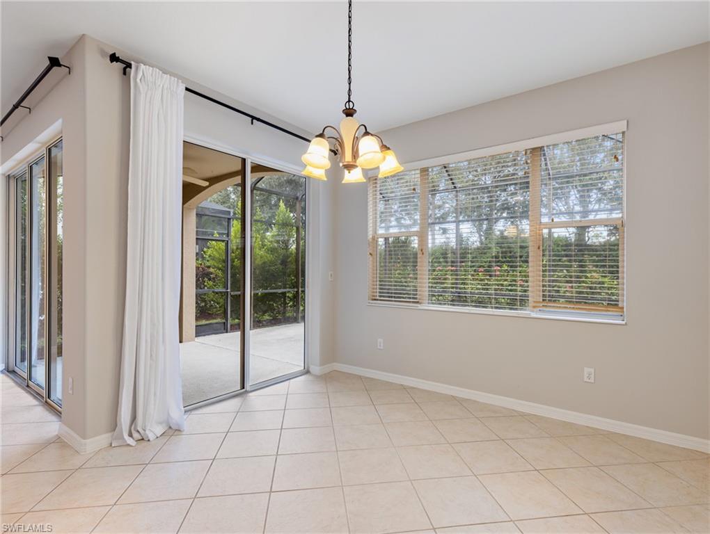 This beautifully maintained villa offers gorgeous lake views and is just steps from the resort-style amenities. Featuring 2 bedrooms, 2 bathrooms, a Flex room and a 2-car garage... this home combines comfort and charm and has been impeccably kept with a freshly painted interior. Features an open concept design with lots of natural light and versatility for furniture setup, including a casual dining nook, possibilities for a formal dining area, family room, open Den concept etc. Also has an extended lanai overlooking beautiful trees and long lake views to enjoy. The primary suite is very spacious and provides dual closets, a linen closet, dual vanities and a walk-in shower. Immaculate, move in ready condition and priced to sell! Low density, low traffic street with cul de sac right in the front of the community with quick convenient access to the gates and resort amenities. Have a look at the HOA fees and what they include, you can't beat the value Bella Terra offers. Nestled on 999 acres with half the community dedicated to lakes and preserves. Features a Resort-style Clubhouse, 24 hr fitness center, activities for all ages, resort pool and spa, shaded children's play area, tennis courts, pickle ball, bocce ball, sand volleyball, multi-use sports fields, tranquil butterfly garden, exercise trails and more. You won’t find a better value in Estero at this price. Don’t miss this incredible opportunity.
