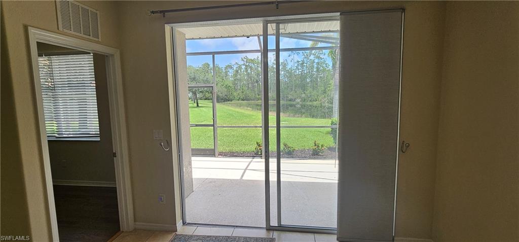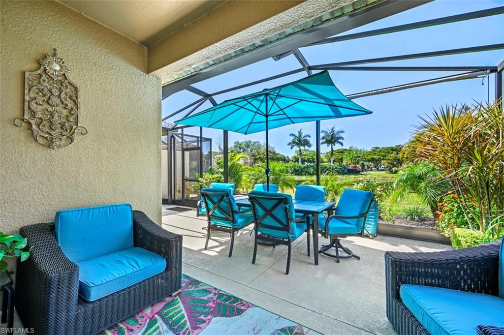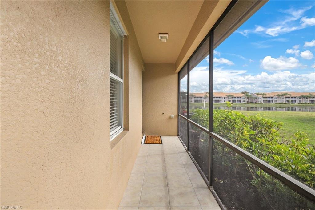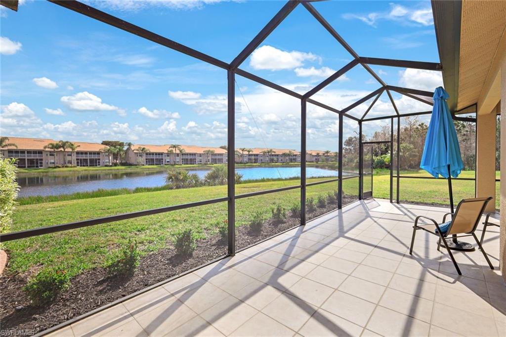 One of the best views in the neighborhood! This is a rare lakefront villa with a beautiful lake and preserve view. Enjoy living the southwest Florida lifestyle in this well maintained 2 bedroom plus den or 3rd bedroom, 2 bath villa featuring over 1,400 square feet of living space under AC. The home boasts all tile flooring in the main living areas, beautiful hand-scraped hardwood flooring in the bedrooms and just freshly painted. Relax outside on your private screened lanai which features a picturesque view of the lake and preserve. Enjoy the beauty of a large variety of Florida’s wildlife right in your backyard. The open kitchen features stainless steel appliances and Coriann counters. The master bedroom suite has its own private bath with dual sinks and a large walk-in shower. Newer air-conditioning system replaced in 2022. The gated community of Bella Terra offers numerous amenities including a state-of-the-art fitness center and resort style pool. 24-hr fitness center, resort-style clubhouse, pickleball, tennis, and bike paths. Ideally located close to plenty of dining, shopping and entertainment and just a short drive to some of the areas finest beaches.