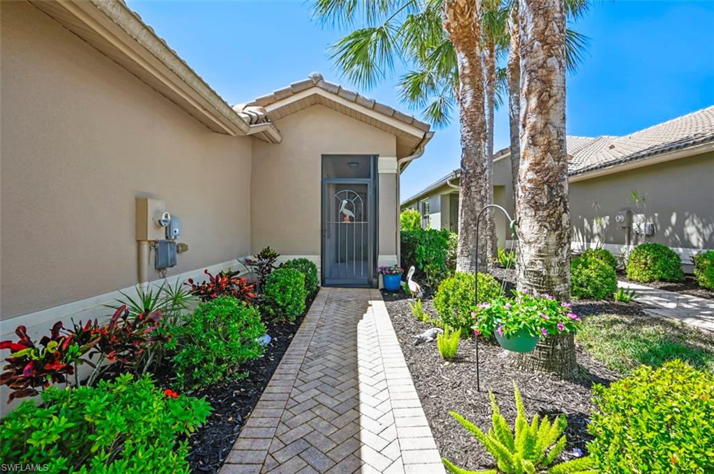 COME FIND YOUR HOME FOR THE HOLIDAYS AT THIS WEEKENDS OPEN HOUSES...Welcome to maintenance-free living in beautiful Bella Terra, where comfort, nature, and convenience all come together. This villa gives you a private, calming view of untouched greenery from the kitchen, living room, and especially the primary suite. It’s the kind of backdrop that reminds you why people move to Florida in the first place. Inside, the floor plan is smart and comfortable. There are 3 bedrooms and 2 full bathrooms, plus an attached garage. The third bedroom has double pocket doors and works perfectly as a flex room, home office, den, guest room, craft room, whatever your life calls for. The kitchen checks every box with granite countertops, raised-panel cabinetry, stainless steel appliances, and a cozy breakfast nook. Bathrooms are finished with the same elevated touches for a clean, cohesive look throughout the home. Step out back to the covered extended lanai and enjoy that gorgeous natural view — no noise, no neighbors behind you, just peace and privacy. It’s hard to beat. Bella Terra is one of the most loved gated communities in Estero, offering resort-style amenities, low HOA fees, and a true neighborhood feel. The community is pet-friendly, activity-rich, and perfectly located close to shopping, restaurants, FGCU, and the airport. If you’ve been searching for a place that feels like a single-family home but without the constant upkeep, this villa is a rare match. Homes with this setting don’t come along often. Come see it. Come feel it. And be ready to fall in love with that view.