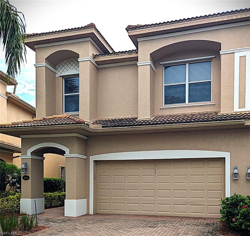Welcome home. This townhome in the beautiful Bella Terra community offers the lifestyle you're looking for. This bright and well-appointed 3-bedroom plus den townhome offers a comfortable living space and a peaceful lake view. The floorplan places all three bedrooms and the versatile den upstairs for privacy and quiet, while the main level features an open living area ideal for entertaining and day-to-day life. The large master suite includes a roomy walk-in closet and nice master bath with separate tub and shower, and two additional bedrooms share a full bath — plus a convenient half bath on the main floor for guests. The attached 2-car garage offers plenty of room for your toys. Relax on your lanai and enjoy calming water views, or visit the community’s amenity areas and enjoy the pool, fitness center, clubhouse, Tennis, pickleball and more. Located close to SW Florida’s finest conveniences: FGCU, shopping, dining, parks and RSW airport, this townhome blends low-maintenance living with the lifestyle you want and sellers who are ready to move.
