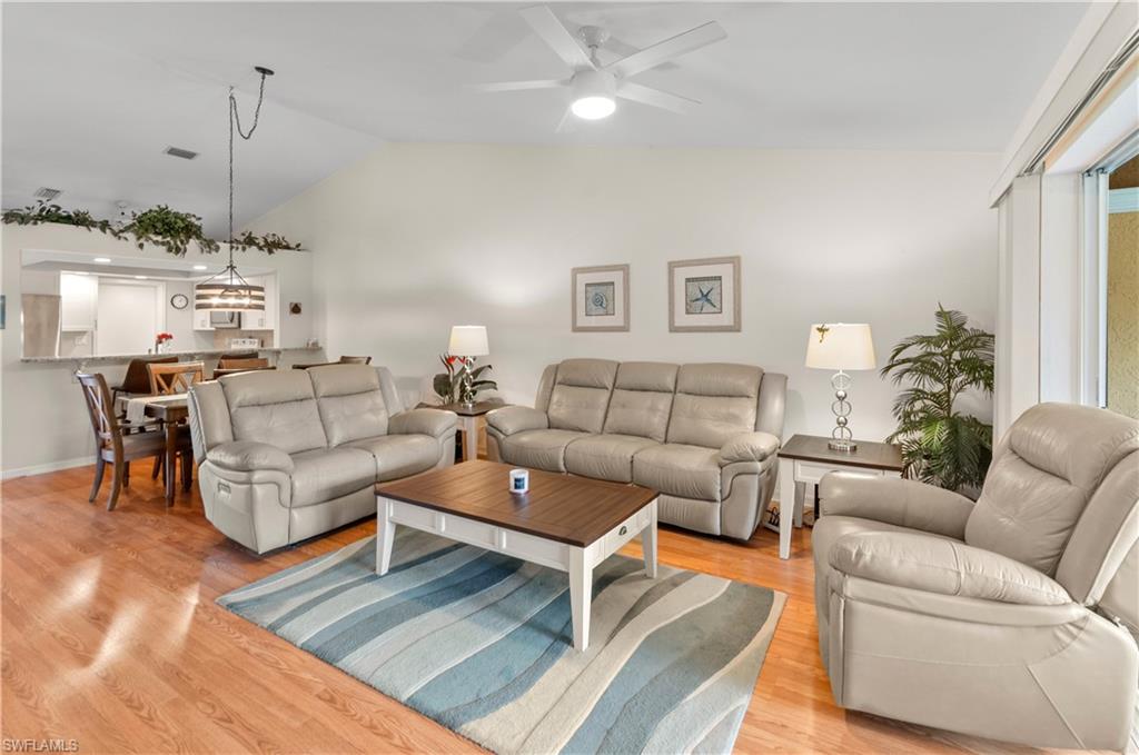 Turnkey 3BR 2 ½ Bath Home with Attached Garage This beautifully updated “Barbados” model Town Home, offers a spacious open floor plan with vaulted ceilings and is truly move-in ready. Every major update has already been completed, saving you time and expense. The updated kitchen features white cabinets, pull-out drawers, and granite countertops. Both bathrooms have been fully remodeled, featuring custom cabinetry and expansive tiled showers with glass enclosures. A standout feature of this home is the transformation of the lanai into an extension of the living space. By removing the original sliders, raising the lanai floor to match the living room, and installing luxury vinyl plank flooring throughout, the space now offers an airy and seamless area for relaxing and entertaining. With its north-facing orientation, you'll enjoy serene lake, and fountain views all day without direct sun glare. Hurricane shutters are unnecessary thanks to impact-resistant glass on all windows and exterior sliding doors. The home also includes a whole-house generator (with dedicated wiring) to ensure essential systems like the air conditioner and refrigerator remain functional during power outages. Additional highlights include: • Updated lighting fixtures throughout • Plantation shutters on all windows • Spacious walk-in closets • Epoxy-coated garage floor • Extensive garage storage with cabinets, a walk-up attic, and Skeet'er Beat'er screen door • Brick-paved double driveway and expansive rear patio Located in the vibrant community of Breckenridge, this home offers an active lifestyle with an impressive range of amenities, including: 18-hole par 3 golf course Five swimming pools Eight tennis courts Three pickleball courts Six shuffleboard courts Three bocce courts. The newly renovated clubhouse features an exercise room, business office, library, catering kitchen, and a spacious community room for social events. Additionally, a storage lot for trailers, RVs, and boats is available on a first-come basis for an additional fee. Perfectly situated minutes from shopping, dining, Southwest Florida International Airport, and the breathtaking Gulf Coast beaches, this home offers the best of resort-style living in a welcoming community. Don’t miss this rare opportunity—schedule your showing today!-