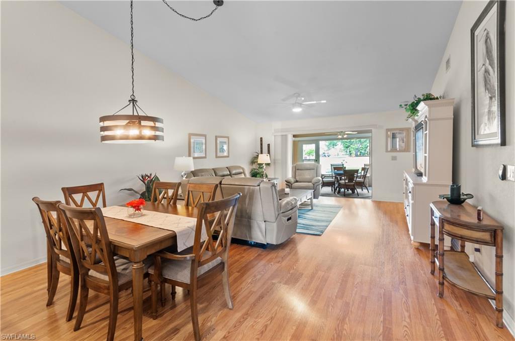 Rarely Available Aruba Model Villa, with Stunning Lake Views – Turnkey & Move-In Ready! Discover the charm of this highly sought-after 2-bedroom, 2-bath villa, featuring an attached garage and picturesque views of Bass Lake. This rarely available Aruba floorplan offers the convenience of single level living with vaulted ceilings and modern upgrades, creating a serene and stylish retreat. Step inside to find tasteful, recently updated furnishings and a thoughtfully designed layout. The kitchen boasts granite countertops and newer stainless-steel appliances, while laminate and tile flooring flow throughout the home. Plantation shutters add an elegant touch to the windows, enhancing both privacy and charm. Enjoy seamless indoor-outdoor living with an enclosed lanai, featuring sliding glass windows and screens, perfect for taking in the tranquil lake views. A paved double driveway leads to the attached garage, which includes a garage screen and automatic door opener for added convenience. Located in the vibrant community of Breckenridge, this home offers an active lifestyle with an impressive range of amenities, including: 18-hole par 3 golf course Five swimming pools Eight tennis courts Three pickleball courts Six shuffleboard courts Three bocce courts The newly renovated clubhouse features an exercise room, business office, library, catering kitchen, and a spacious community room for social events. Additionally, a storage lot for trailers, RVs, and boats is available on a first-come basis for an additional fee. Perfectly situated minutes from shopping, dining, Southwest Florida International Airport, and the breathtaking Gulf Coast beaches, this home offers the best of resort-style living in a welcoming community. Don’t miss this rare opportunity—schedule your showing today!