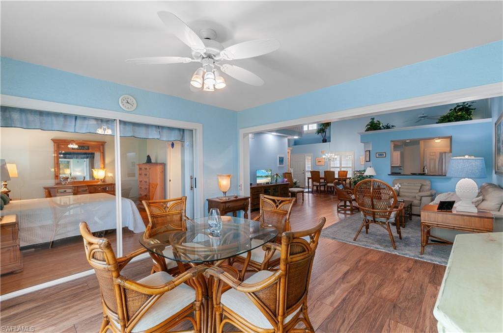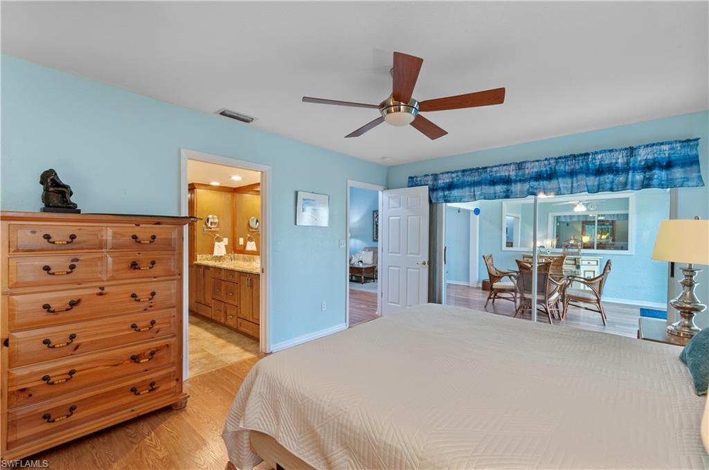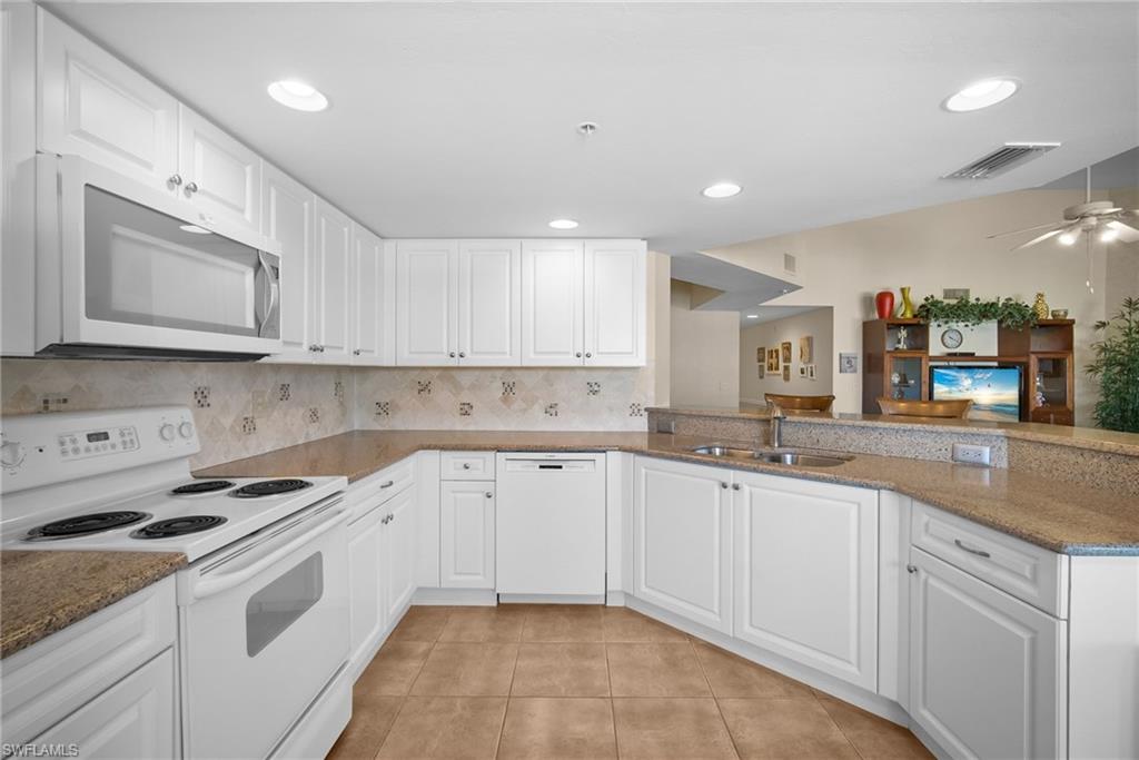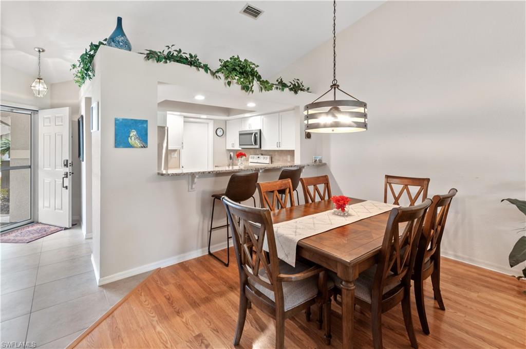Aruba Model. There are only 14 of these one floor level end units with 2 bedrooms, 2 bathrooms and a garage, in the Breckenridge community. People often wait multiple years with hopes of getting this floorplan. The flooring is large tile on a diagonal throughout. The kitchen has shaker cabinets, stainless steel appliances and granite counter tops. The bathrooms are completely updated and the guest has a walk in jacuzzi tub. The lanai, with it’s heavy sliding doors and outdoor patio, is private and overlooks a small lake. The large side yard provides added privacy. Pavers on the extra wide driveway and patio compliment the whole outside appearance. Breckenridge is a friendly and socially active community with bundled golf has no cart fees. Among the amenities are 5 pools, 8 Har Tru tennis courts, pickle ball, bocce, shuffle board and many other community activities. Estero is in the heart of Southwest Florida, only minutes from the airport, beaches, 3 huge shopping malls, restaurants galore, public library and state park. Short drive to Naples or Fort Myers. 5G WiFi is included. Please be sure to check out the MATTERPORT tour. To do so, click on Virtual Tour, then the 3D Tour. After that opens, click on the little man walking on the bottom left corner. You will then be able to every room in the house.