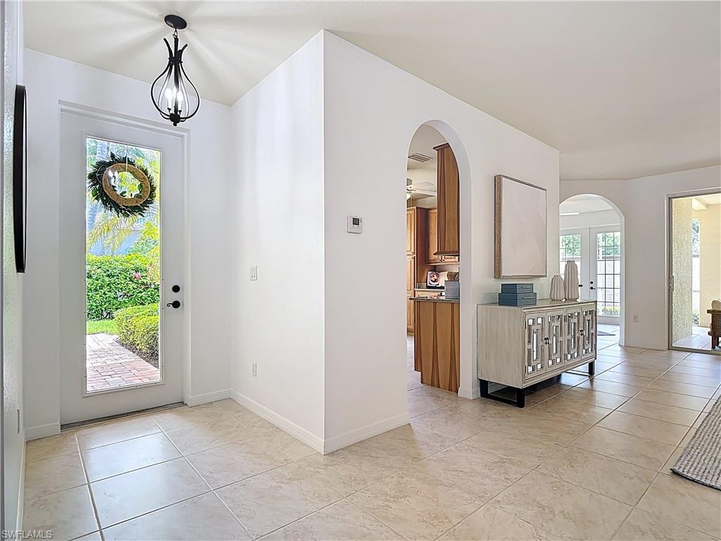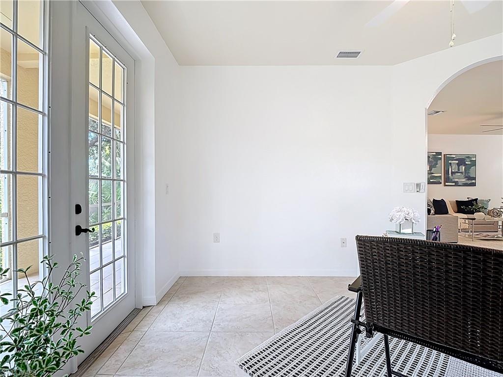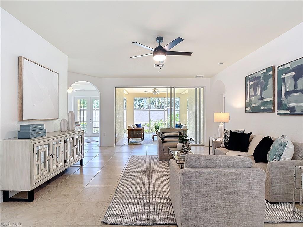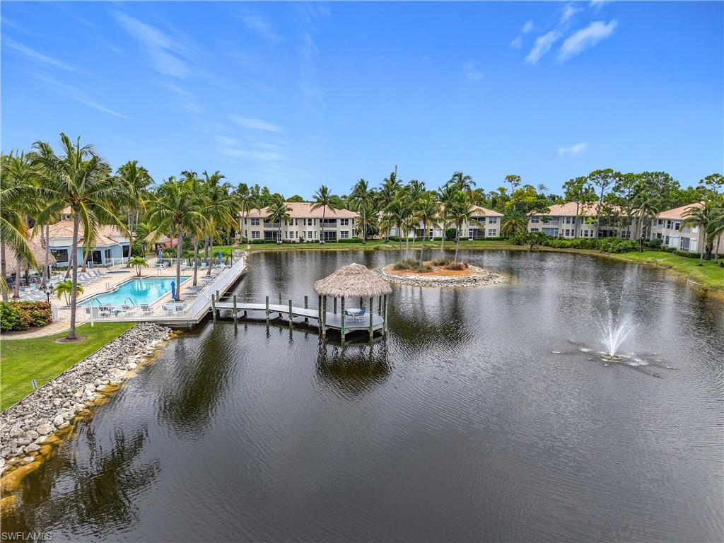 Discover the perfect blend of comfort, style, and convenience in this 2-bedroom plus den, 2.5-bath partially furnished coach home, complete with a spacious 2-car attached garage.. Soaring vaulted ceilings and an expansive lanai with tranquil lake views create an airy, inviting atmosphere that’s ideal for both relaxing and entertaining. The bright, open layout flows seamlessly into the well-appointed kitchen and dining spaces, while the private den offers flexibility for a home office or guest room. The primary bedroom is a comfortable retreat featuring French doors, a private en suite bath, and a serene view — perfect for unwinding at the end of the day. A duo of walk in closets in the space are available to use as additional storage, or as a built in elevator for future use if needed. Enjoy low-maintenance living in a gated community with resort-style amenities including a sparkling pool, fitness center, tennis and pickle ball courts, and a fishing pier. NEW ROOFS were installed in 2024, no assessments to the new buyer. Located just steps from a vibrant open-air shopping center with dining and entertainment, and only 10 minutes from Gulf beaches, world class shopping, and endless recreational activities. Whether you’re looking for a year-round residence or a vacation-ready escape, this home delivers the ultimate Florida lifestyle. Sellers are including a 1 year home warranty with an accepted offer - walkthrough video is available and included within the listing. Agents, please see comments for more details.