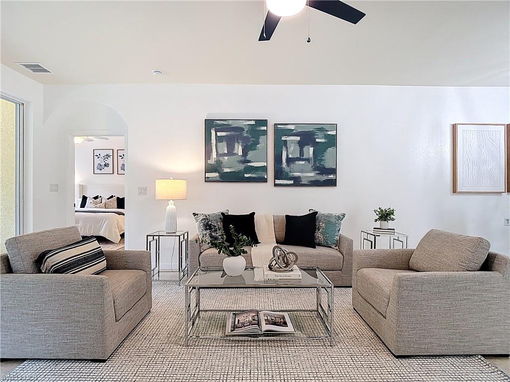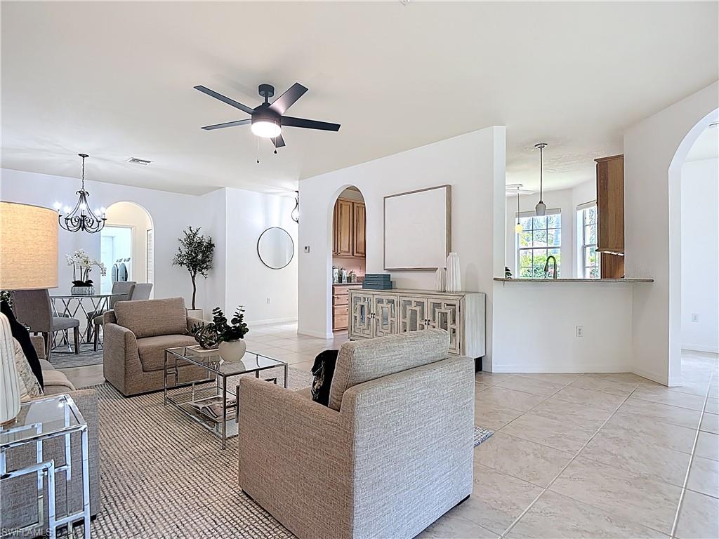 Welcome to Coconut Shores! This beautifully maintained 3+den, 3 bathroom home with a 2 car garage offers 2,045 square feet of comfortable living in one of Estero’s most desirable gated communities. The open concept floor plan features spacious living and dining areas filled with natural light, perfect for both relaxing and entertaining. The den provides flexible space for a home office or guest room. Enjoy the Florida lifestyle from your expansive screened lanai or take advantage of the community amenities including a resort style pool, fitness center, and tennis courts. Location, location, location! Coconut Shores is ideally situated just minutes from Coconut Point Mall, offering premier shopping, dining, and entertainment options. You’re also a short drive from the white sandy beaches of Bonita Springs and Barefoot Beach, making this the perfect place to enjoy everything Southwest Florida has to offer.