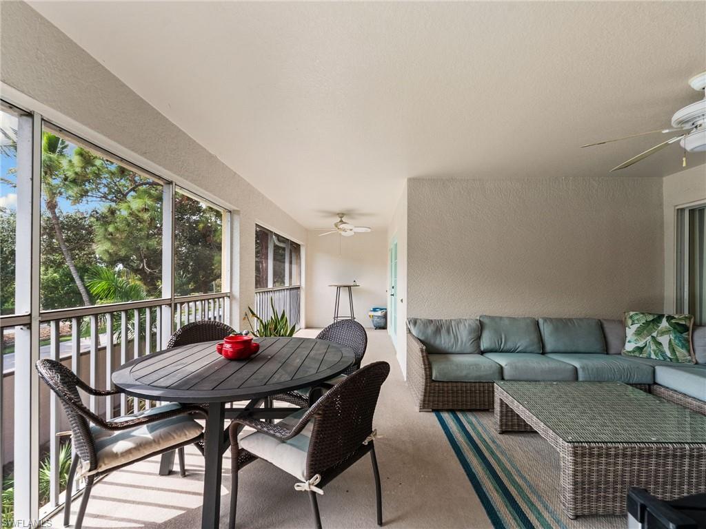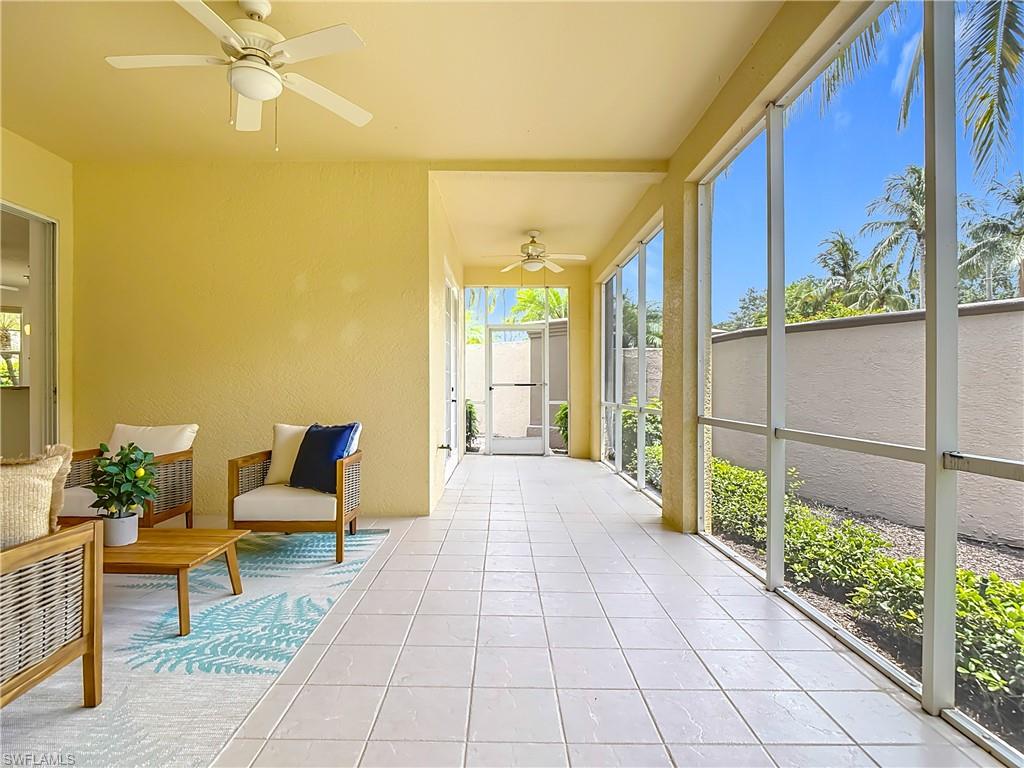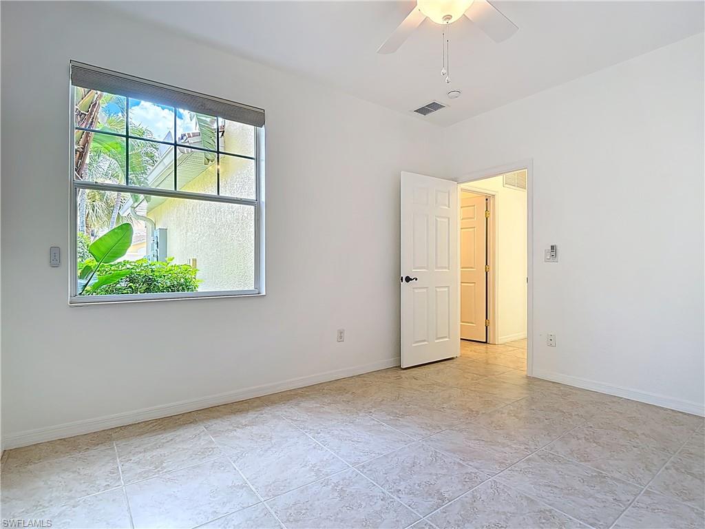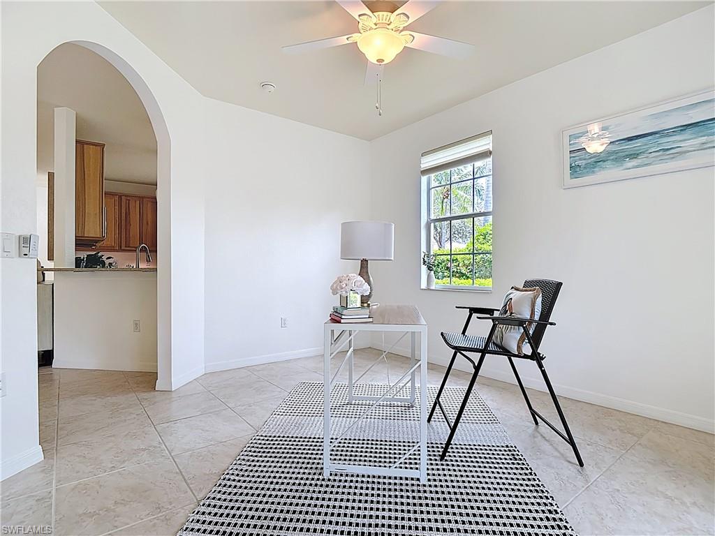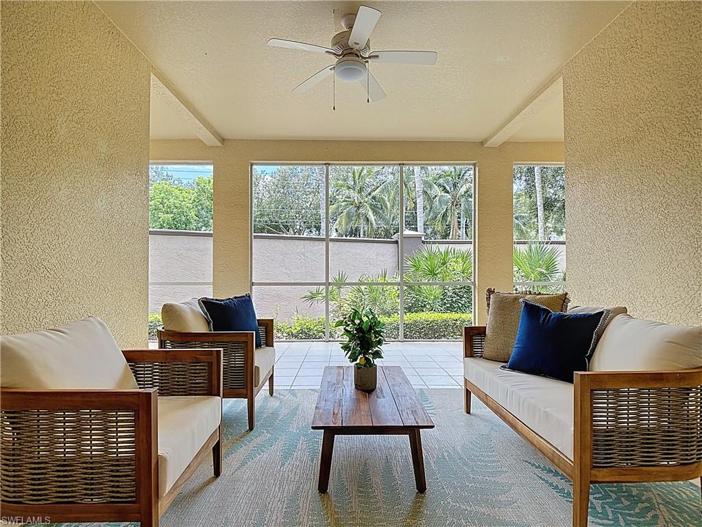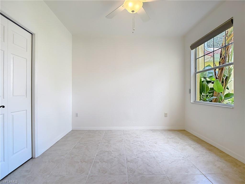 IMACULATELY MAINTAINED! Beautiful 2 bed + Den/ 2 baths first floor condo located in the desireable Coconut Shores Community. Eagerly looking forward to working with you and your buyer agent. This spacious home features a split floor plan and has been freshly painted throughout including the double garage and epoxy-coated garage floor. The kitchen is equipped with custom cabinetry and stainless steel appliances (2017) along with a new washer, Dryer and water heater installed same year. Additional upgrades include electrical blinds in the kitchen and bedrooms, a new livingroom ceiling fan, new air blower and thermostat. A new tile roof was installed in 2025, all assessments have been paid by the seller. The driveway, lanai and entry way have all been recently pressured washed making this home completely move-in ready. The home is located in a non-flood zone, so no flood insurance is required. Enjoy resort-style amenities including a community pool & spa, tennis, pickleball courts, library, exercise room, fishing pier and near the White Sandy beaches. Unbeatable location!! Walking distance to Coconut point mall, minutes from Miromar outlets, Gulf Coast Town Center and RSW international airport and SWF beautiful beaches. This is truly the best value in Coconut Shores!! ** Project My Home approved listing, special financing available, contact agent for details**