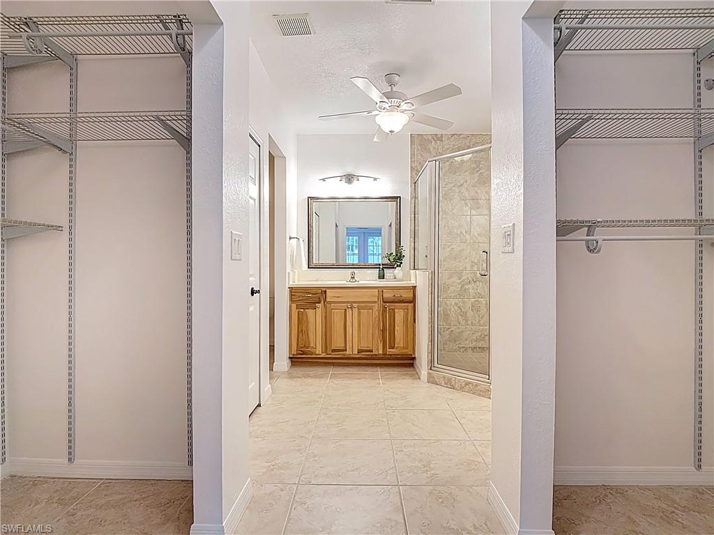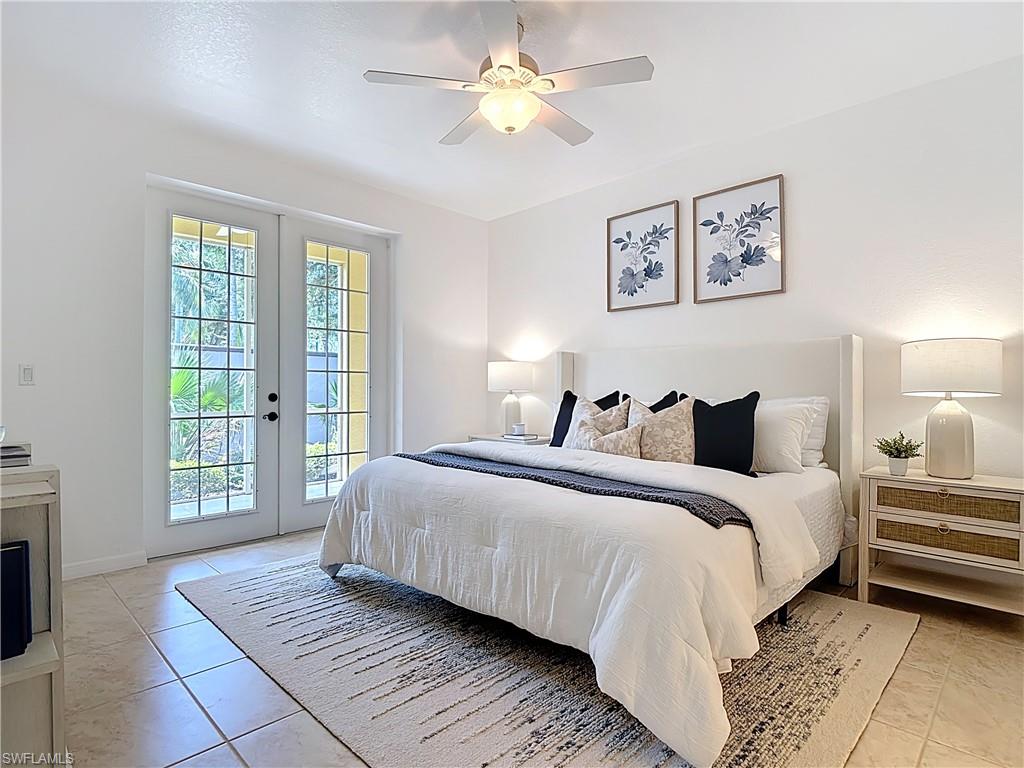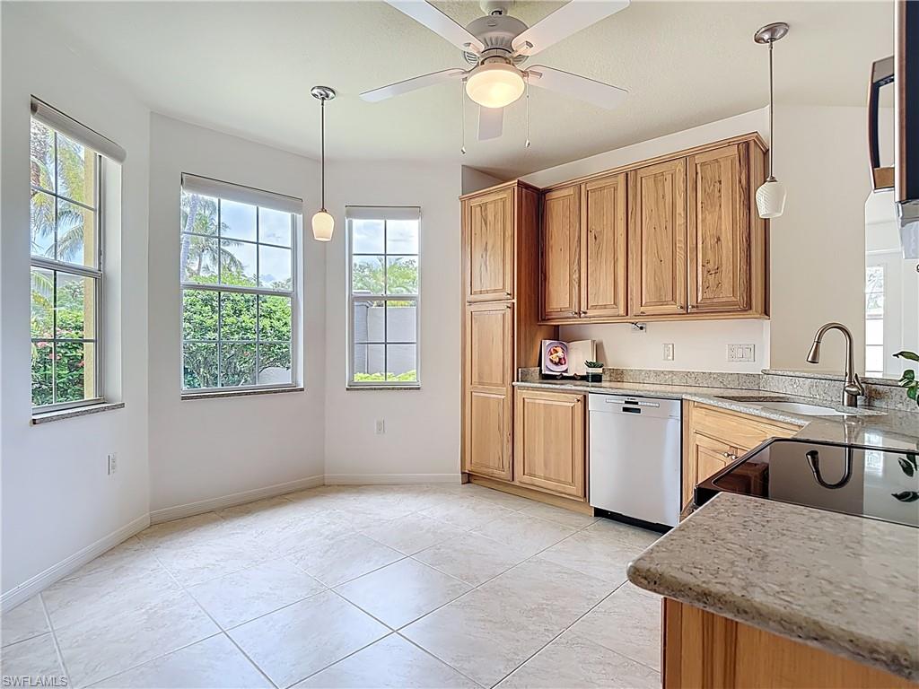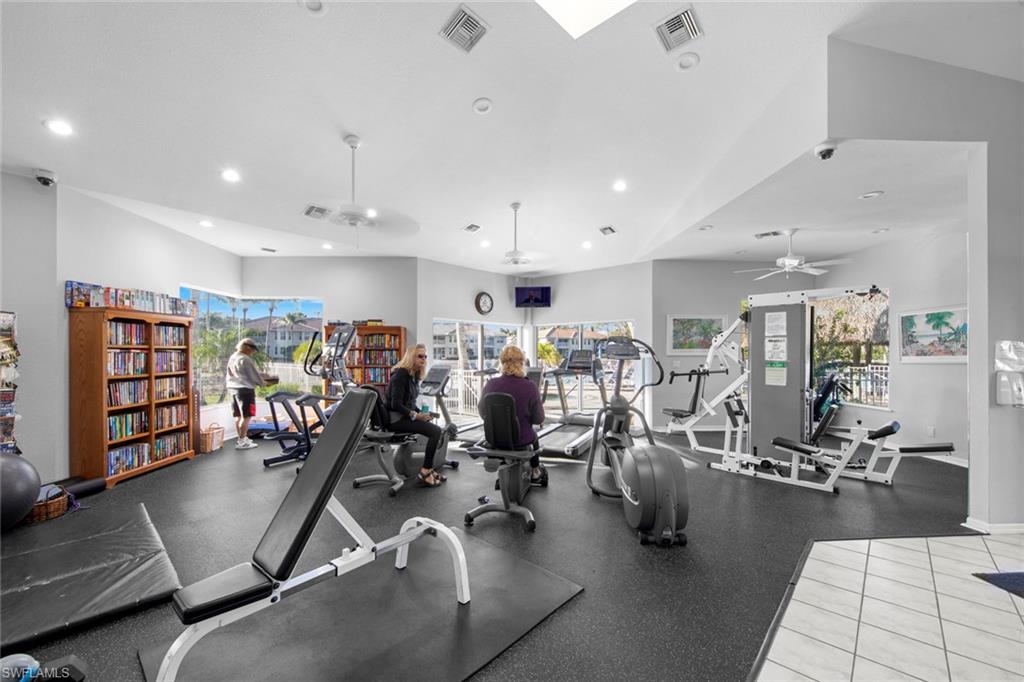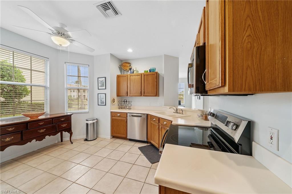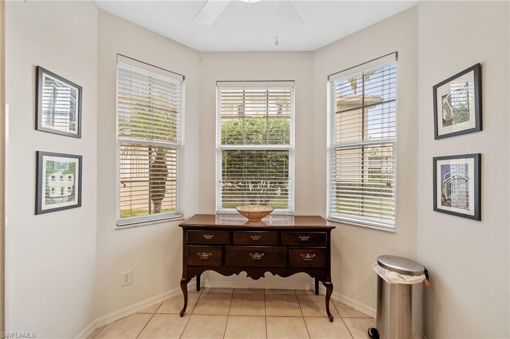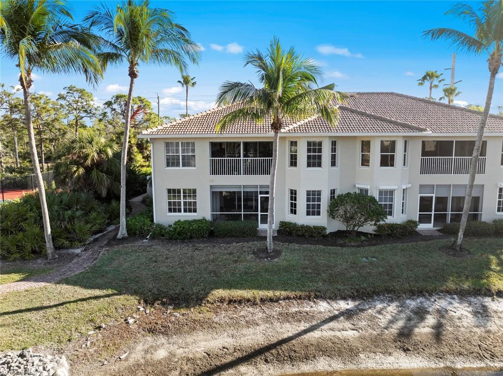 IMACULATELY MAINTAINED! Beautiful 2 bed + Den/ 2 baths first floor condo located in the desireable Coconut Shores Community. Eagerly looking forward to working with you and your buyer agent. This spacious home features a split floor plan and has been freshly painted throughout including the double garage and epoxy-coated garage floor. The kitchen is equipped with custom cabinetry and stainless steel appliances (2017) along with a new washer, Dryer and water heater installed same year. Additional upgrades include electrical blinds in the kitchen and bedrooms, a new livingroom ceiling fan, new air blower and thermostat. A new tile roof was installed in 2025, all assessments have been paid by the seller. The driveway, lanai and entry way have all been recently pressured washed making this home completely move-in ready. The home is located in a non-flood zone, so no flood insurance is required. Enjoy resort-style amenities including a community pool & spa, tennis, pickleball courts, library, exercise room, fishing pier and near the White Sandy beaches. Unbeatable location!! Walking distance to Coconut point mall, minutes from Miromar outlets, Gulf Coast Town Center and RSW international airport and SWF beautiful beaches. This is truly the best value in Coconut Shores!! ** Project My Home approved listing, special financing available, contact agent for details**