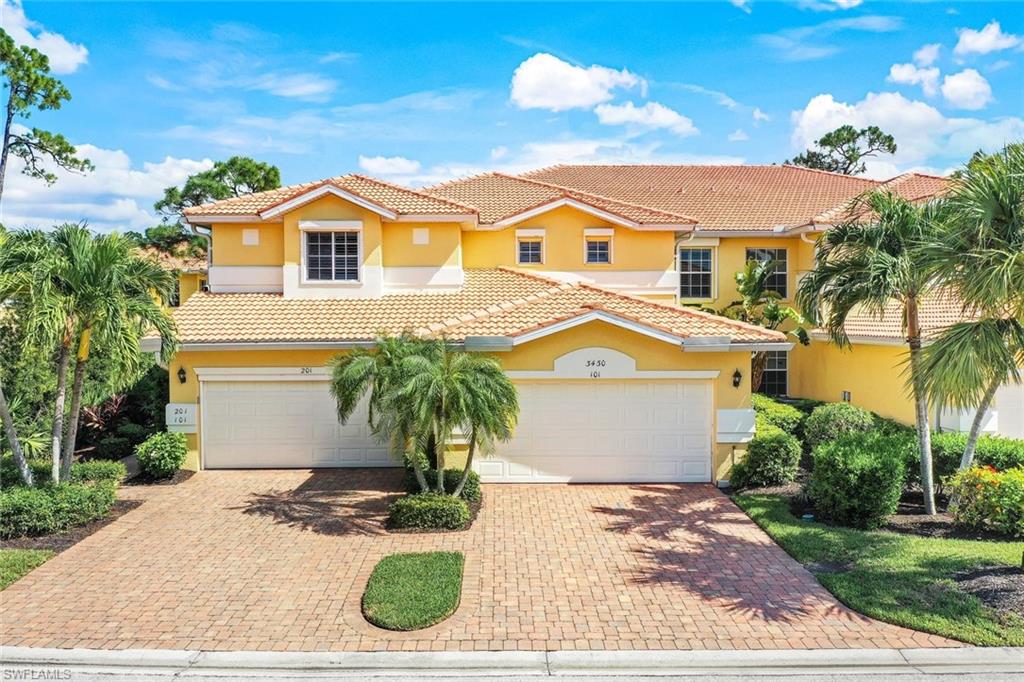 This charming coach home is in pristine, move-in ready condition and offers an exceptional opportunity to enjoy comfortable living in one of the most sought-after locations. The kitchen is a standout, with sleek stainless steel appliances. Immaculately maintained, this condo is ready for you to move in and start enjoying life immediately. It is ideally positioned overlooking one of the picturesque ponds in the community, adding to the sense of tranquility. For those who love to enjoy the fresh Gulf breeze, the garage doors are equipped with an electronically operated screen, offering the perfect way to embrace the outdoors. Coconut Shores is an active, vibrant community with plenty of opportunities to socialize with neighbors and enjoy the best of Southwest Florida living. The location is unbeatable, with Coconut Point nearby for shopping, dining, and entertainment. Plus, you're just minutes away from the airport and only a short drive to Naples. And if you love the beach, you’re in luck—the community is just 2.5 miles from the shore.