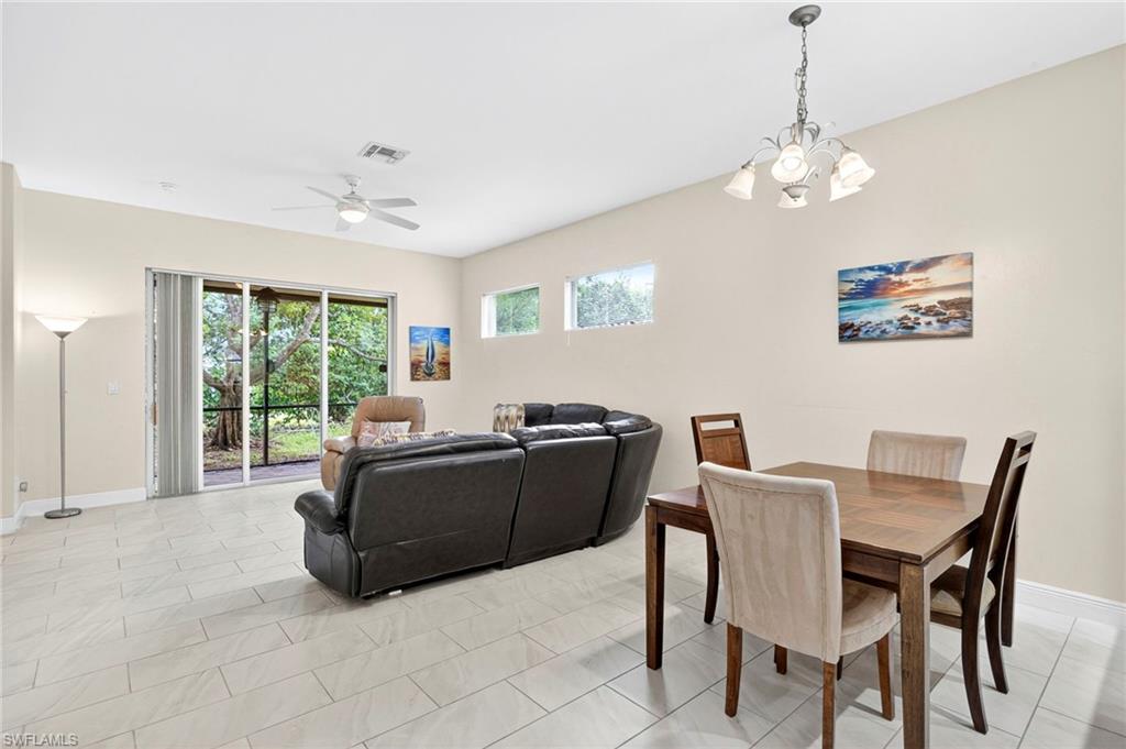 Welcome to Copper Oaks, a highly desirable gated community in the heart of Estero, where convenience, comfort, and value come together. This charming single-family home offers 3 bedrooms, 2 bathrooms, a spacious living-dining combo, and an attached two-car garage, making it an ideal choice for full-time residents, seasonal owners, or investors. Freshly updated, this home feels clean, bright, and move-in ready. The open concept main living area provides plenty of room for relaxing or entertaining, while large windows bring in abundant natural light. The kitchen flows seamlessly into the dining and living spaces, creating an inviting atmosphere for gatherings of any size. Step outside to the screened lanai, a perfect spot for enjoying morning coffee, peaceful evenings, or the beautiful Florida weather year-round. The split-bedroom floorplan offers privacy for the primary suite, with two additional guest rooms providing flexibility for family, visitors, or a home office. An attached two-car garage adds storage and convenience, rounding out the practical features of this well designed home. Located in one of Estero’s most sought-after neighborhoods, Copper Oaks places you just minutes from everything Southwest Florida has to offer. Enjoy quick access to I-75, major shopping destinations such as Miromar Outlets, Gulf Coast Town Center, and Coconut Point Mall, as well as a wide array of restaurants, entertainment options, and outdoor activities. The home is also close to Florida Gulf Coast University and Southwest Florida International Airport (RSW), making travel and commuting effortless. Discover value, convenience, and the perfect Estero lifestyle at 10140 N Golden Elm Drive. It's a fantastic opportunity to make Copper Oaks your next home.