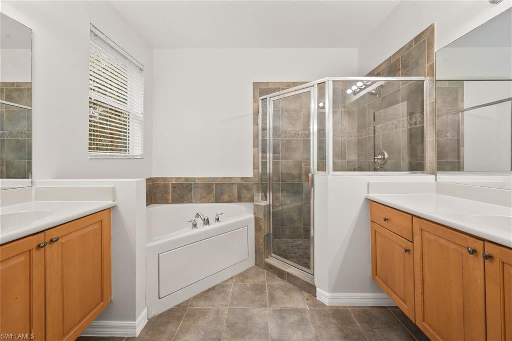 Brand New Interior Paint, Water Heater & more | Welcome to spacious luxury living in the gated Copper Oaks community of Estero, FL. This stunning Desert Rose II by Stellar Homes boasts over 3,200 sq ft of meticulously designed space, 5 Bedrooms, 4 Full Bathrooms, Den/Flex space, 2-car garage & extra-wide paver driveway, perfect for the XL household. The oversized Primary Suite features tray ceilings with a vast walk-in closet, a spa-like ensuite with dual sinks, a soaking tub, and a walk-in shower. Additional bedrooms include a Secondary Master suite, Jack & Jill guest bathrooms & ample storage space. The open-concept layout showcases tile and luxury vinyl plank flooring, soaring ceilings, and a modern kitchen with granite countertops, stainless appliances, and a walk-in pantry. The screened lanai offers a private preserve view and backyard space for recreation. Full roof replacement in 2022. Copper Oaks amenities include a clubhouse, two community pools, a fitness center, basketball court, playground, and trails, all with low HOA fees covering lawn care & cable/internet. Exceptionally located minutes from Miromar Outlets, Coconut Point Mall, FGCU, Three Oaks Elementary & Middle Schools, RSW Airport, and Southwest Florida beaches, this home offers truly unparalleled access to shopping, dining, and entertainment. Schedule your private in-person tour for this home today!