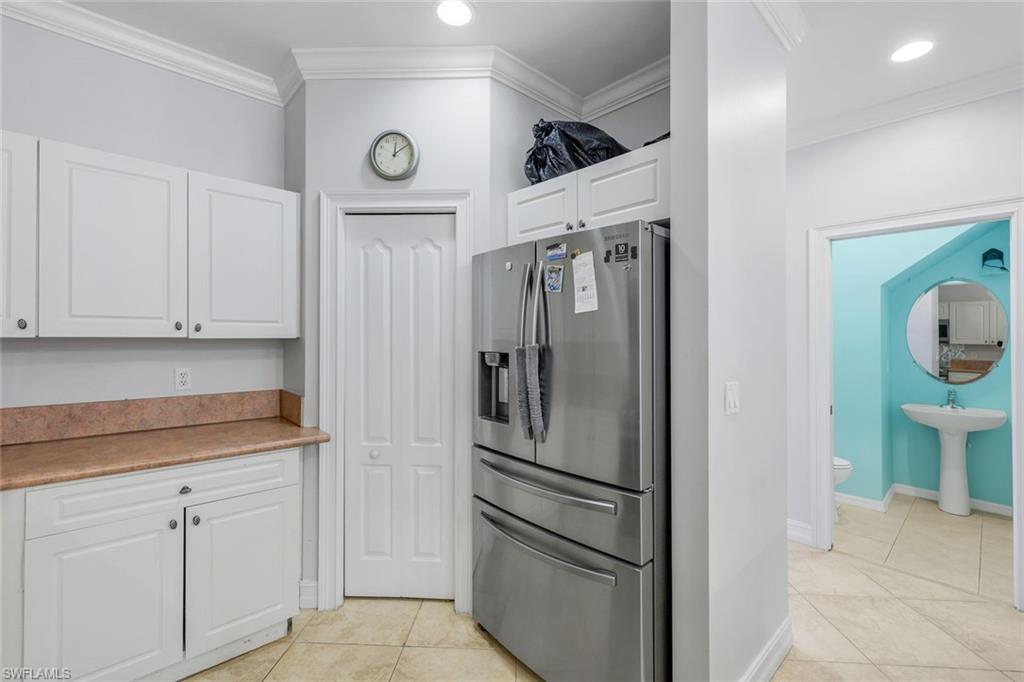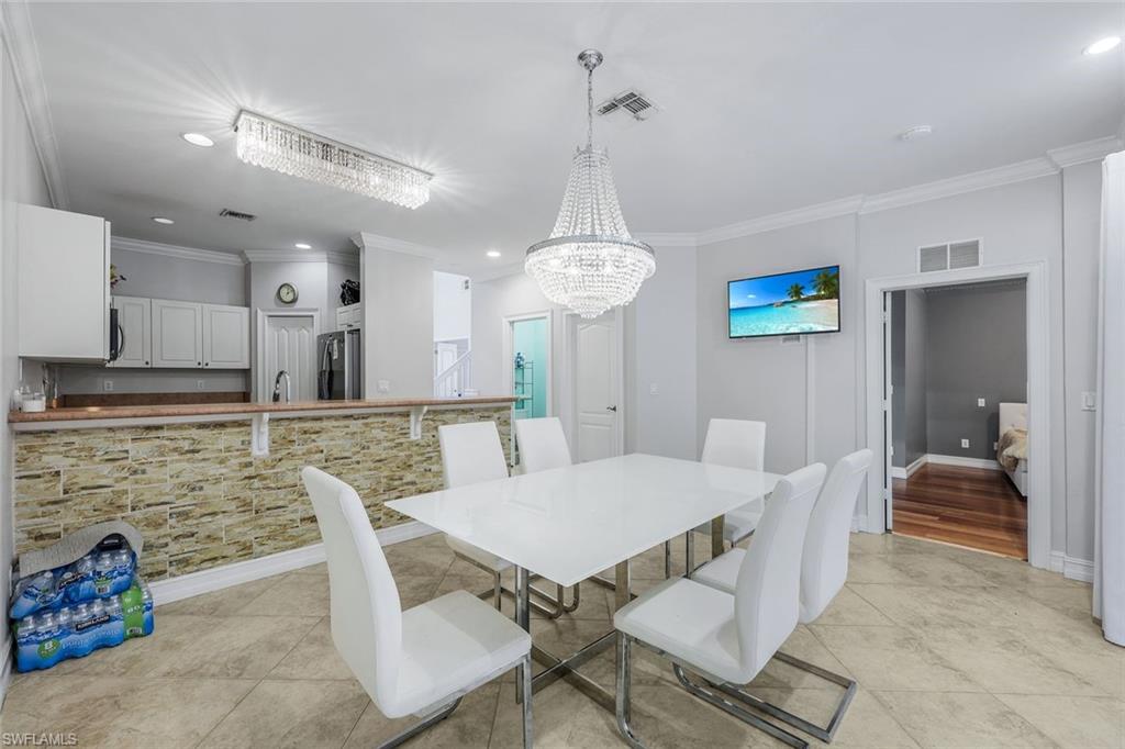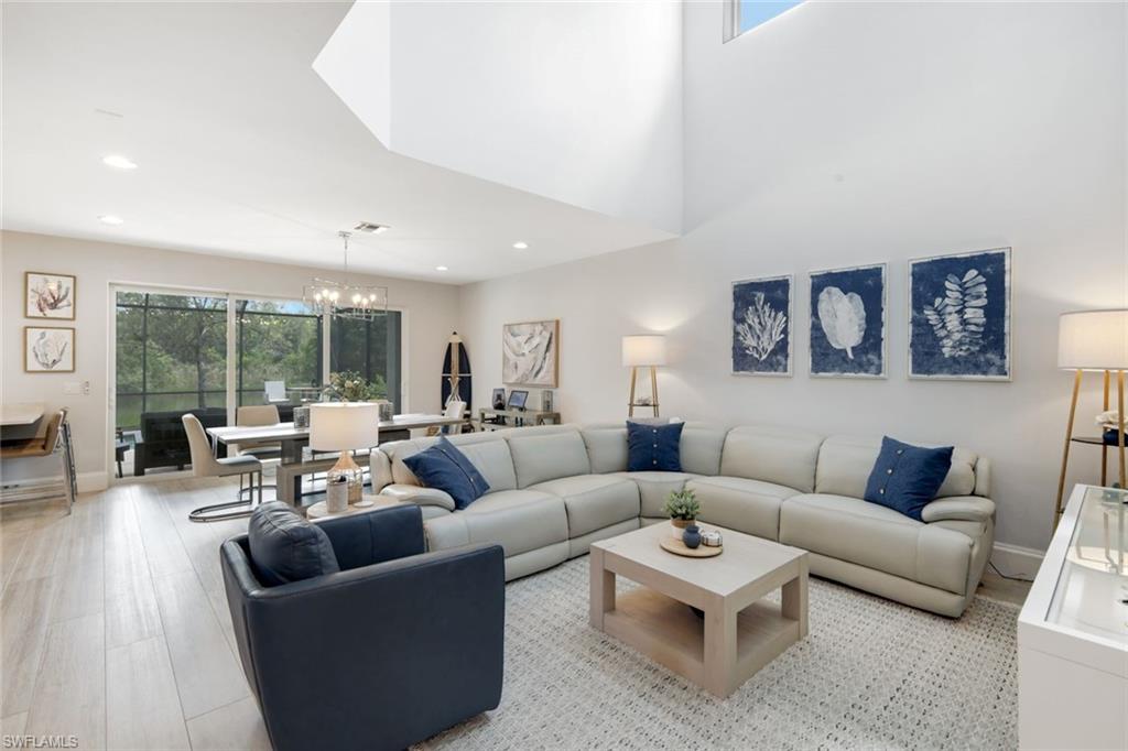 Welcome to this 6-bedroom 4 bath masterpiece in the heart of Estero where every detail has been thoughtfully curated and no upgrade spared. Open the door to be greeted by 32in luxury porcelain tile thought the first floor- seamless contemporary entrance. Remodeled kitchen and bathrooms feature new soft-close cabinetry, and Cristallo Quartzite countertops with decorative LED lighting glowing from within, illuminating workspaces and setting the mood for entertaining and holidays. ‘Taj Mahal’ quartz in the kitchen with matching backsplash. Solid Onyx vessel sinks in the bathroom complimented by Onyx shower tile accents. Every room ignites curiosity with its own story: mirrors from Peru, decorative wall accents from India, tile and quartz from Brazil. You can’t build this home twice. Natural light pours in from every window welcomed by 25ft ceilings, southern exposure, unobstructed sunsets over a center lake view. Roof replaced in 2019, this home is as well-maintained as it is beautiful. Plenty of space for a home gym, office, playroom, nursery, guest bedroom, let your imagination run and get creative. On the second floor there are 3 full bathrooms including 2 jack and jill bathrooms. Perfect for those early mornings before school, everyone has their own space for an efficient and peaceful start of the day. Most new homes this size only have 2 full bathrooms on the second floor (one being the master bath) – this is a very rare feature to have 2 jack and jill bathrooms + Master bath. First floor has a generous sized bedroom and full bathroom. The Location is also ideal, on a quiet street - less than 10 minutes to the beach. Only 4 miles to Coconut Point Mall - loaded with shopping and dining options, 2 miles to Miramar Outlets & Germain arena, and in between you have Top Rated Schools and Universities, numerous restaurants, Parks, Golf Courses, RSW International Airport, and quick access to highway I-75.