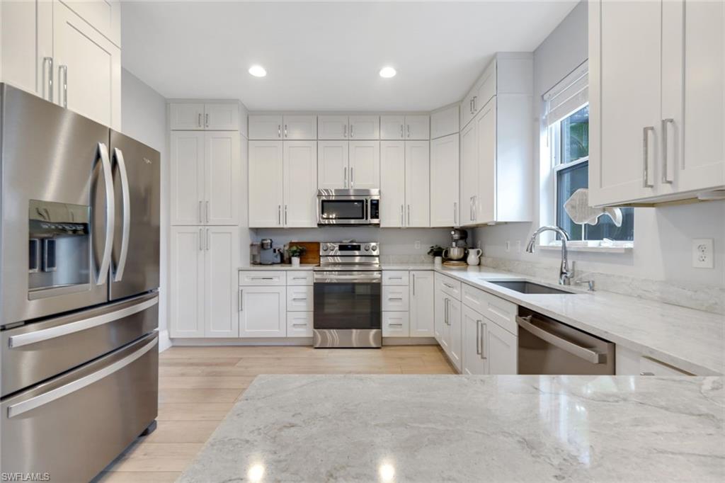 Beautifully Renovated Lakefront Pool Home! This spacious 4-bedroom plus den/formal dining, 2.5-bathroom single-family home offers the perfect blend of comfort, style, and convenience—all with a stunning private pool overlooking a serene lake view. Located in a desirable gated Estero community, this two-story residence has been thoughtfully updated so you can move right in and start enjoying the Florida lifestyle. Updates and upgrades galore include: 2022 new appliances, new kitchen cabinets, and new light fixtures and blinds in the kitchen and bar area; 2023 new carpet, added cabinets and wash sink in the laundry room; 2024 new roof and gutters, new pool pump, widened driveway with new pavers, epoxy garage floor, Ecobee smart thermostat, custom bar under the stairs, upgraded pantry, and added pantry closet; 2025 impact windows throughout, new air conditioner, customized master closet, upgraded door hardware throughout, and an additional new pool pump. These are only some of the many updates this home has to offer—with more to list! Enjoy resort-style living with access to basketball, BBQ and picnic areas, clubhouse, community park, community pool, exercise room, play area, sidewalks, and tennis courts. Perfectly located near several large shopping malls, an abundance of restaurants, RSW Airport, Florida Gulf Coast University, and JetBlue Park, plus just a short drive from some of Southwest Florida’s most beautiful white sugar sand beaches. With its private pool, lake views, extensive updates, and unbeatable amenities, this home offers exceptional value in today’s market. Furnishings are negotiable.