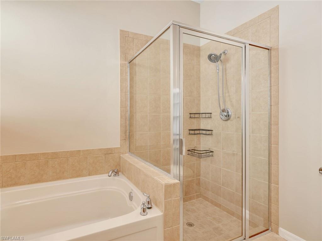 Beautiful two story three-bedroom, two and a half bath single-family home with loft in Copper Oaks is centrally located in Estero Florida. Home freshly painted inside and out. New tile roof in 2021, new AC and water heater in 2019. Meticulously kept and maintained, this home has soaring volume ceilings, with a bright and fresh floor plan featuring a first-floor Master Bedroom. The Master bath has dual sinks, a soaker tub and walk-in shower. Travertine tile throughout lower level. There are two bedrooms, full bath and a loft upstairs that can be used as an office or play area. The kitchen features granite countertops and new stainless steel appliances. Trees offer complete privacy for the screened, pavered lanai. Direcly across the street, you will find a grassy commons area to enjoy. Gated Community includes lawn care, 2 pools, workout room, basketball court, playgrounds and grills. This property is ideally located, with easy access to Miromar Outlets, Hertz Arena, FGCU, and only 15 minutes to RSW Airport. Just a short drive to the Gulf’s white sandy beaches, as well as numerous shopping and dining options. You can drive Imperial/Livingston Road down to Naples where you can enjoy even more upscale shopping and dining.
