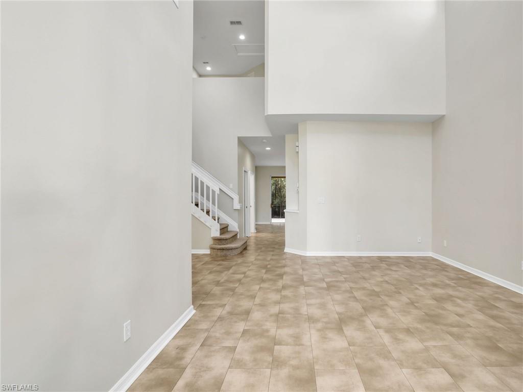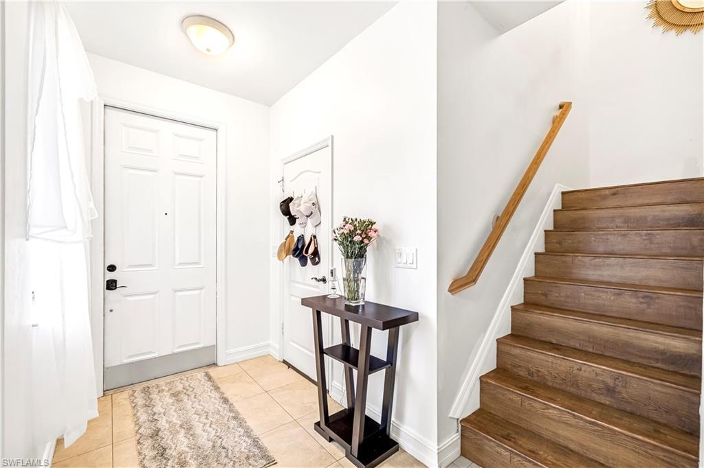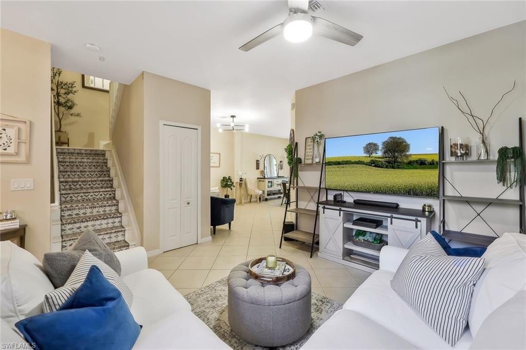 Immaculate Copper Oaks Townhome in the Heart of Estero Welcome to this beautifully maintained 3-bedroom, 2.5-bathroom townhome located in the highly sought-after Copper Oaks community. Featuring an open-concept layout and a fully tiled ground floor, this home offers a perfect blend of comfort, functionality, and style. Step inside to a spacious living area that seamlessly flows into the family room and dining space—ideal for both everyday living and entertaining. The well-appointed kitchen boasts abundant counter space, ample cabinetry for storage, stainless steel appliances, and an over-sink window framing serene lake views. A convenient powder room and a separate laundry room complete the downstairs living space. Upstairs, you'll find all three bedrooms and two full bathrooms. The primary suite impresses with a tray ceiling, generous walk-in closet, and a private en-suite bathroom. The master bath features elegant tile throughout, dual vanities, a soaking tub, and a glass-enclosed walk-in shower. Two additional sizable bedrooms offer ample closet space and share a full hallway bathroom with a single vanity and a tub/shower combo. Enjoy peaceful lake views from the extended screened lanai—perfect for relaxing or entertaining outdoors in the shade. Additional features include a single-car attached garage and a brick paver driveway with space for multiple vehicles. This home combines style, space, and a prime location close to shopping, dining, FGCU, and Southwest Florida beaches—an ideal opportunity for full-time residents, snowbirds, or investors. Copper Oaks offers excellent amenities including two clubhouses with heated pools, a basketball court, playground, and secure gated entry—all with very low monthly HOA fees.