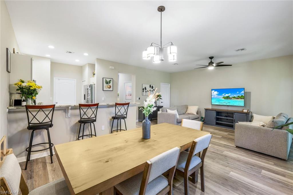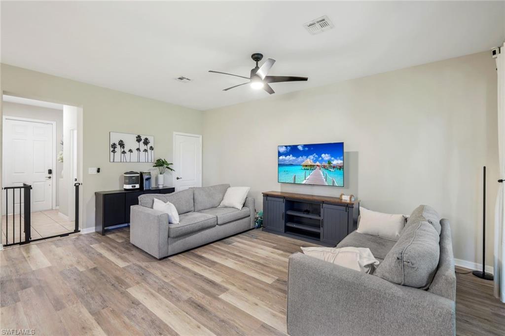 BEAUTIFUL move-in ready townhome in the heart of Estero. This 3 bedroom 2.5 bathroom home offers the perfect split and open floor plan with an extended lanai and panoramic screen (2024) overlooking the lake and landscaping. Upgrades include NEW HVAC, new flooring, updating kitchen and appliances, paint, water heater, and more. Copper Oaks is a gated community centrally located in Estero and minutes to I-75, FGCU, RSW International Airport, award winning beaches, and more. Copper oaks amenities include two clubhouses with heated pools, basketball court, playground, and gated front entrance. LOW HOA of only $295/month.