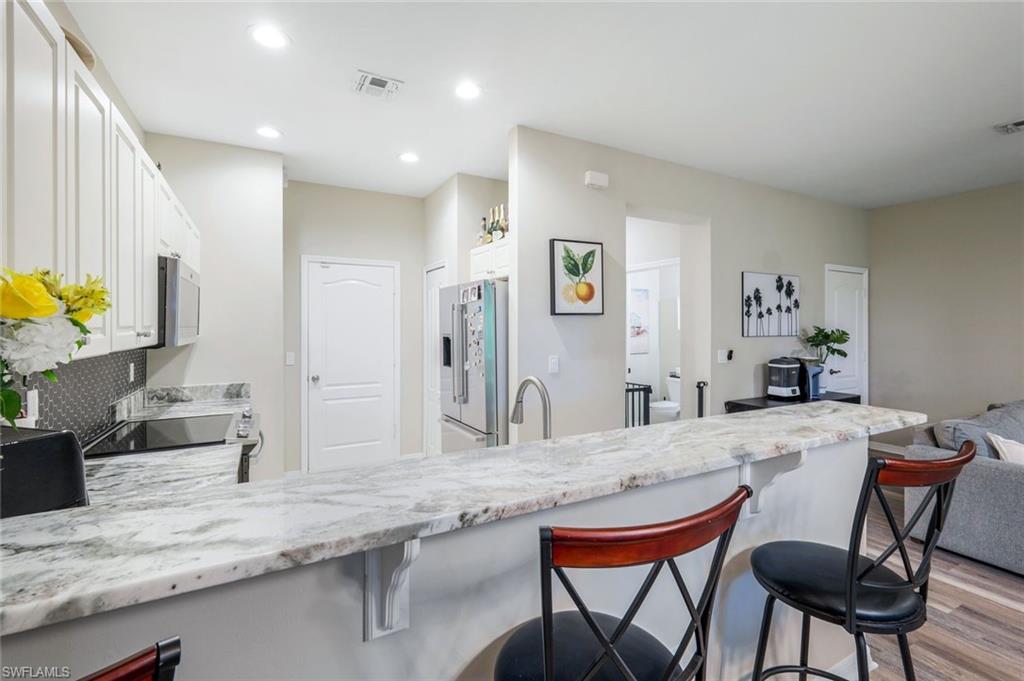 Discover this beautifully upgraded townhome in Copper Oaks, Estero, offering comfort, style, and convenience. This well-maintained home features numerous recent enhancements include a new extended driveway (2024), electric panel with surge protection and generator outlet (2023), water heater (2024), and A/C system (2020). The open-concept main level features a spacious kitchen with a breakfast bar that flows into the dining and living areas, plus a convenient half bath—ideal for entertaining. Upstairs offers three generous bedrooms, including a primary suite with a newly remodeled standing shower (2023) and glass door (2024). Additional updates include luxury vinyl flooring, newer appliances (2022), washer and dryer (2024), updated fixtures throughout, fire alarms (2023), custom nursery closet, Ring security system, manicured landscaping, and a new garage door opener (2025). Enjoy low HOA fees and resort-style amenities including two heated pools, fitness center, playground, basketball courts, virtual guard gate, and high-speed fiber internet and cable. Located near FGCU, Gulf Coast Town Center, Coconut Point, and Southwest Florida International Airport, this home blends modern living with a prime location. This property is a MUST SEE & PRICED TO SELL!!