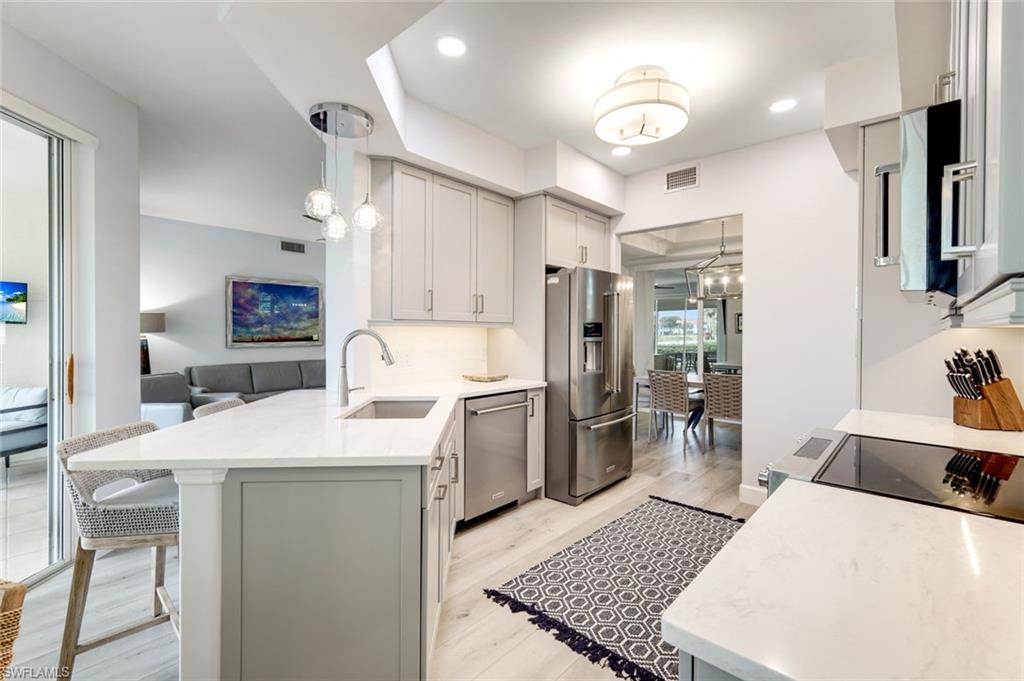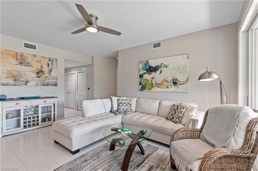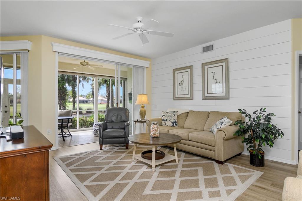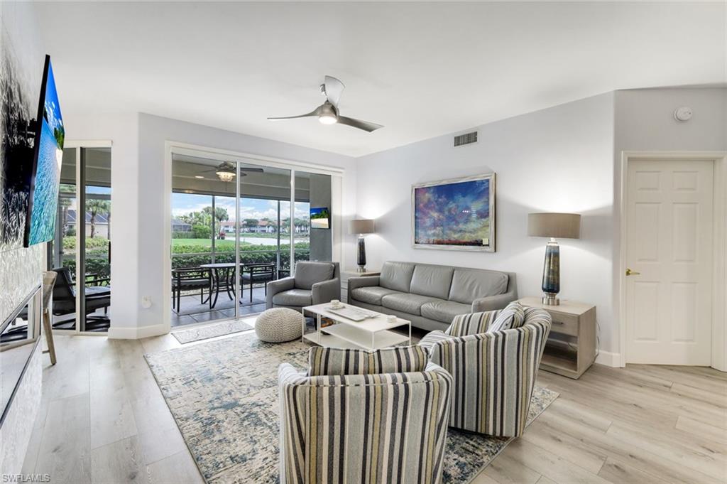 COASTAL CONTEMPORARY decor and finishes in this partially furnished first floor end unit in the demand bundled golf community of Copperleaf at the Brooks. New luxury vinyl flooring throughout, new kitchen appliances 2023, guest room and kitchen single hung windows upgraded to hurricane grade 2021, and updated baths! HVAC 2016, roof 2020, and wind resistant sliding panels in lanai so you can close and air condition the space for more living area, or close when away to protect your furnishings. You will love the location with nearby shopping, restaurants, SWFL beaches, and SWFL Int'l Airport. Copperleaf is a premier gated, bundled golf community so as soon as you close on your home, you are an immediate golfing member of one of the finest bundled golf communities SWFL has to offer. There is also tennis and Bocce, exercise facility and library onsite. Enjoy it's newly remodeled state of the art clubhouse and restaurants. Private membership to the Brooks Commons Club is optional and offers a private restaurant, fitness center, pickleball and events as well as a private beach. Agents see supplements for exclusions to personal property.