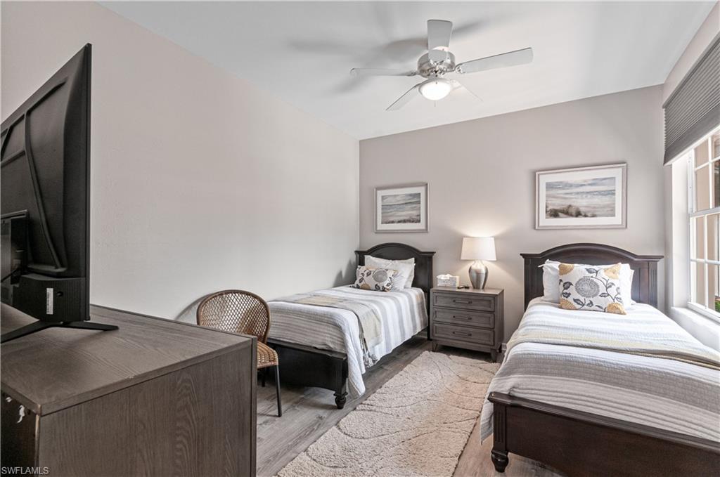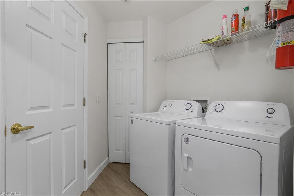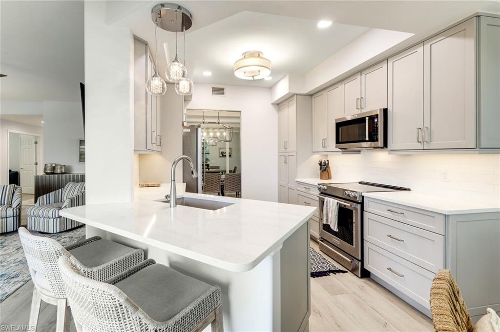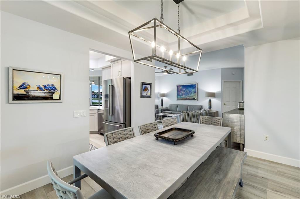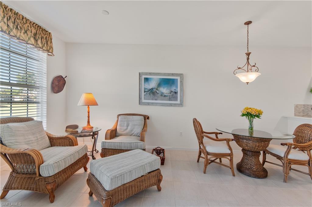 COASTAL CONTEMPORARY decor and finishes in this partially furnished first floor end unit in the demand bundled golf community of Copperleaf at the Brooks. New luxury vinyl flooring throughout, new kitchen appliances 2023, guest room and kitchen single hung windows upgraded to hurricane grade 2021, and updated baths! HVAC 2016, roof 2020, and wind resistant sliding panels in lanai so you can close and air condition the space for more living area, or close when away to protect your furnishings. You will love the location with nearby shopping, restaurants, SWFL beaches, and SWFL Int'l Airport. Copperleaf is a premier gated, bundled golf community so as soon as you close on your home, you are an immediate golfing member of one of the finest bundled golf communities SWFL has to offer. There is also tennis and Bocce, exercise facility and library onsite. Enjoy it's newly remodeled state of the art clubhouse and restaurants. Private membership to the Brooks Commons Club is optional and offers a private restaurant, fitness center, pickleball and events as well as a private beach. Agents see supplements for exclusions to personal property.